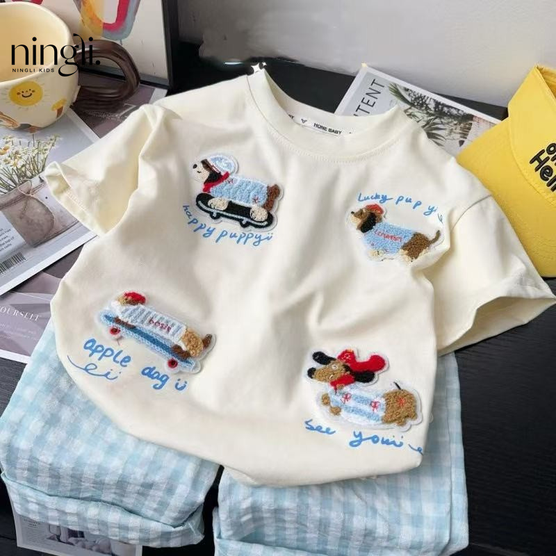 Белая футболка с рисунком; NT972-Футболка с мультяшным щенком; NT979-Короткий рукав «Солнечный жираф»; NT981-Белая футболка с рисунком; 839-красный