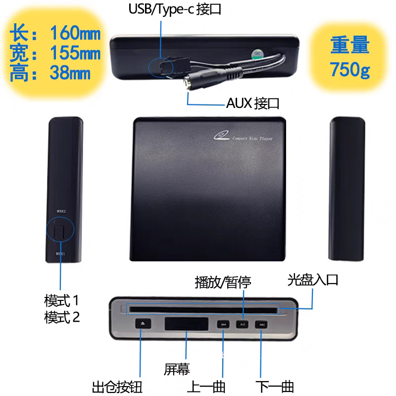 Hi-Fi высококачественный автомобильный CD-плеер, внешний автомобильный CD-плеер, USB-соединение, выход WAV, трансляция CD без потерь