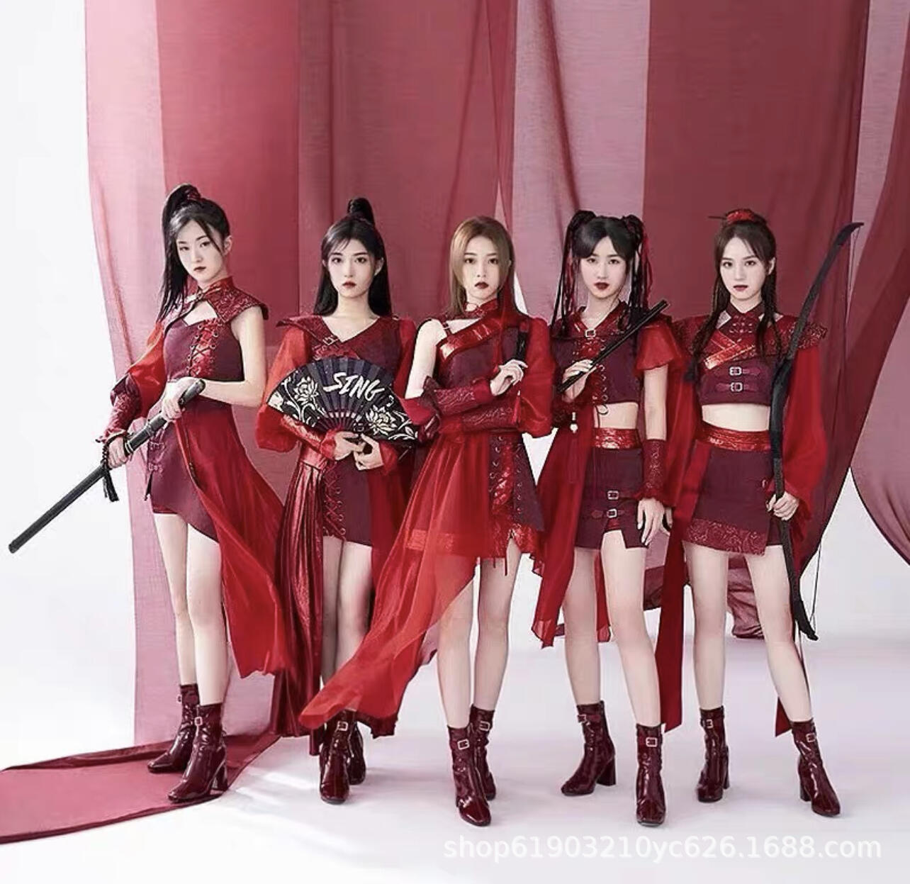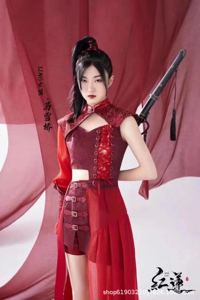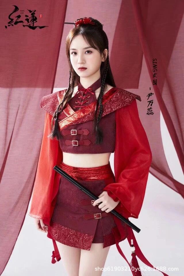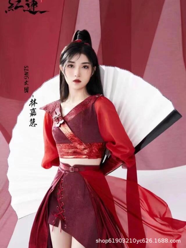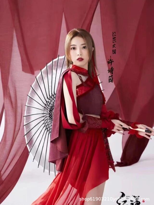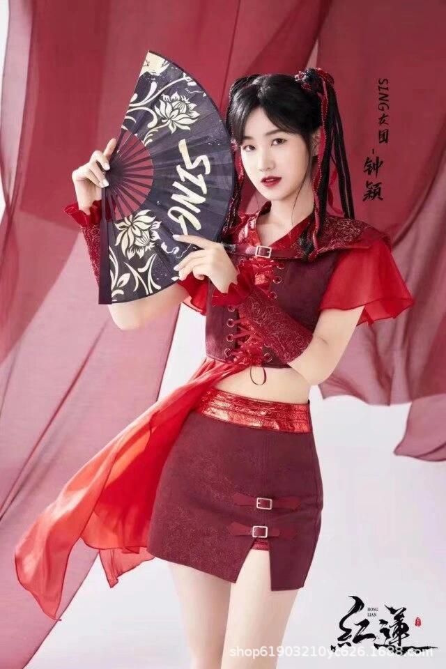 Красный лотос отправляет лунный свет芒种 выступление в китайском стиле для взрослых джазовый танцевальный костюм для выступления Ханфу, похожий на стиль девчачьей группы.