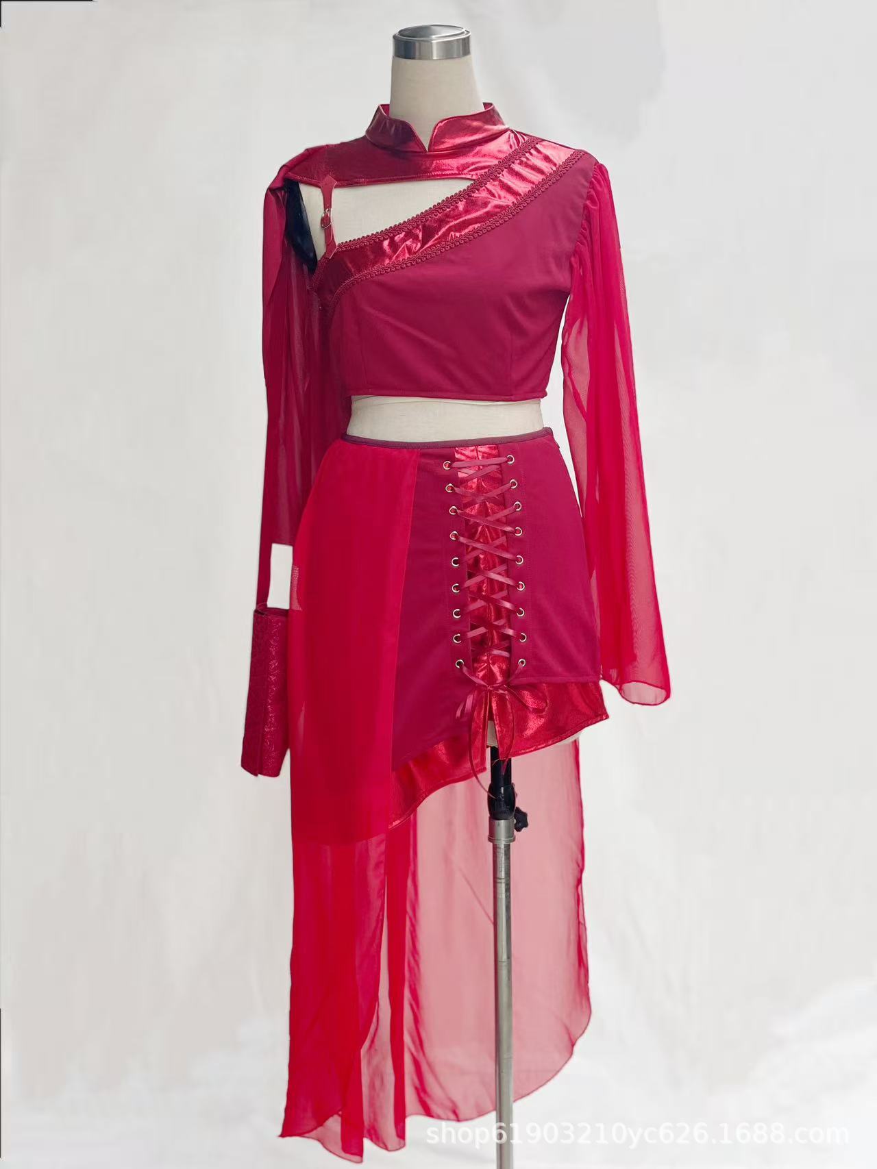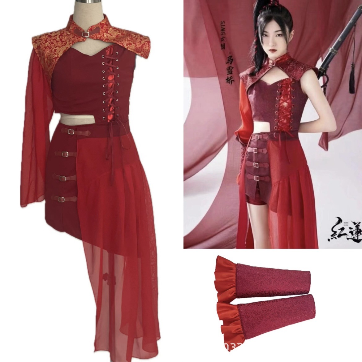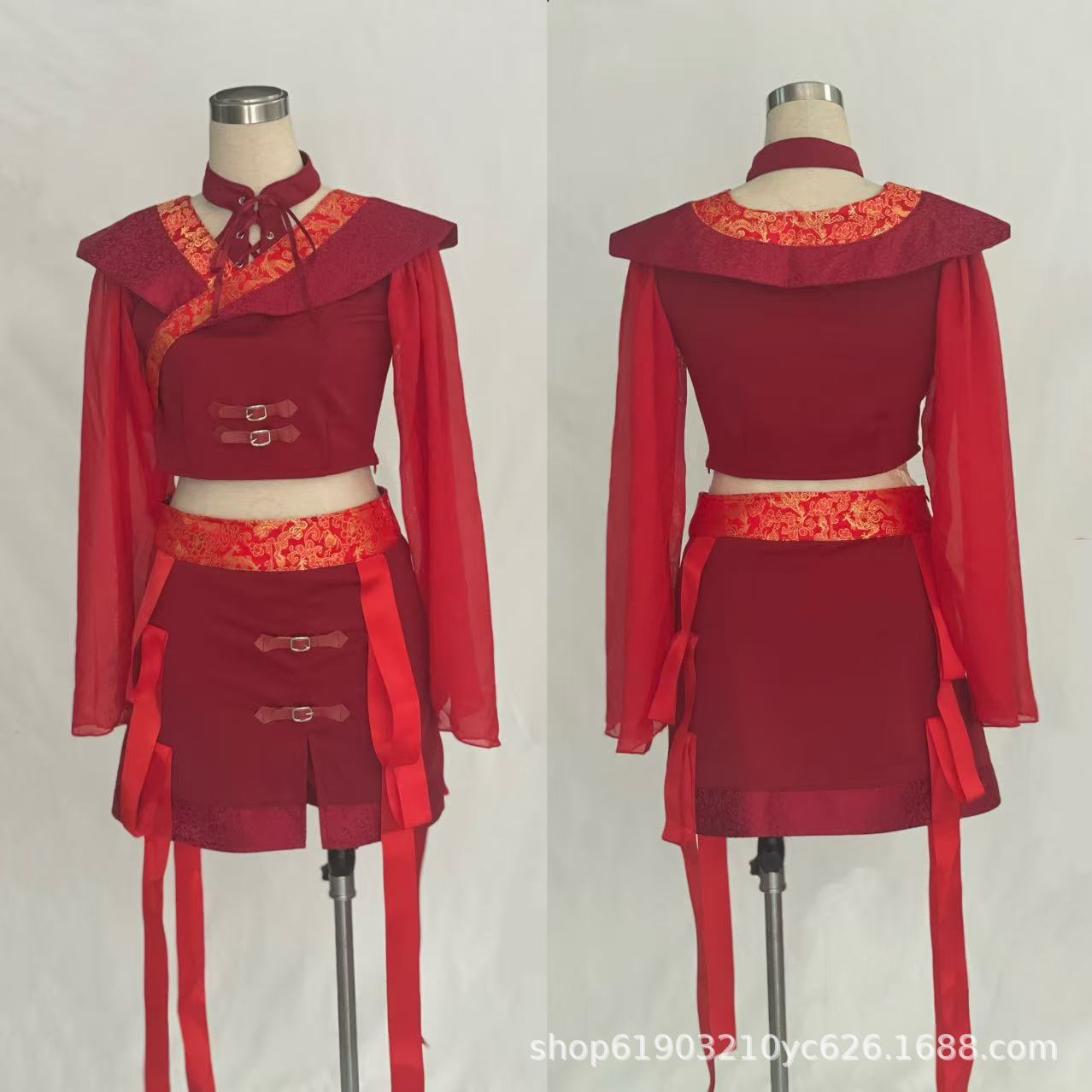 Красный лотос отправляет лунный свет芒种 выступление в китайском стиле для взрослых джазовый танцевальный костюм для выступления Ханфу, похожий на стиль девчачьей группы.