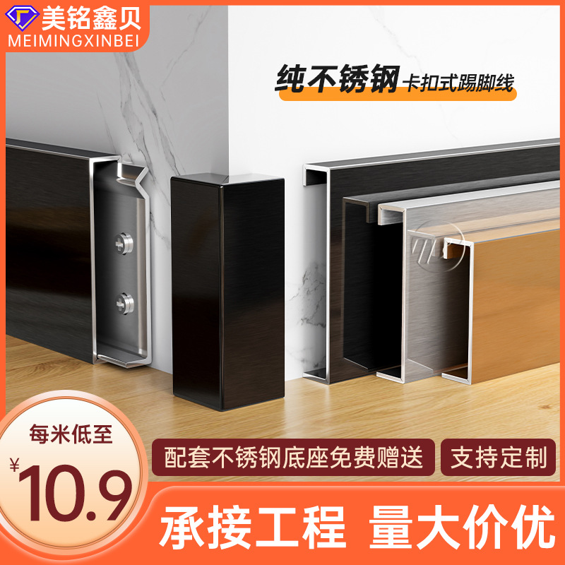 Готовый плинтус из нержавеющей стали 6см/8см, 10cm накладной, 201, с креплением на защелки, 304, матовый металлический плинтус