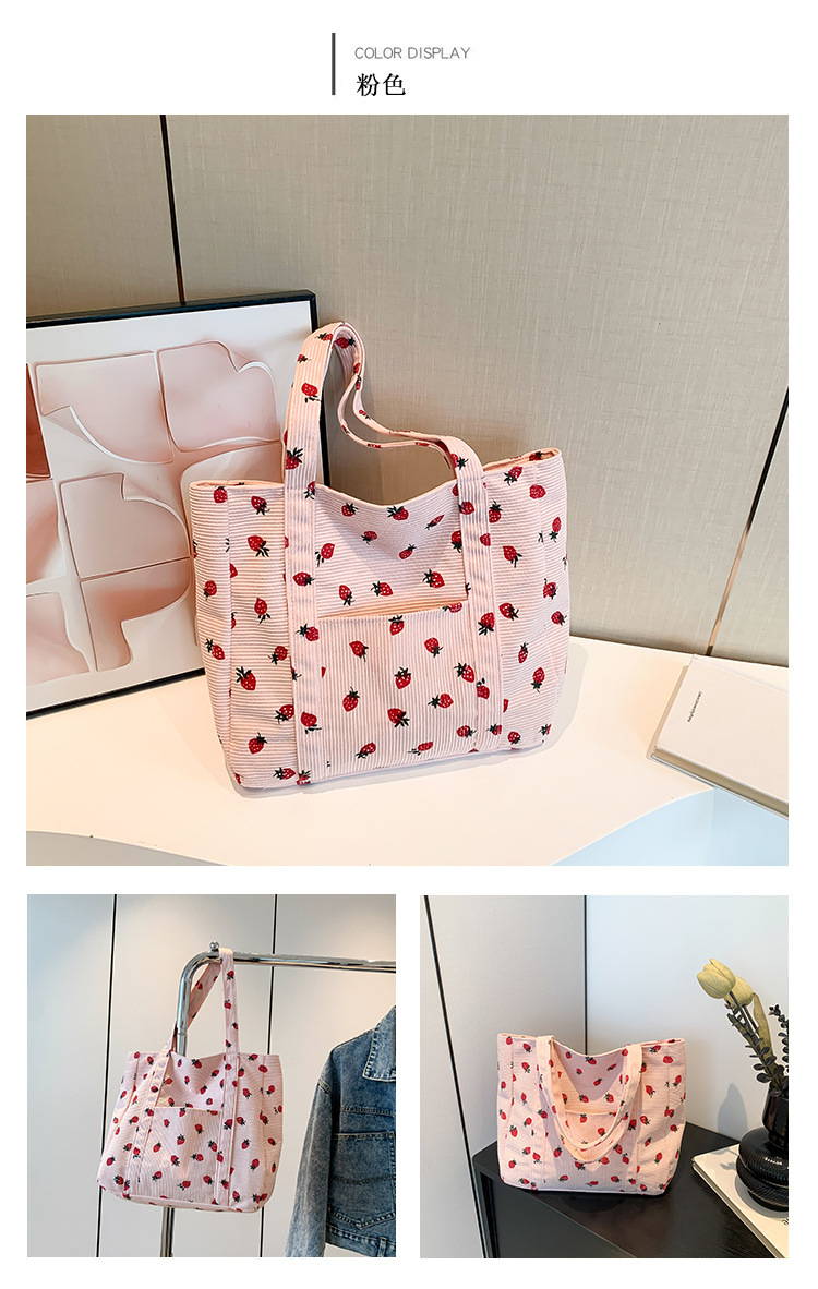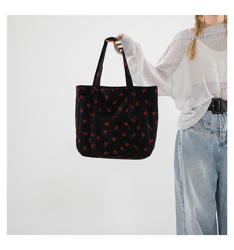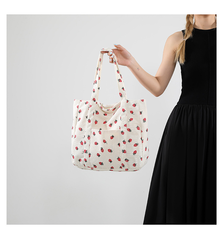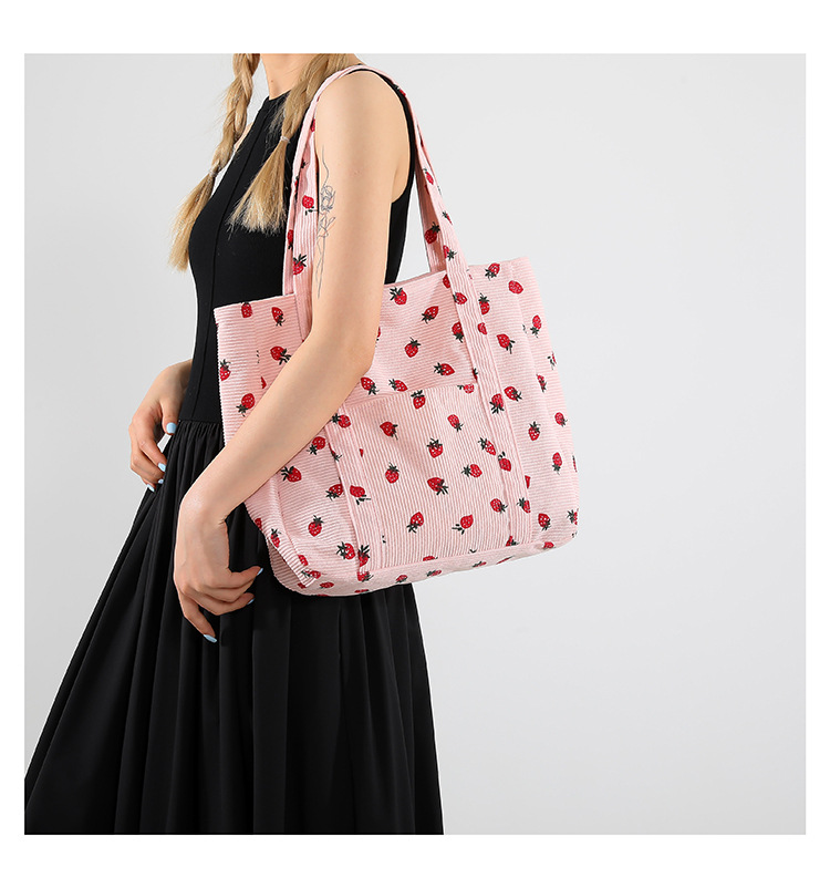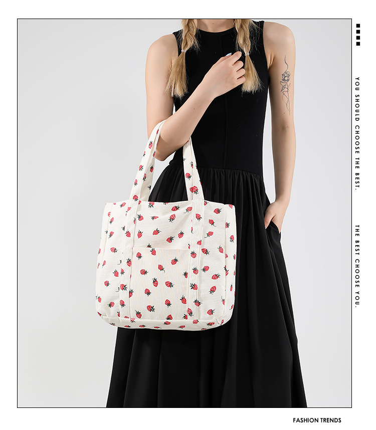 Сумка Totet с вельветным принтом 2024 новая сумка для хранения Большая емкость сумка на плечо Клубничный холст сумка сумка сумка
