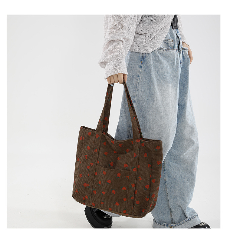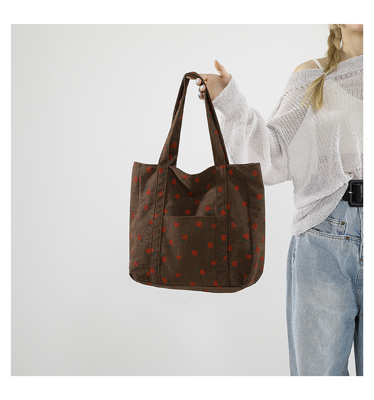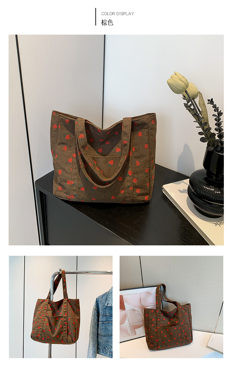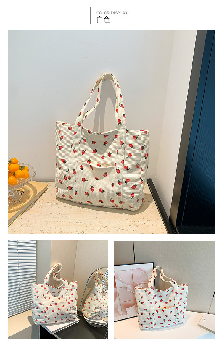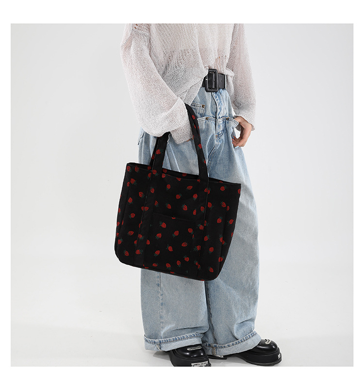 Сумка Totet с вельветным принтом 2024 новая сумка для хранения Большая емкость сумка на плечо Клубничный холст сумка сумка сумка
