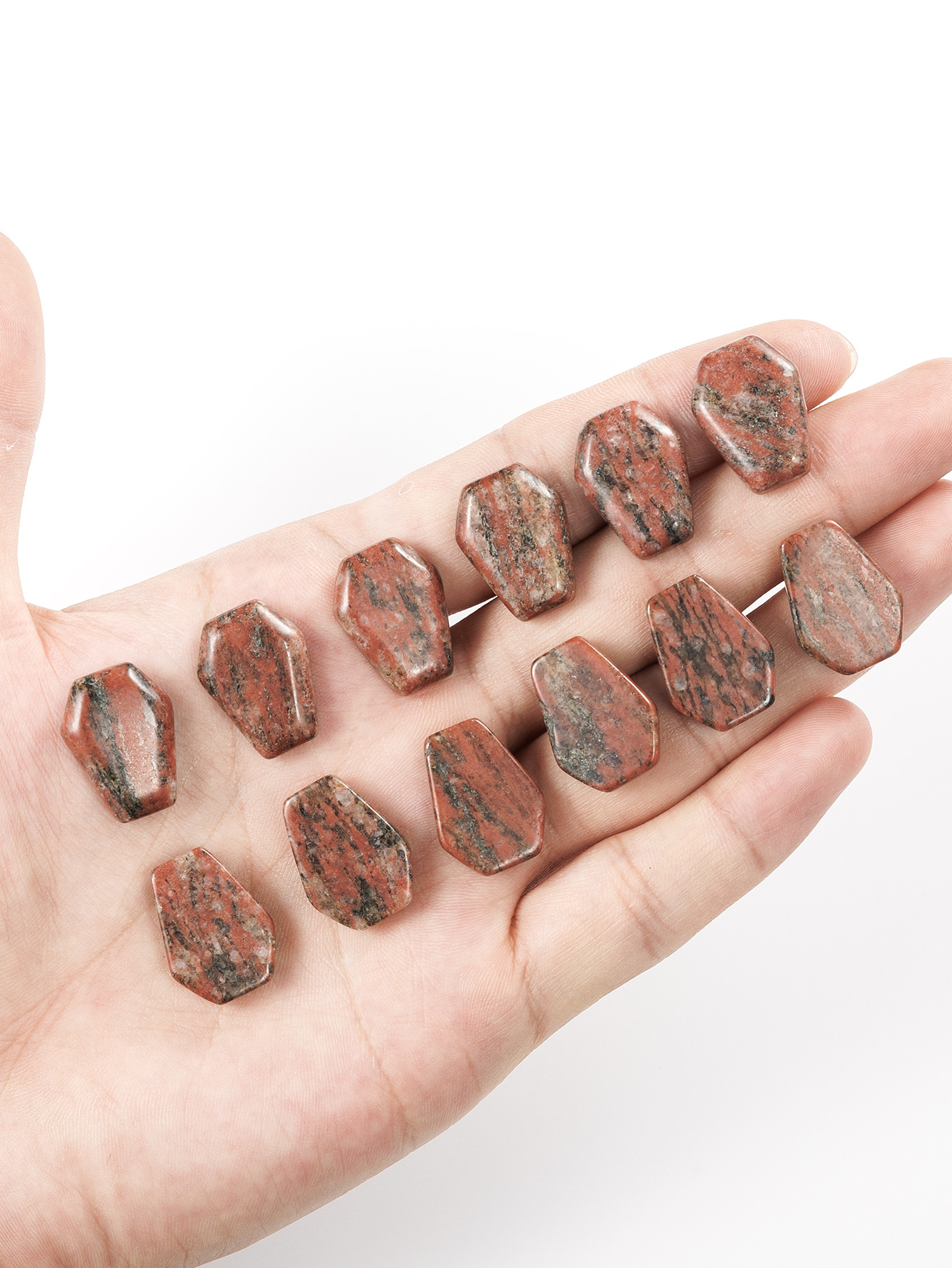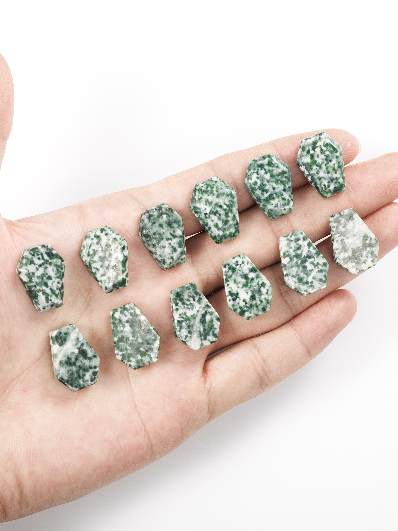 Оптовая продажа натуральных кристаллов Amazon: мини-украшения в форме гроба, многоугольные фигурки, натуральный камень, разноцветные кристаллы оптом