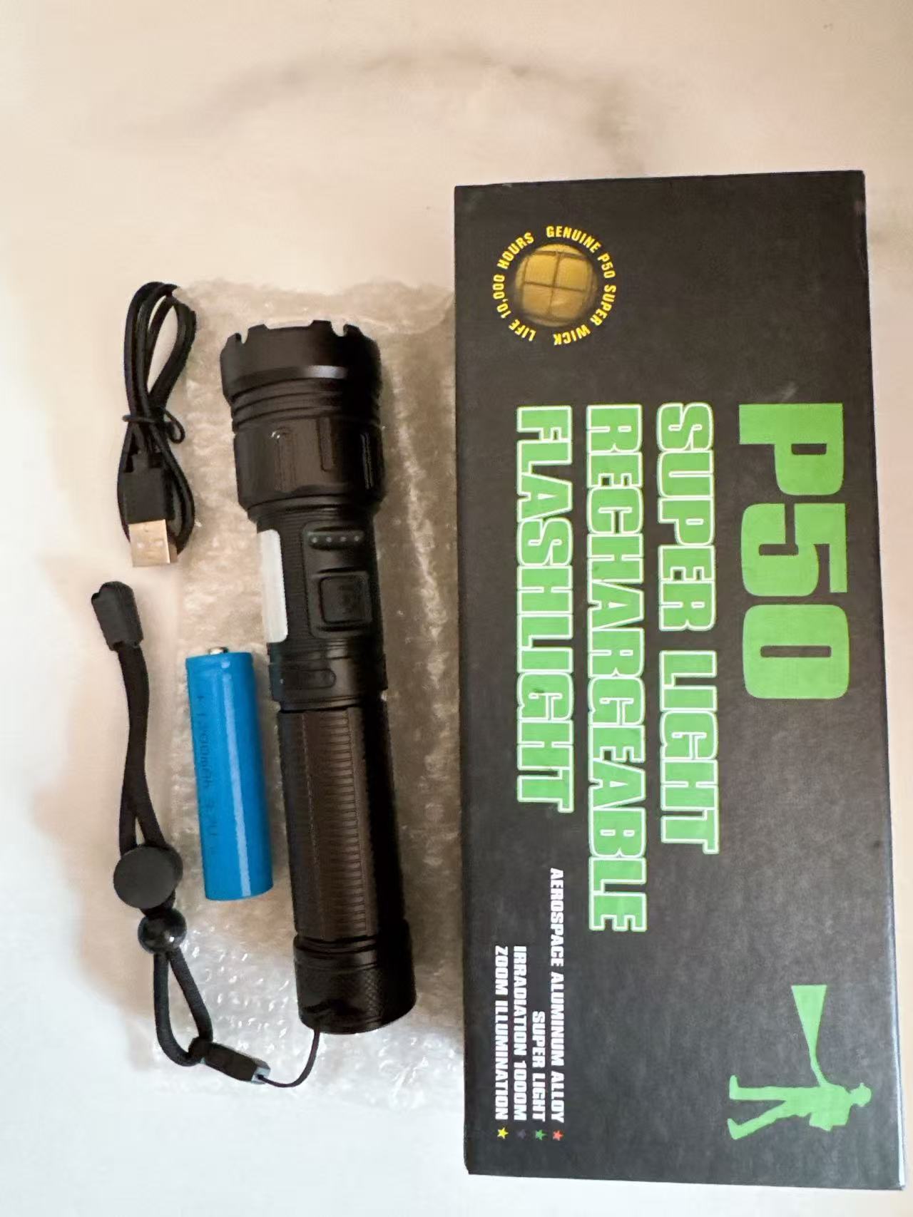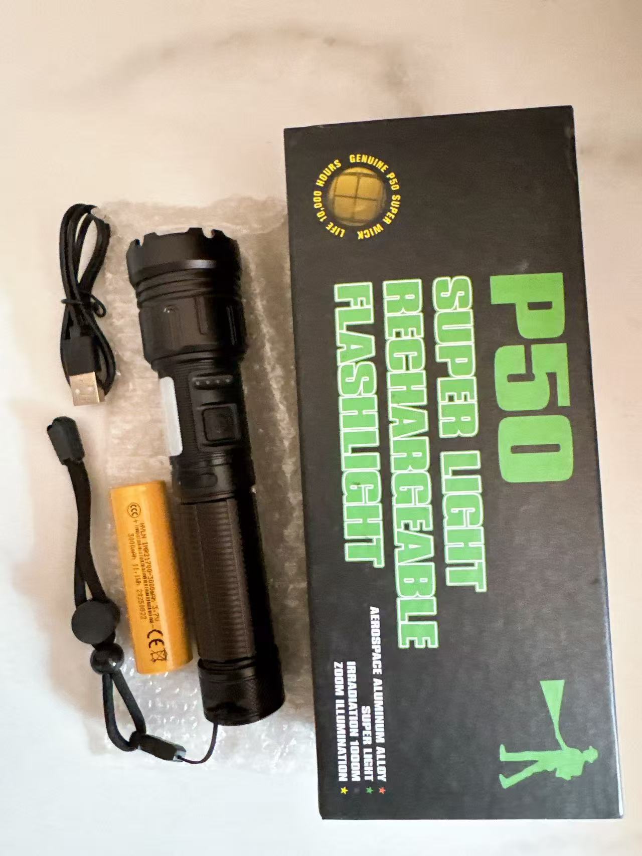 2025 магнитная зарядка через границу, мощный свет P50, уличный встроенный аккумулятор, ультраяркий кемпинговый стиль, патрульный светодиодный большой фонарь