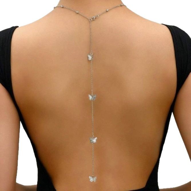 Европейское и американское новое сексуальное длинное ожерелье, модная металлическая подвеска-бабочка, цепочка для тела, женская персонализированная цепочка с открытой спиной, ювелирные изделия