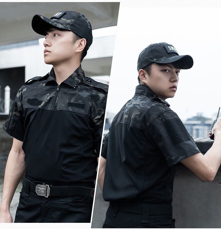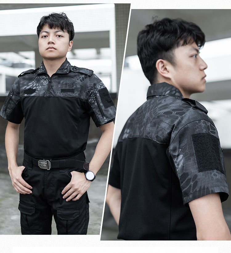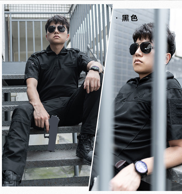 Летний быстросохнущий короткий рукав рабочий костюм для мужчин черный тактическая футболка для инструкторов спецназа боевой тренировочный костюм