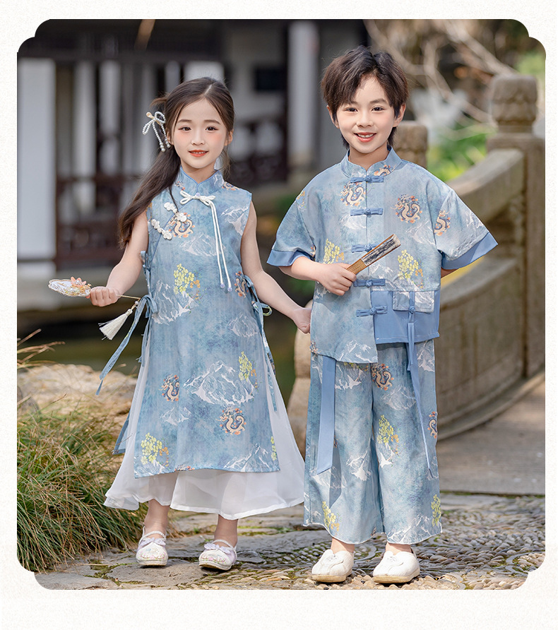 Юбка для девочек чонсам для детей Новый китайский стиль китайского стиля летнее китайское платье в китайском стиле