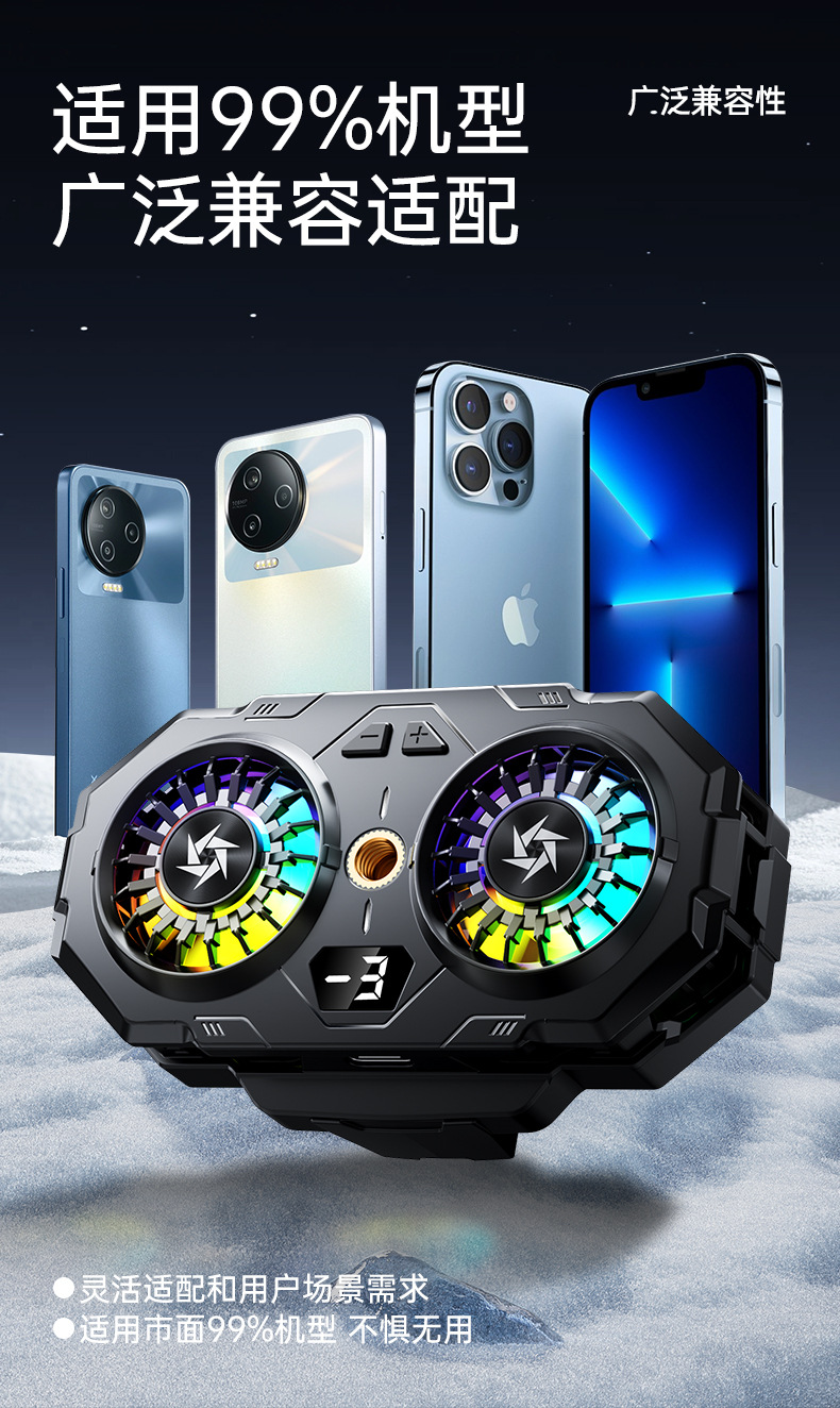 Цифровой дисплей SL55, трехскоростной регулируемый двухъядерный радиатор для мобильных телефонов с полупроводниковым охлаждением, подходящий для Apple, для быстрого рассеивания тепла.