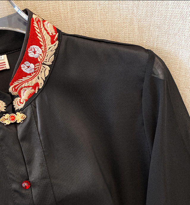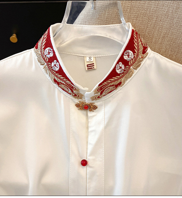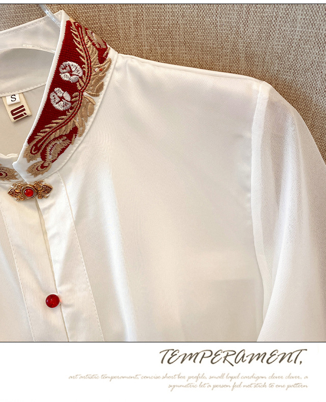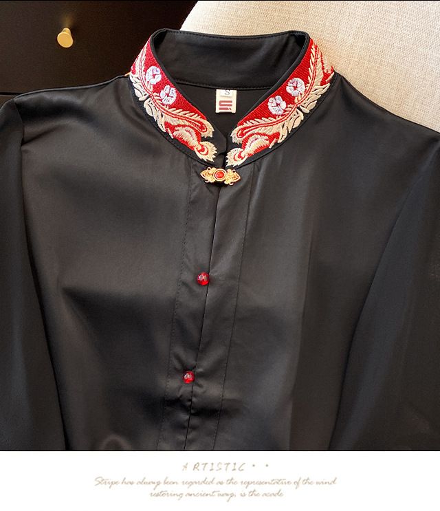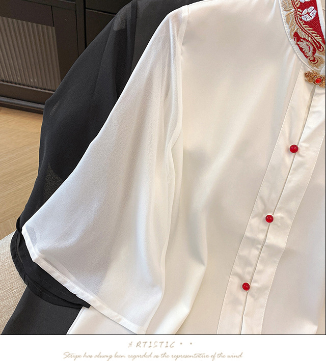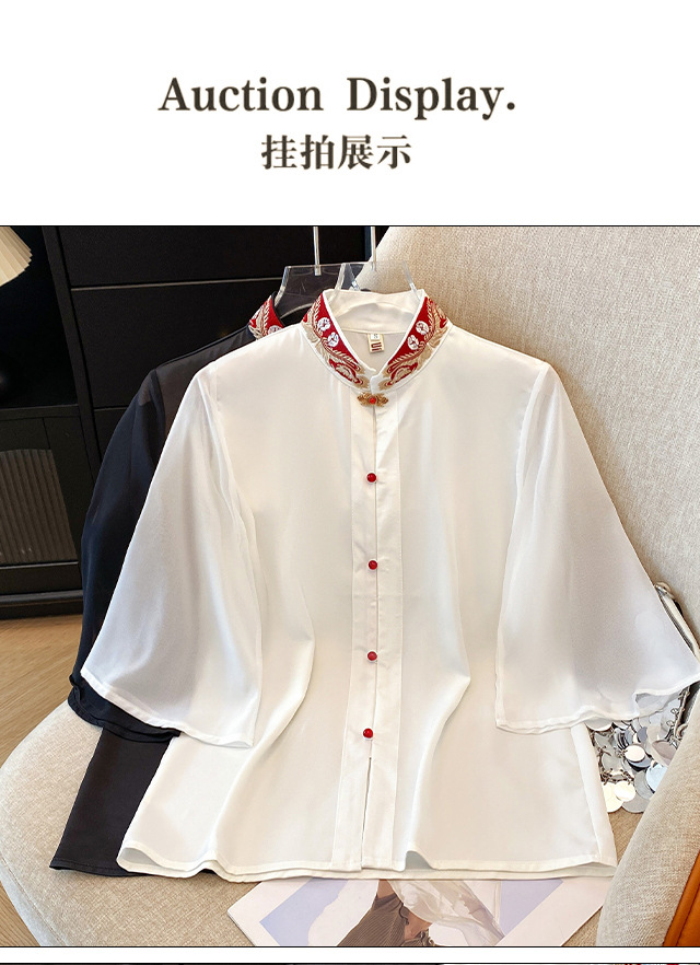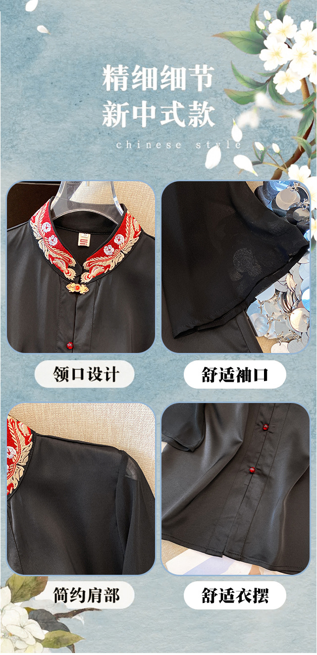 Лето 2025, новый улучшенный ретро-новый китайский стиль, национальный стиль, воротник-стойка, рукава в форме листьев лотоса, универсальный свободный утягивающий топ с вышивкой