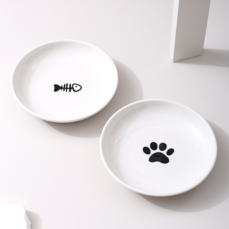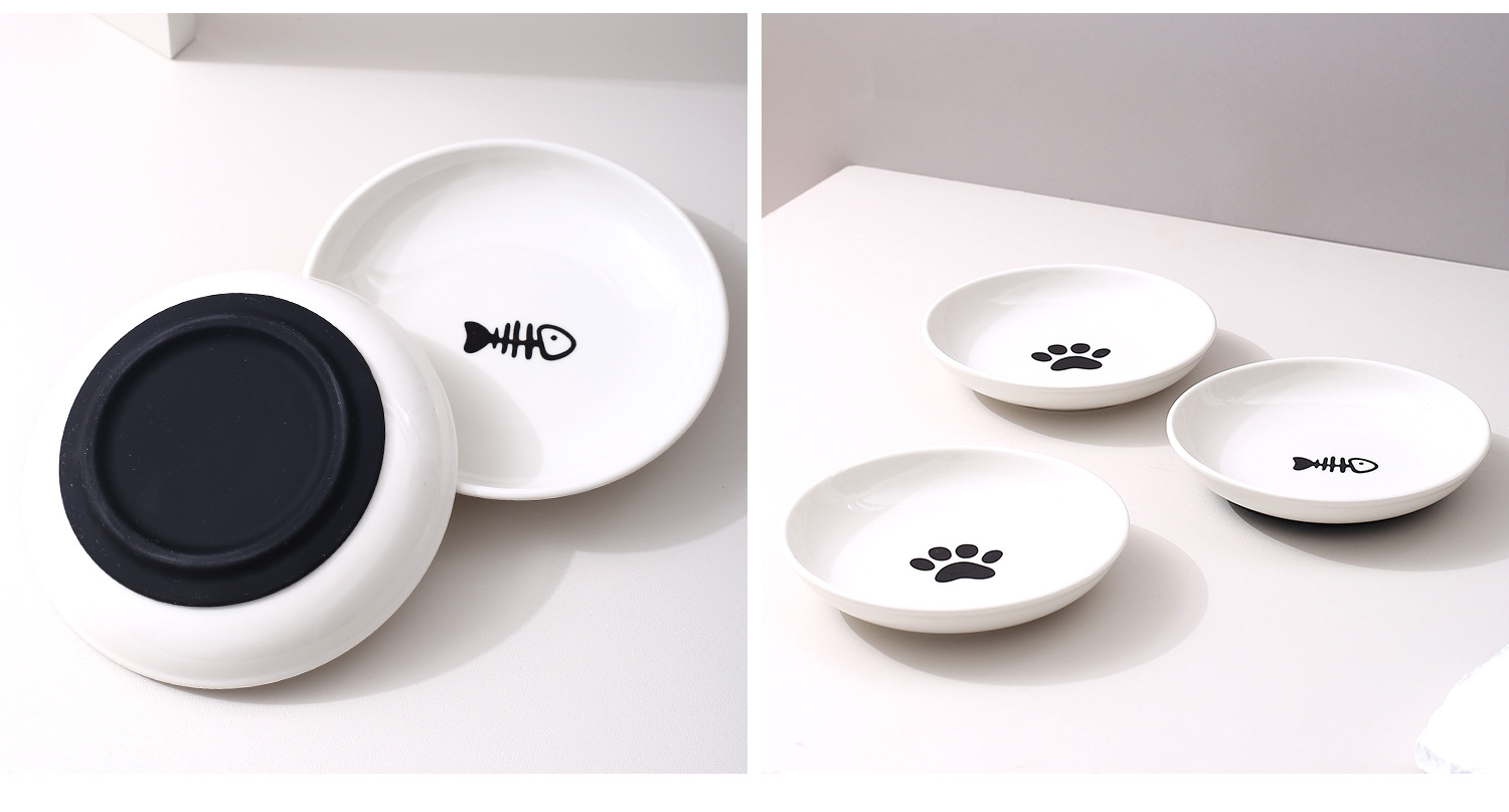 Простой стиль, кошачьи когти, узор в виде рыбьей кости, тарелка для домашних животных с силиконовой подушечкой, керамическая миска, миска для кошачьего риса, миска для кошки, миска для собаки, противоударная