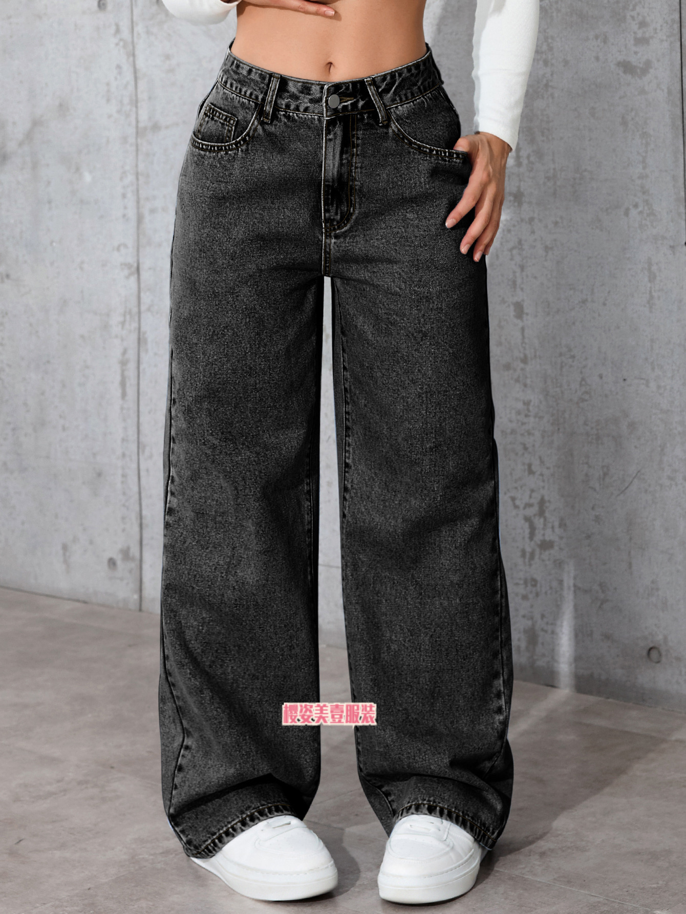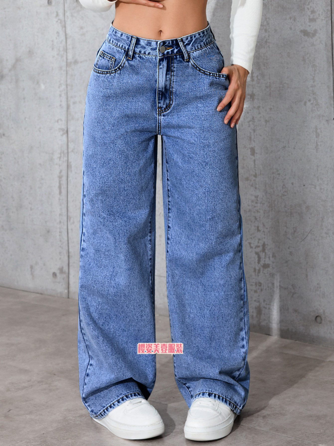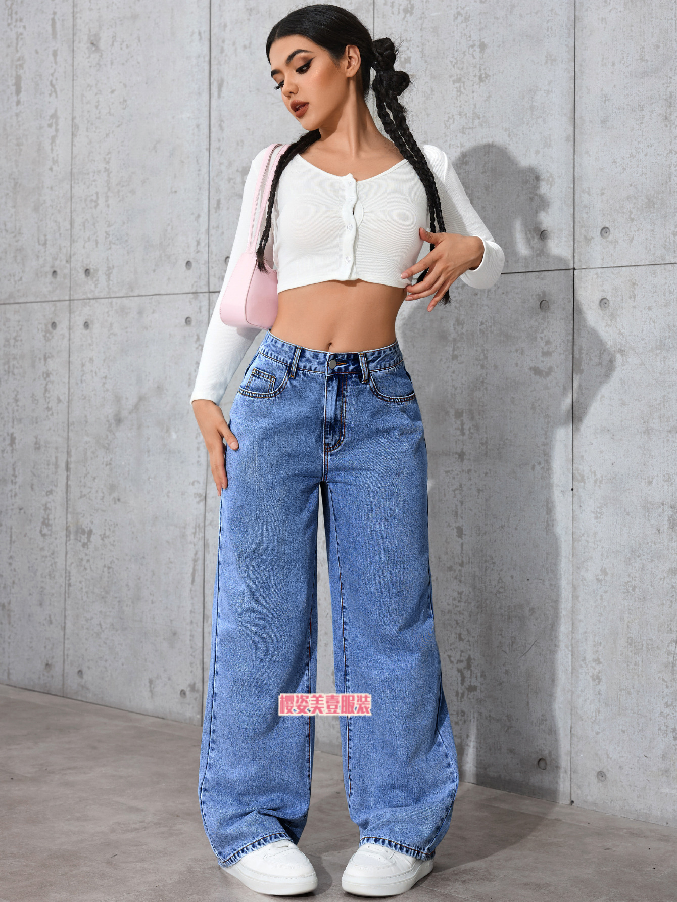 Amazon трансграничные горячие джинсы женские сладкие и пряные высокие ветры большие прямые брюки свободные повседневные брюки трансграничные взрывные модели