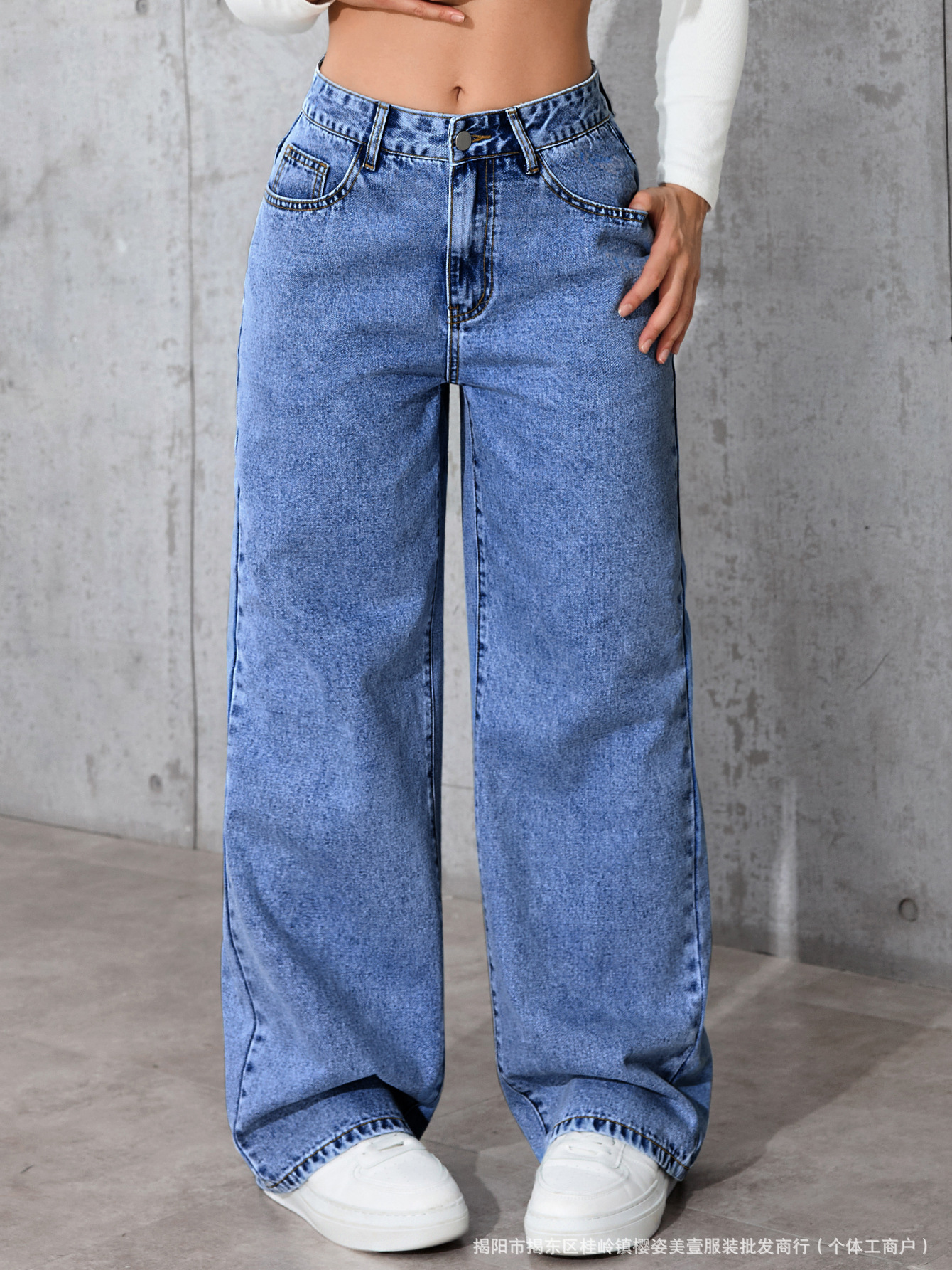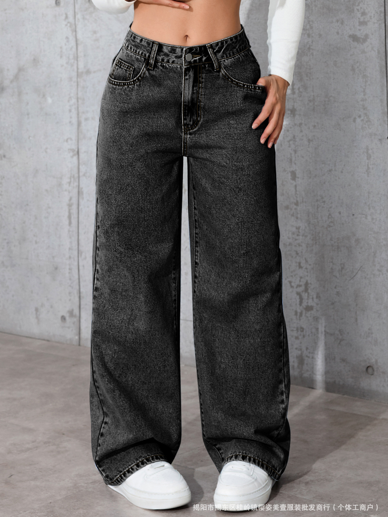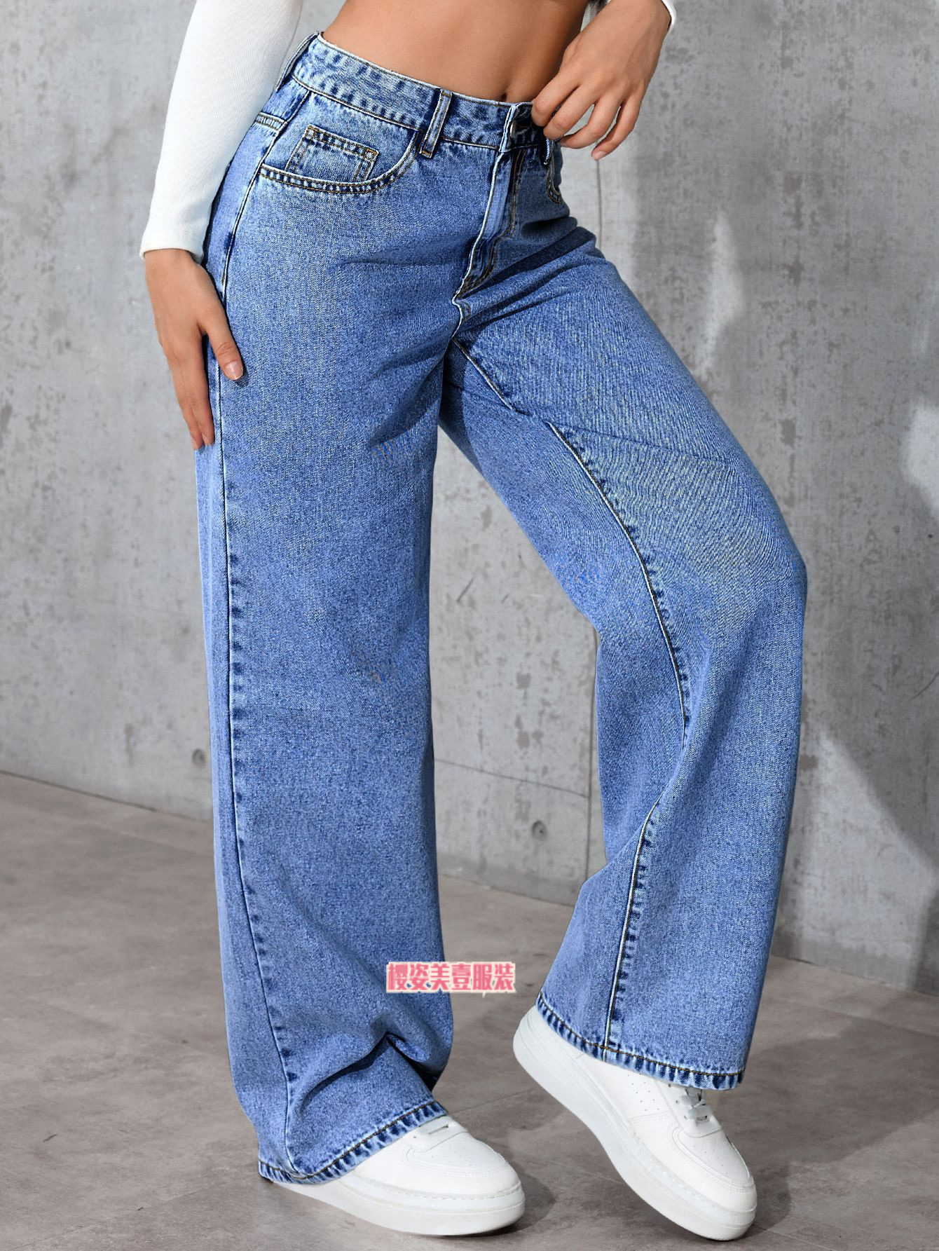 Amazon трансграничные горячие джинсы женские сладкие и пряные высокие ветры большие прямые брюки свободные повседневные брюки трансграничные взрывные модели