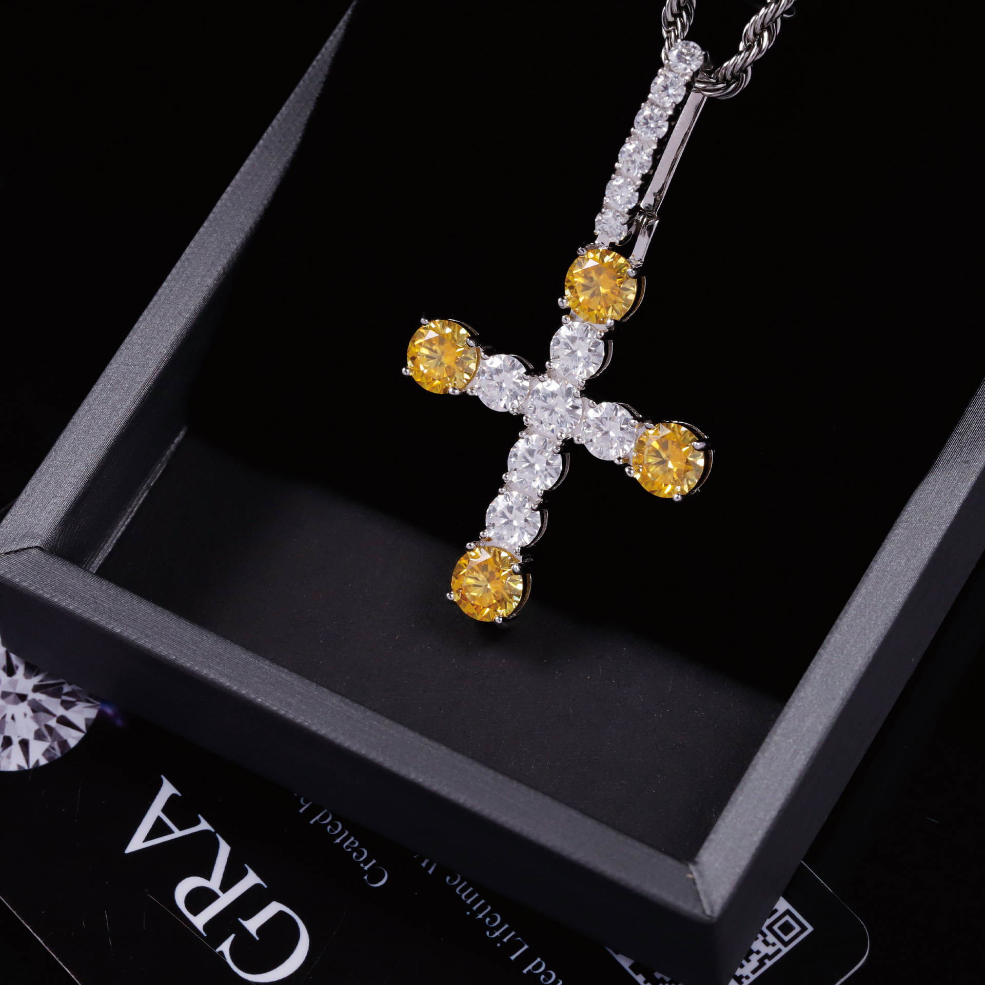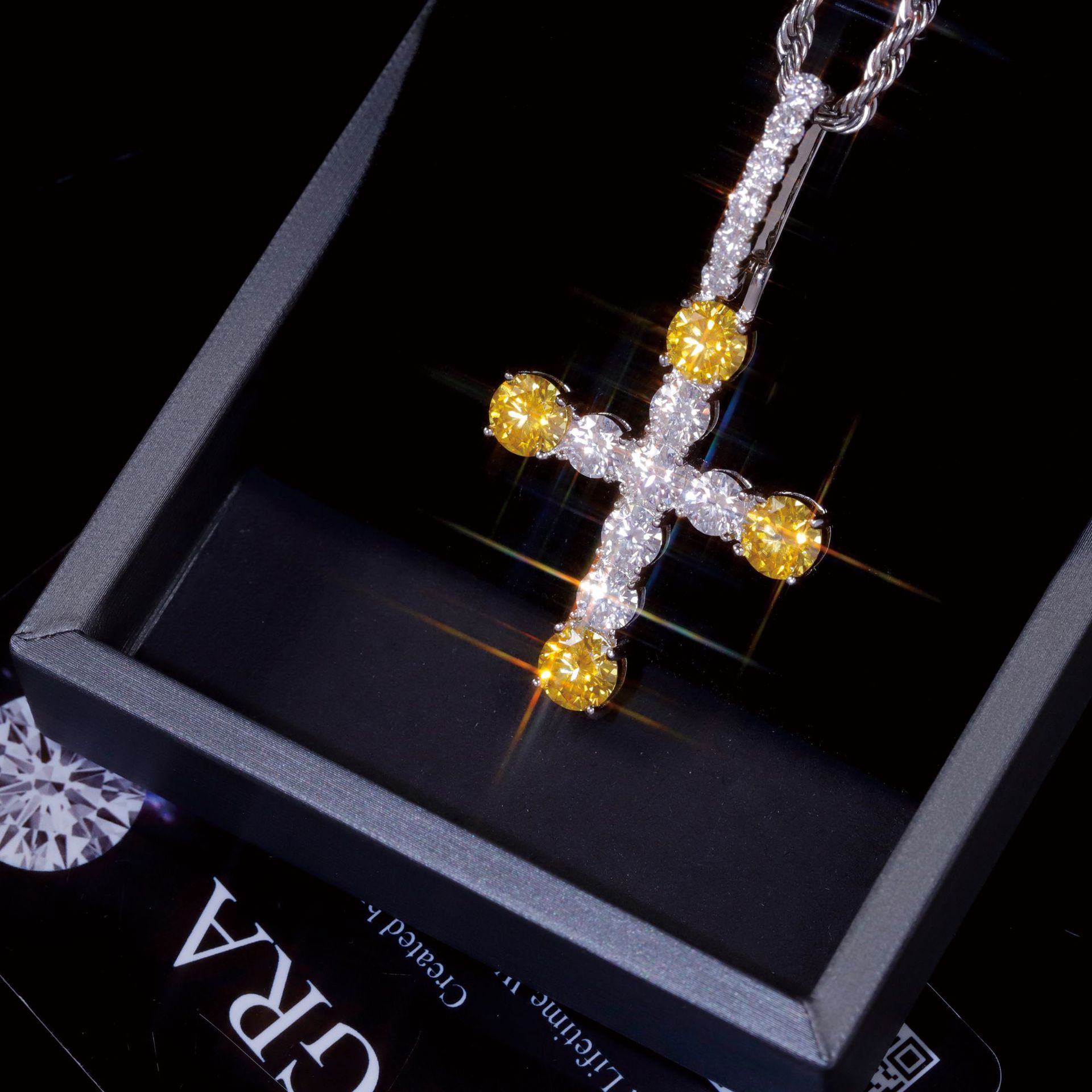 Новый модный двухцветный крестик-кулон из серебра S925, инкрустированный муассанитом, модный нишевый кулон в европейском и американском стиле.
