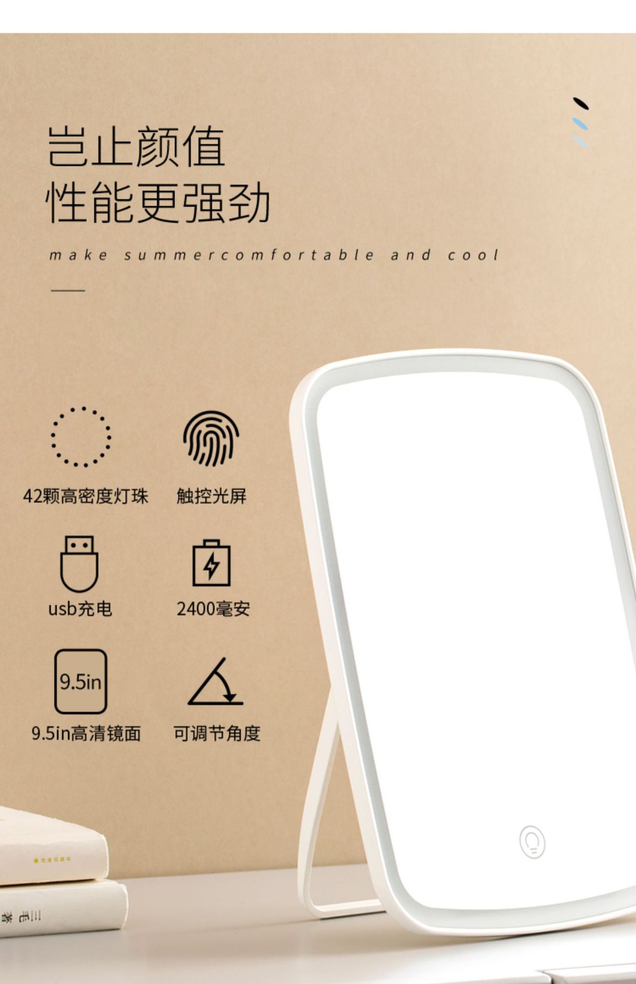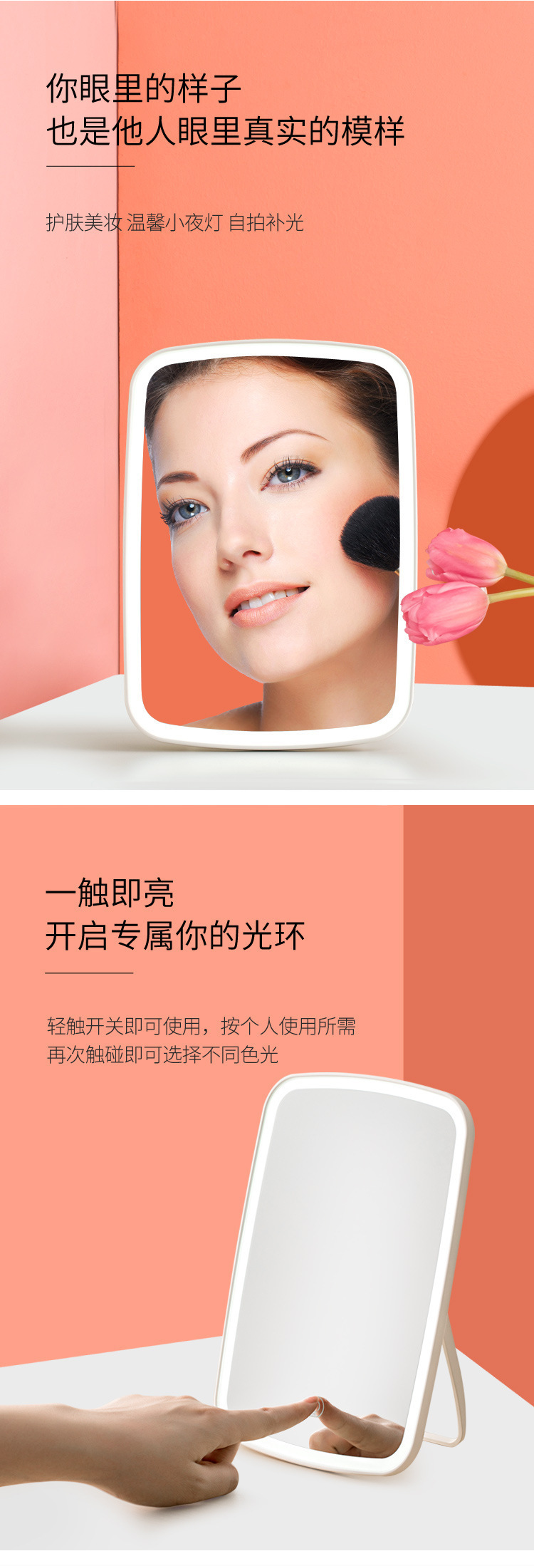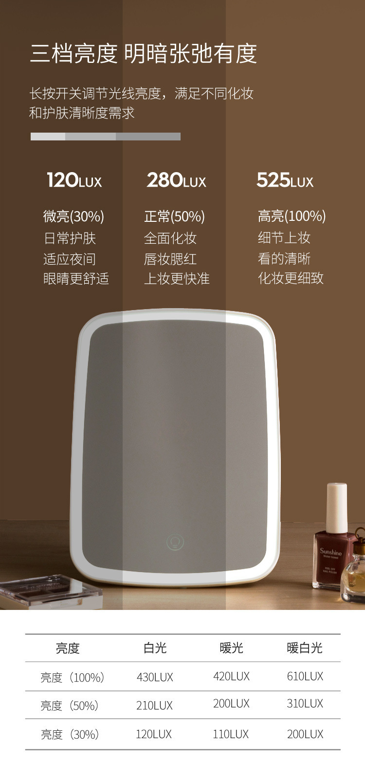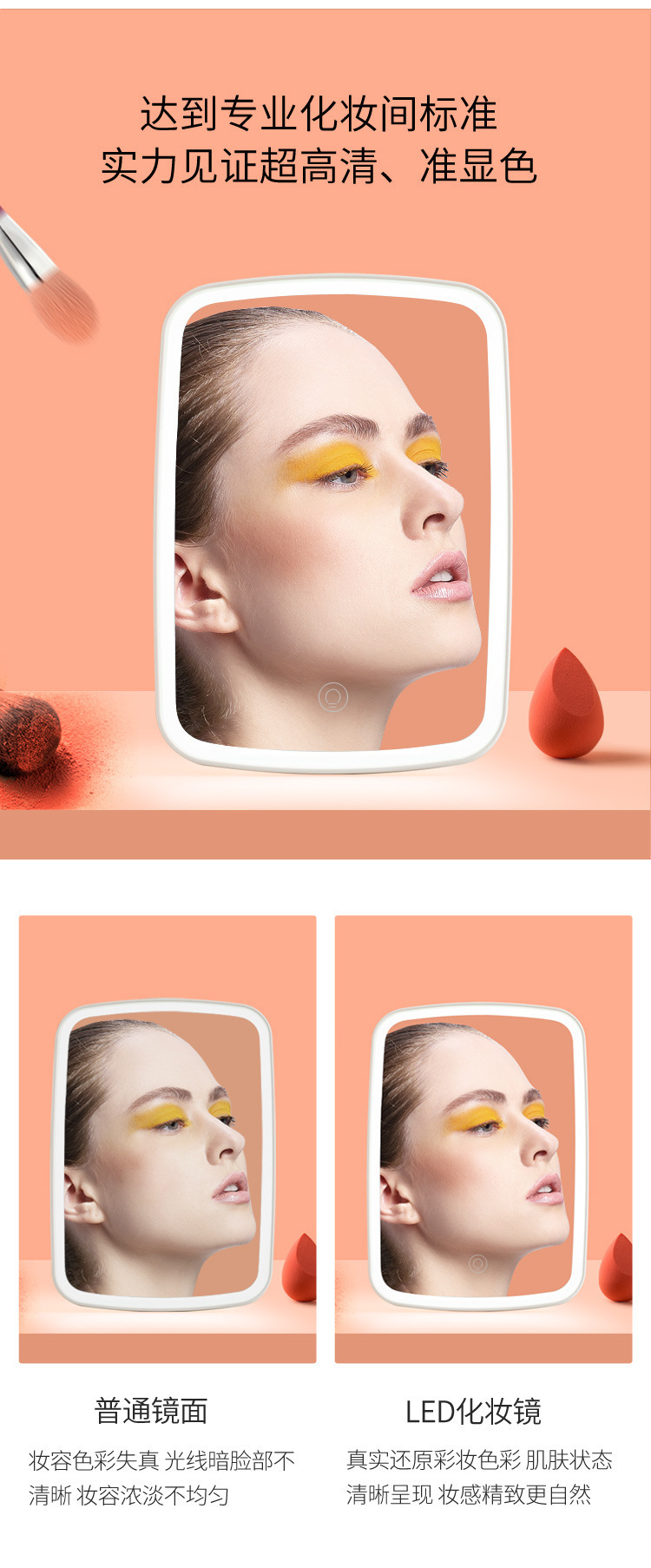 Модное светодиодное зеркало для макияжа, настольное зеркало высокой четкости с трехцветным освещением, портативное складное косметическое зеркало