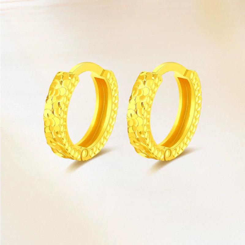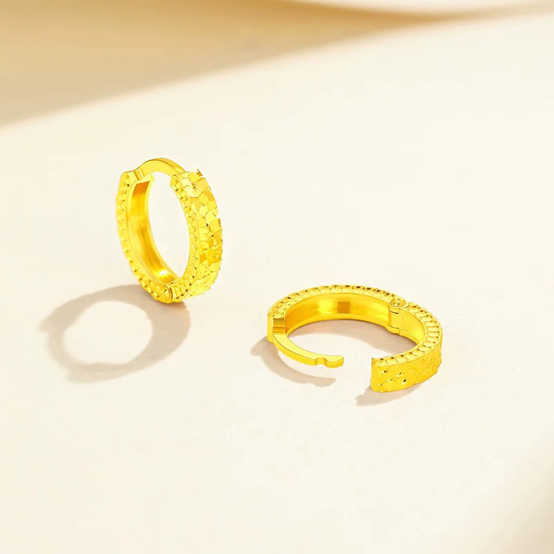 Серьги-кольца из золота 18к, цвет золота AU750, эффект «крошеного льда», сломанное золото, цельные, неформовочные, гладкие, для женщин, оптом