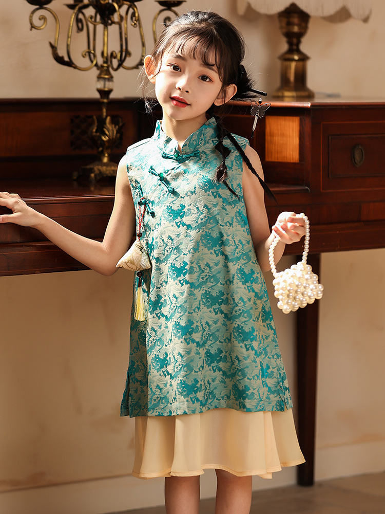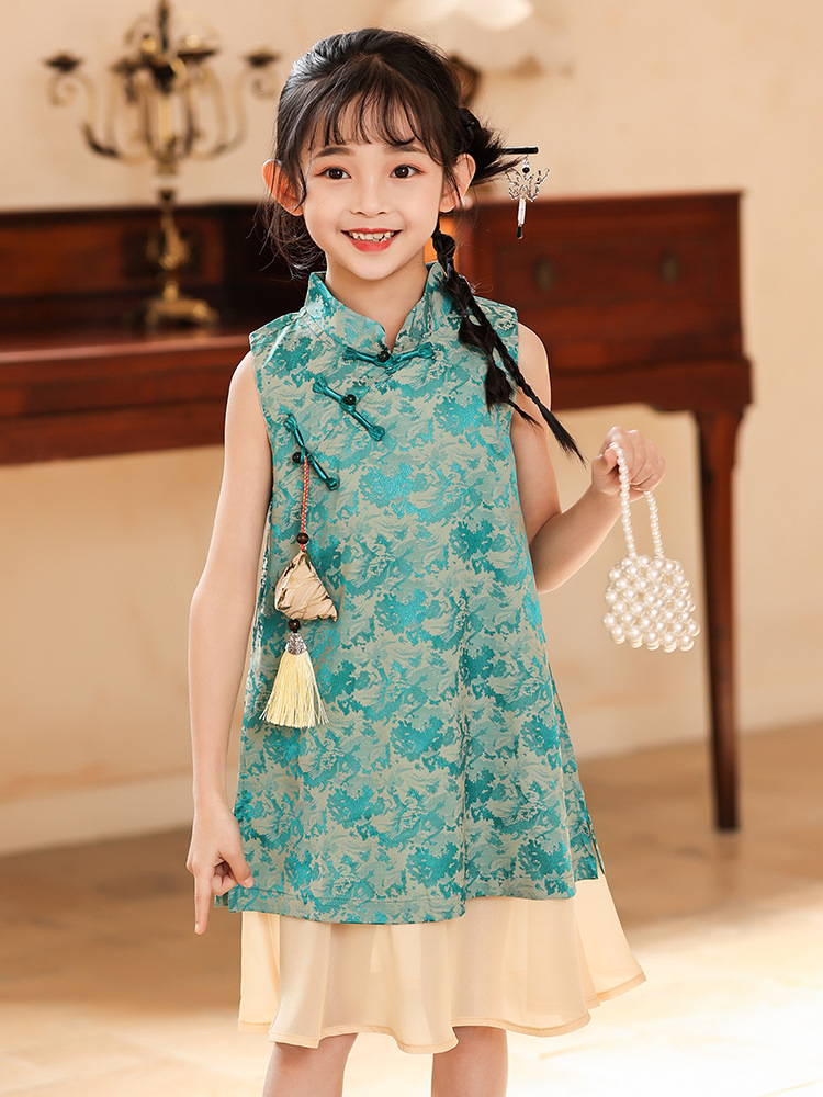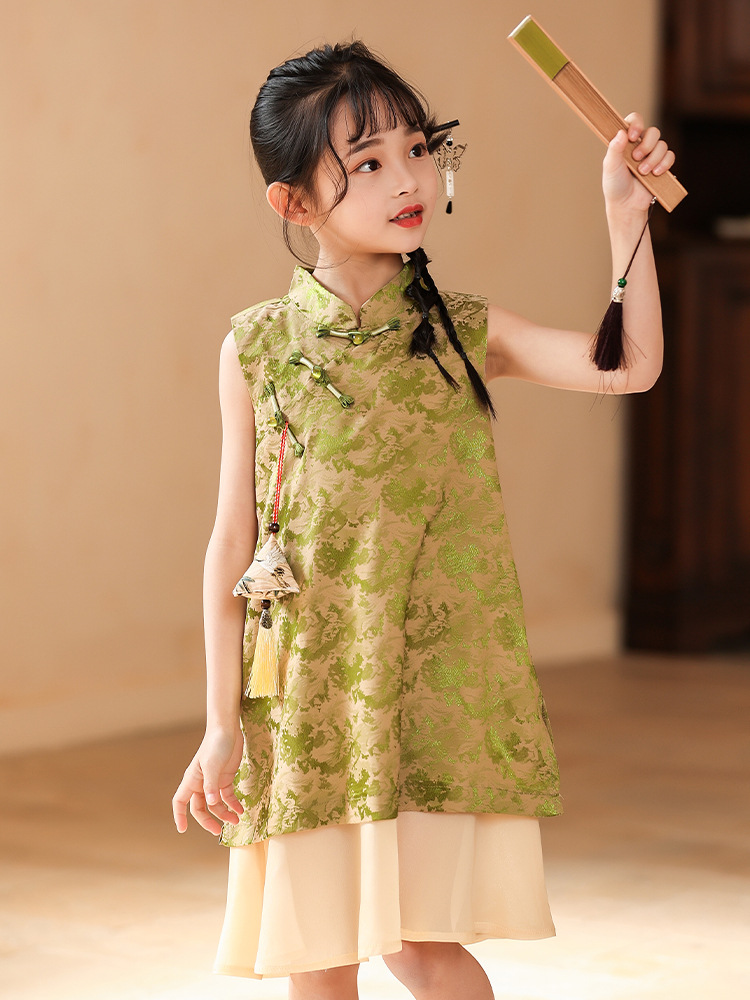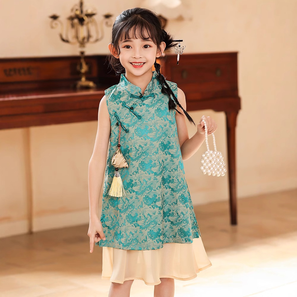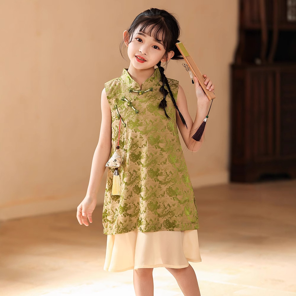 Платье для девочек Hanfu Новый китайский стиль детская платье принцессы Cheongsam Summer 2025 новая девушка юбка