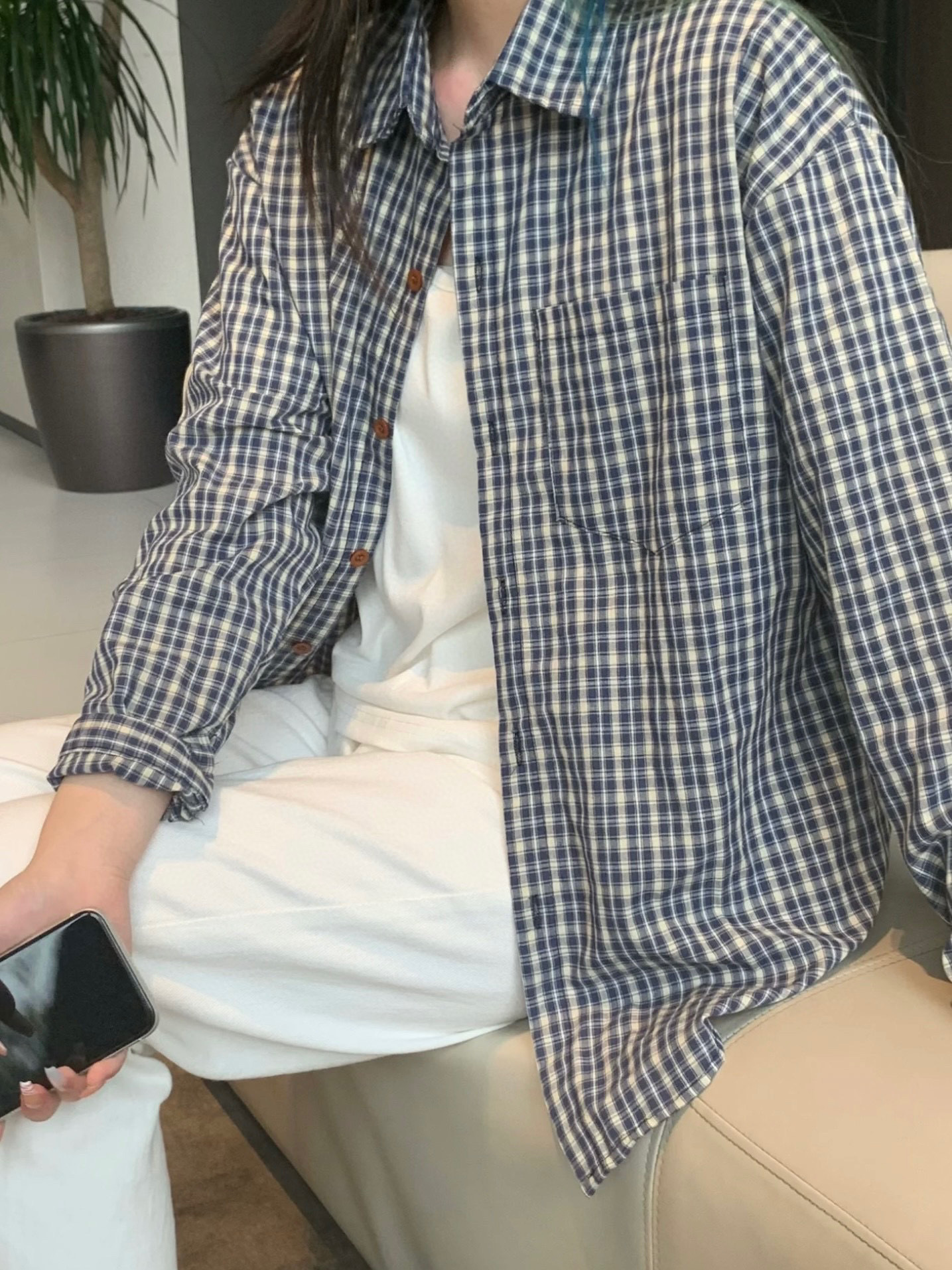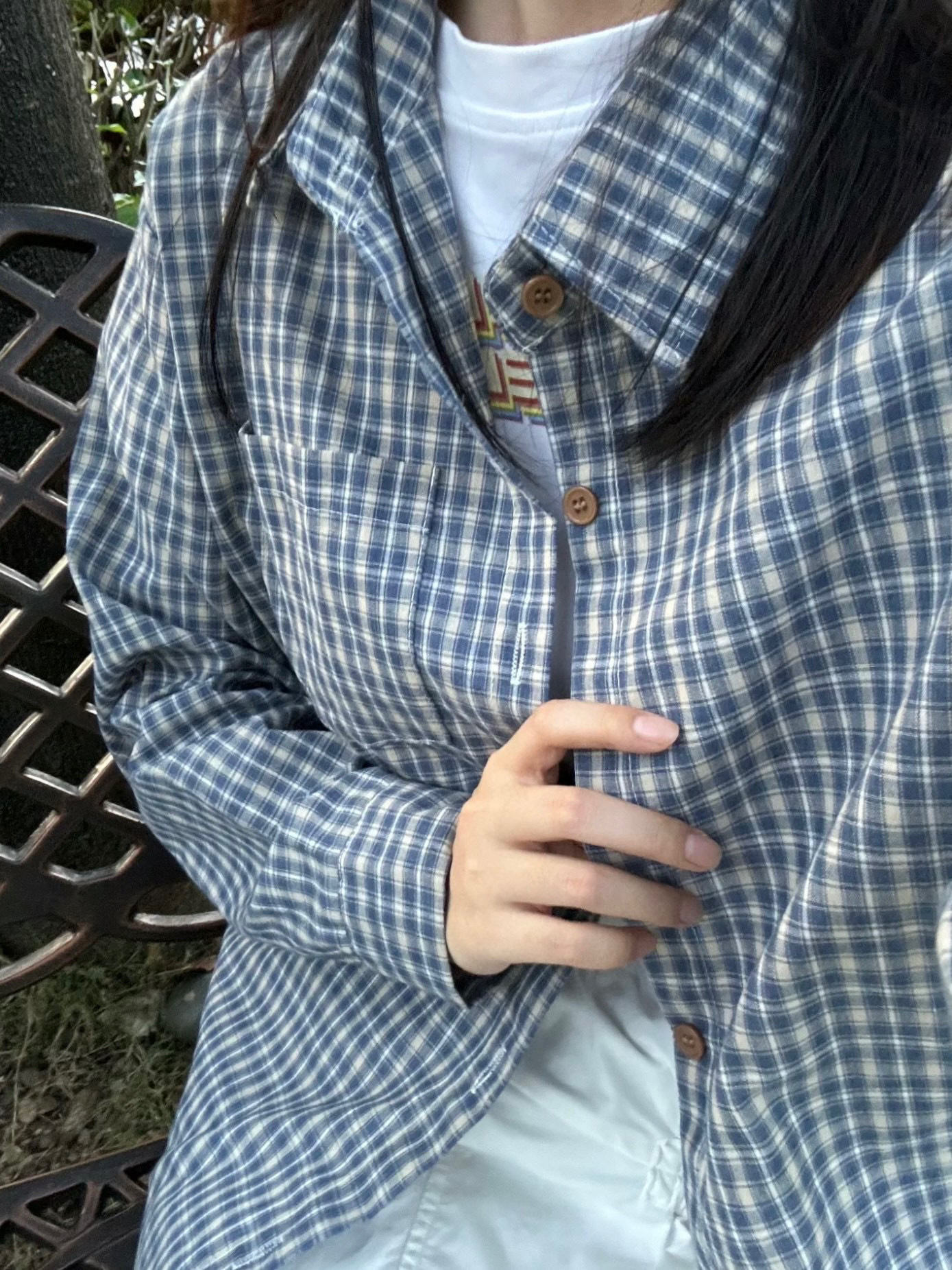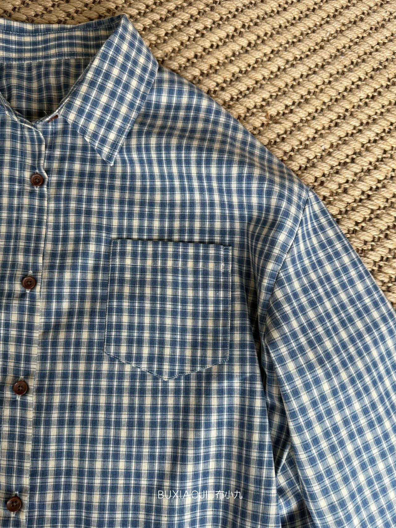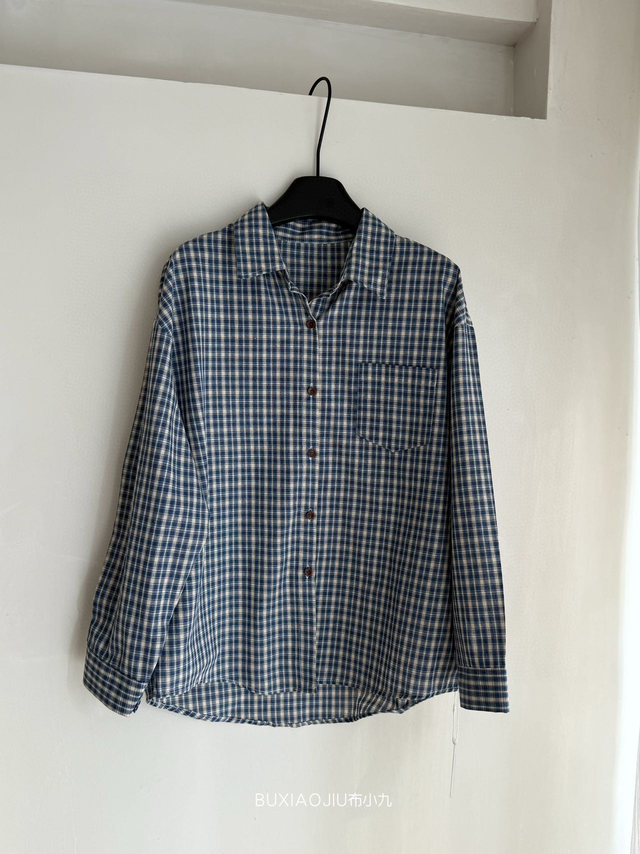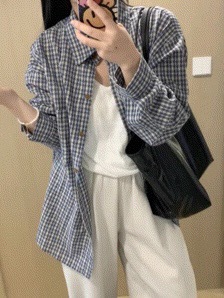 Бу Сяодзюй/сине-белая клетчатая рубашка