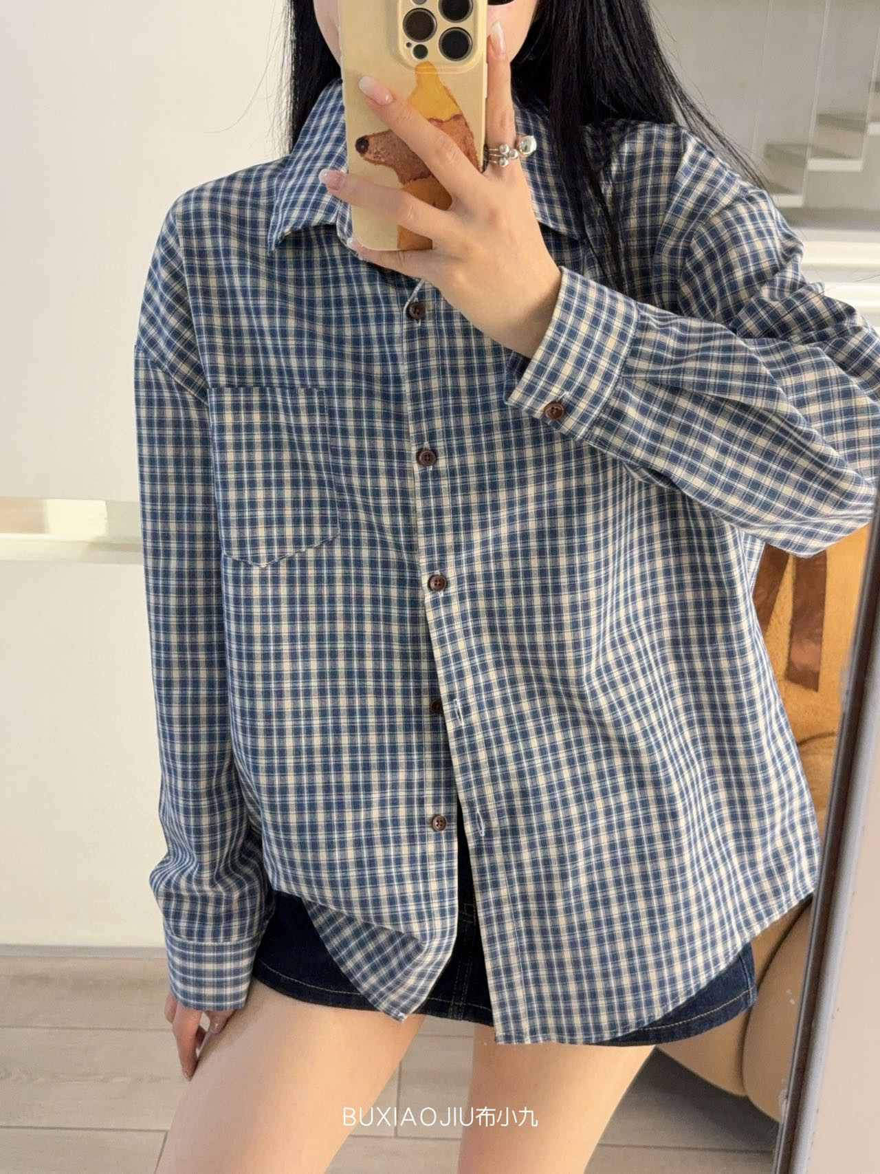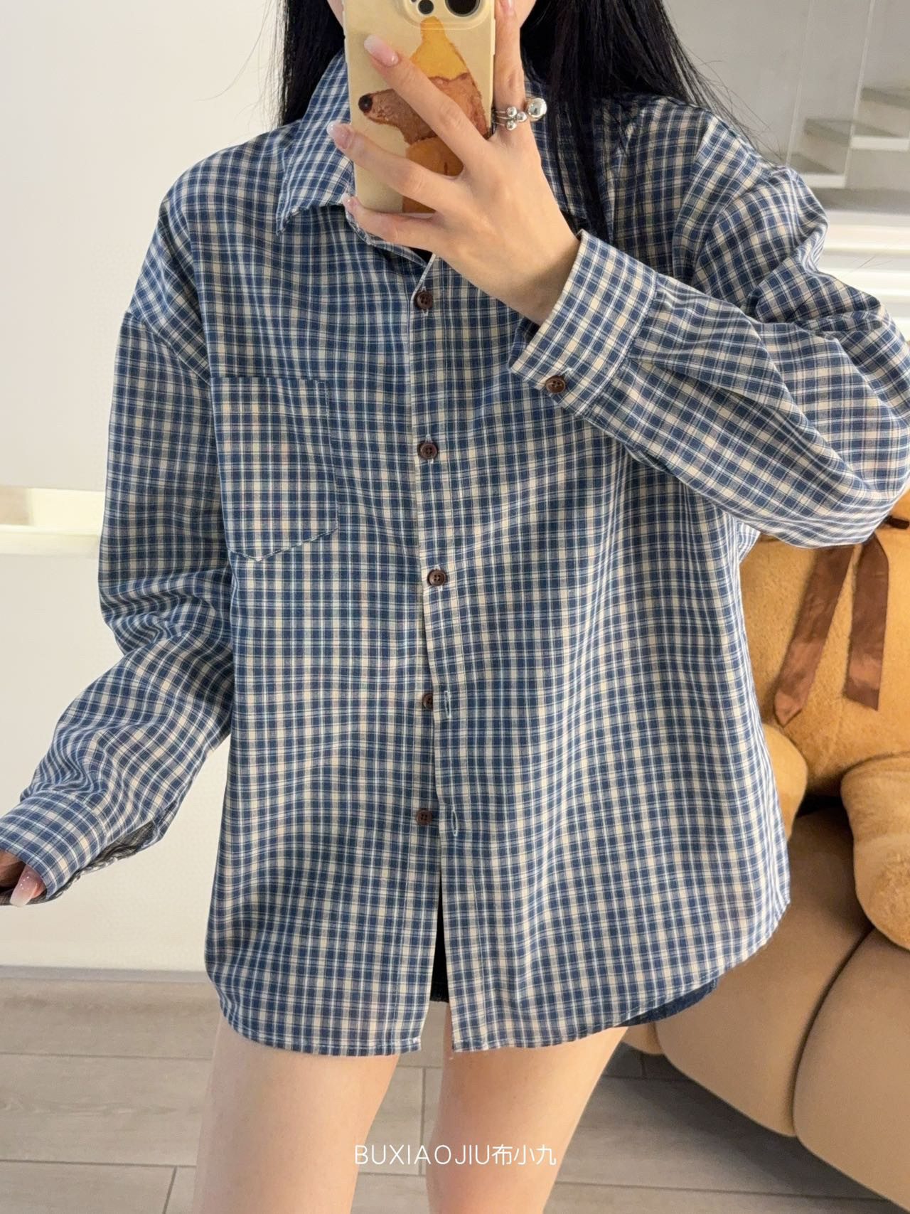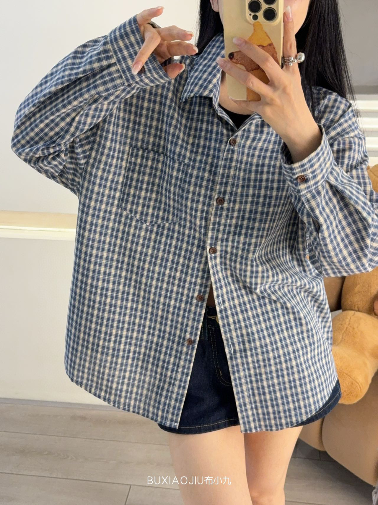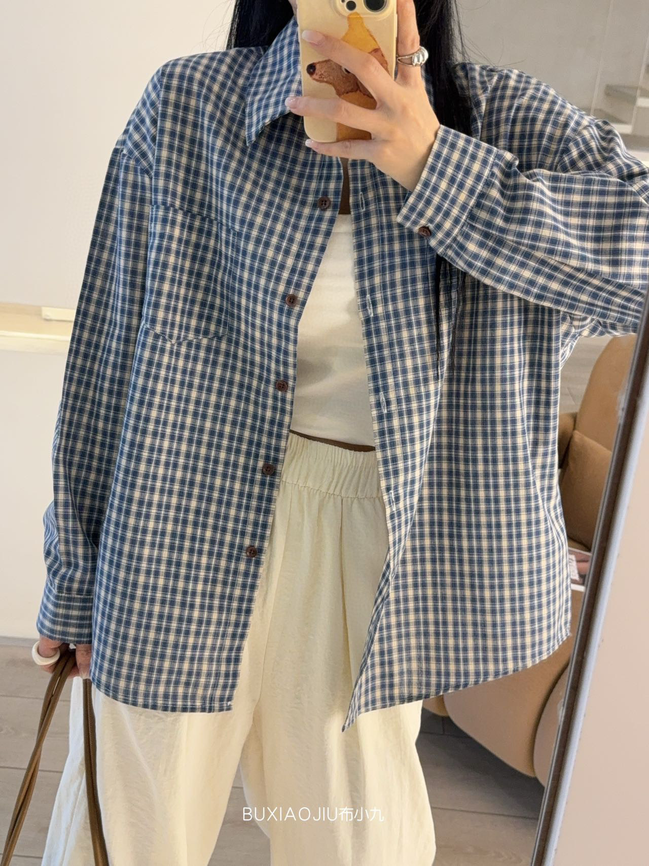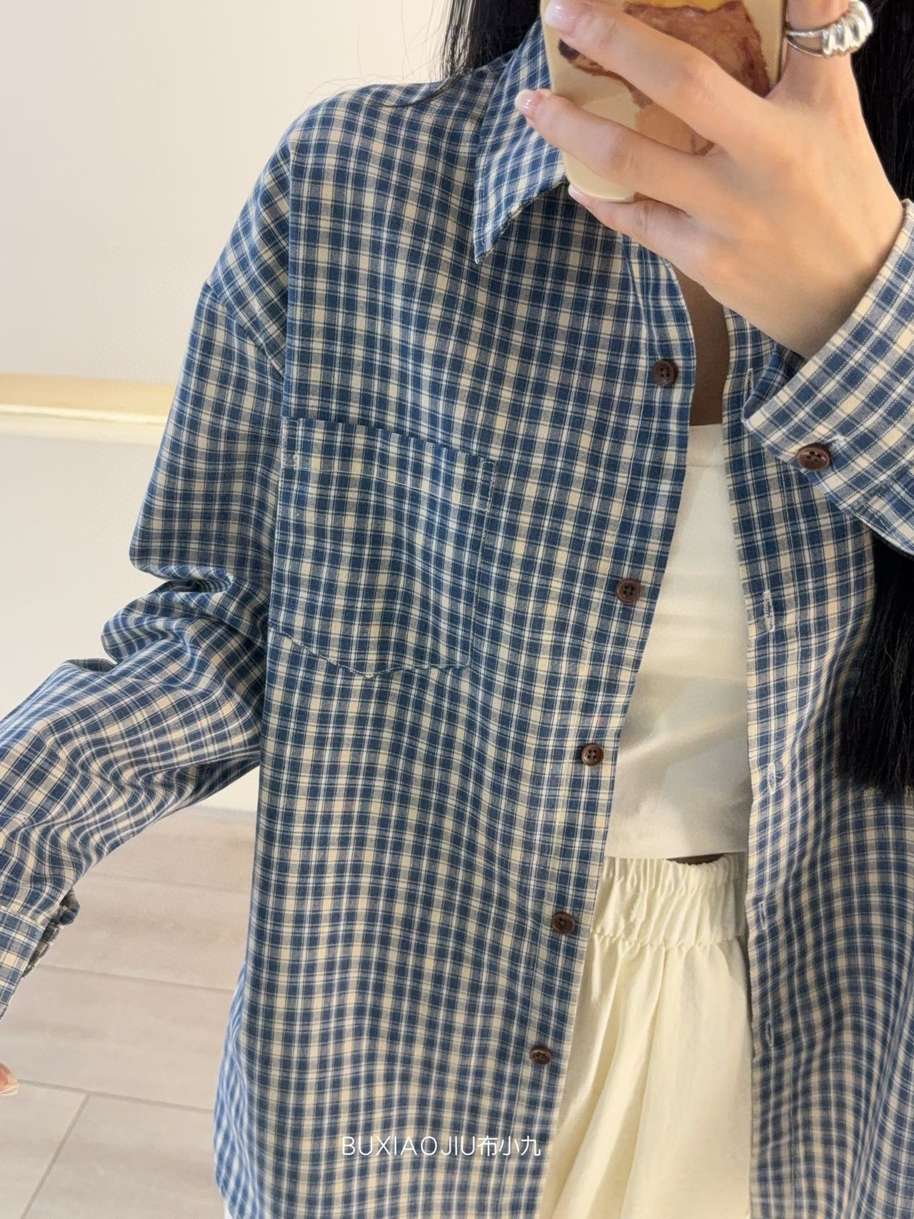 Бу Сяодзюй/сине-белая клетчатая рубашка