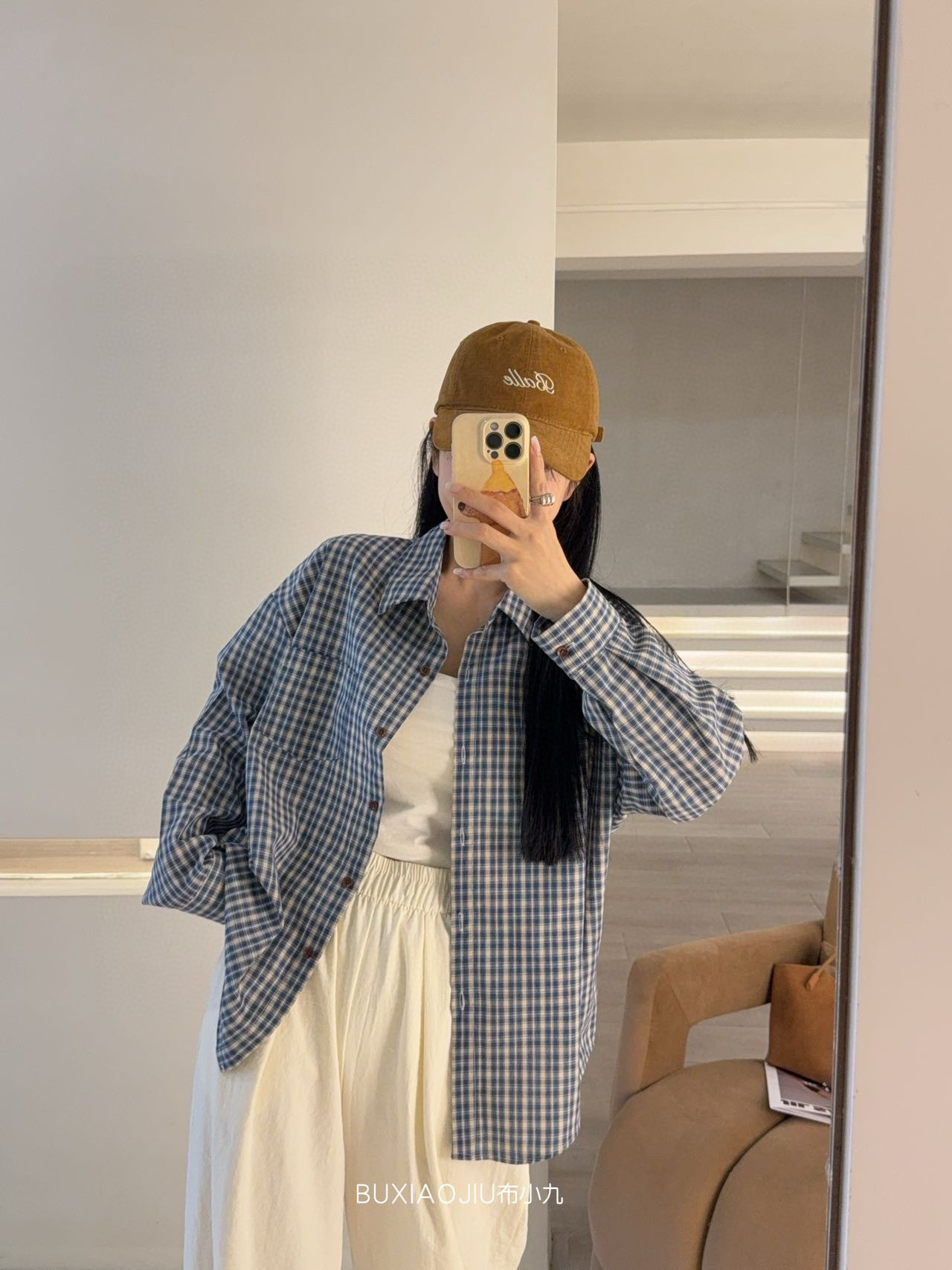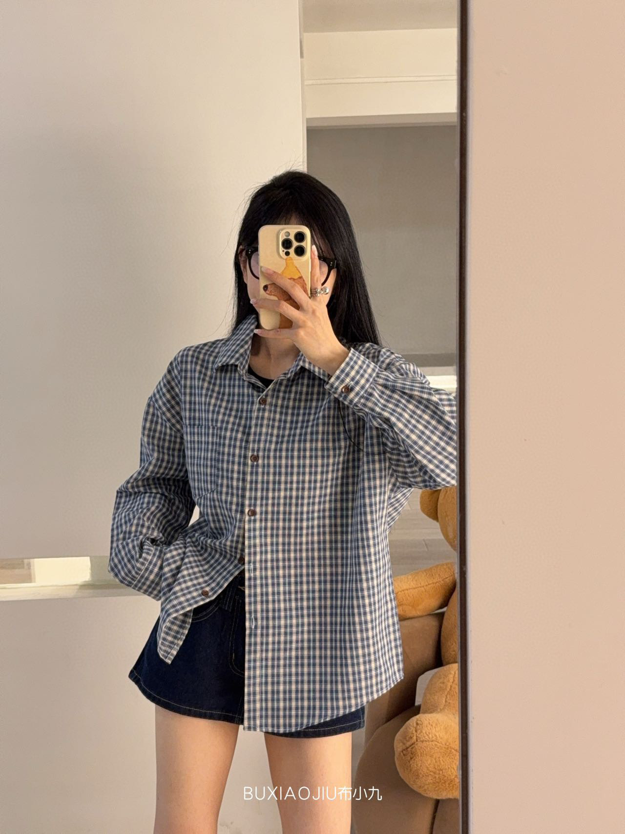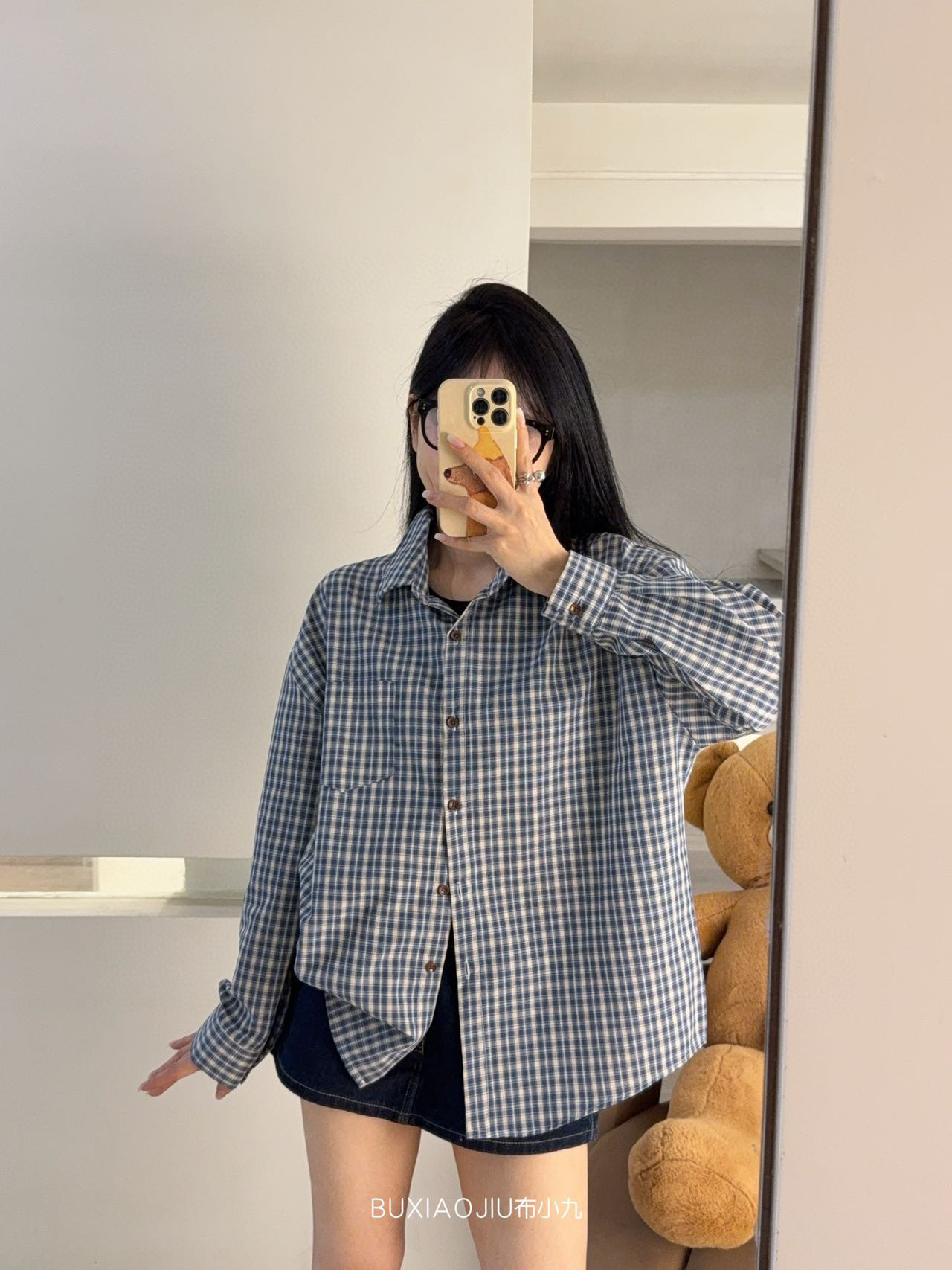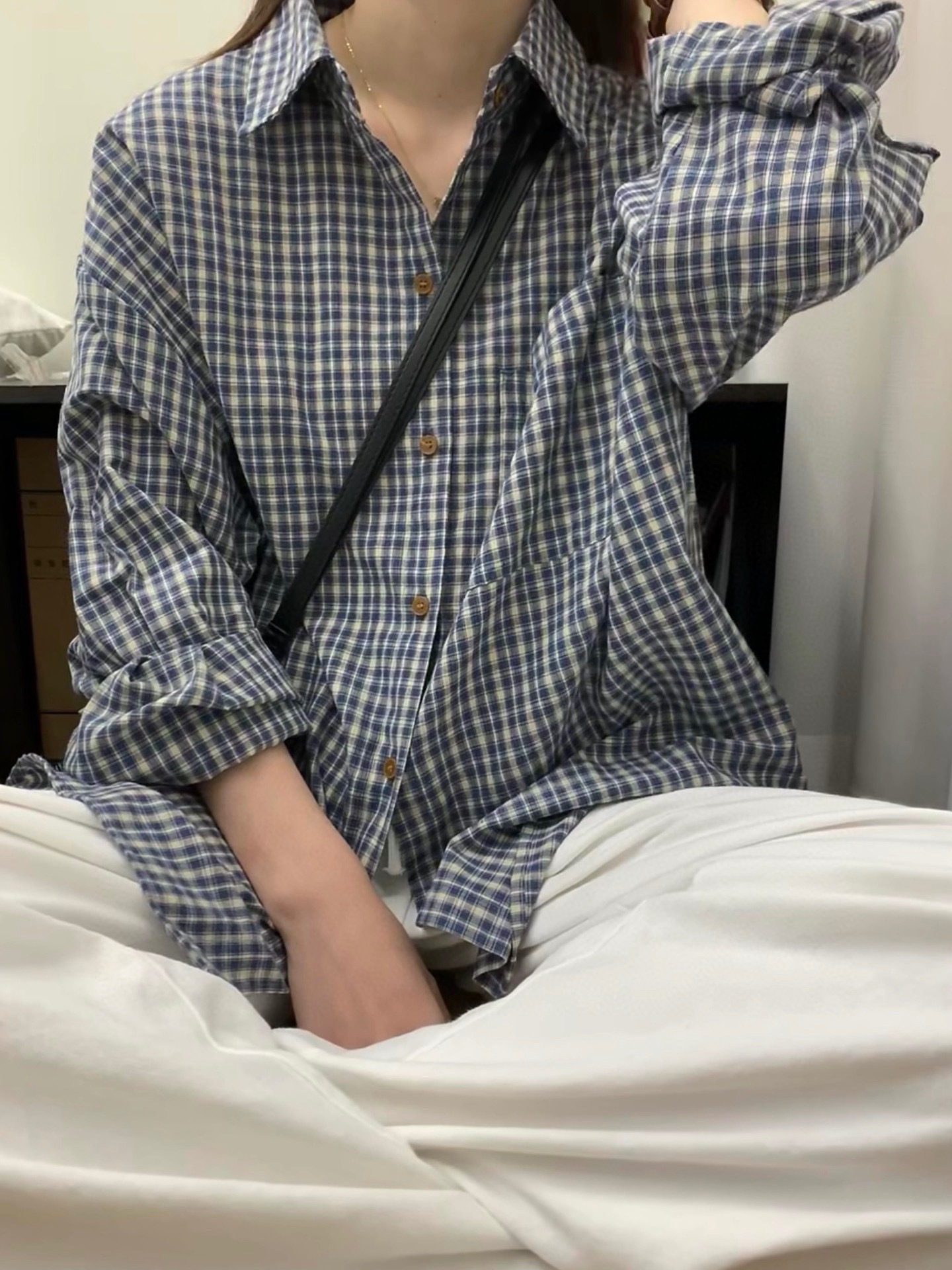 Бу Сяодзюй/сине-белая клетчатая рубашка