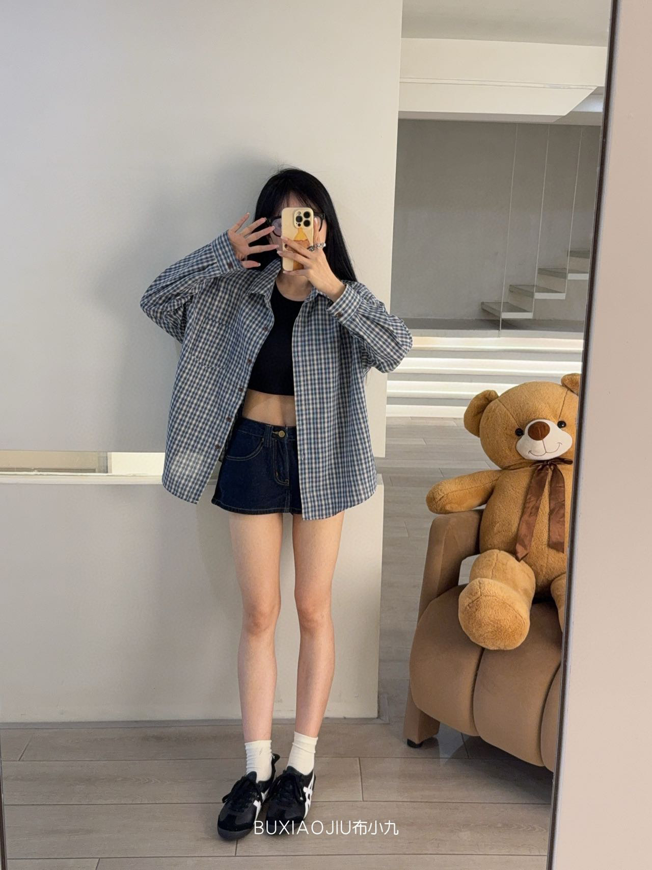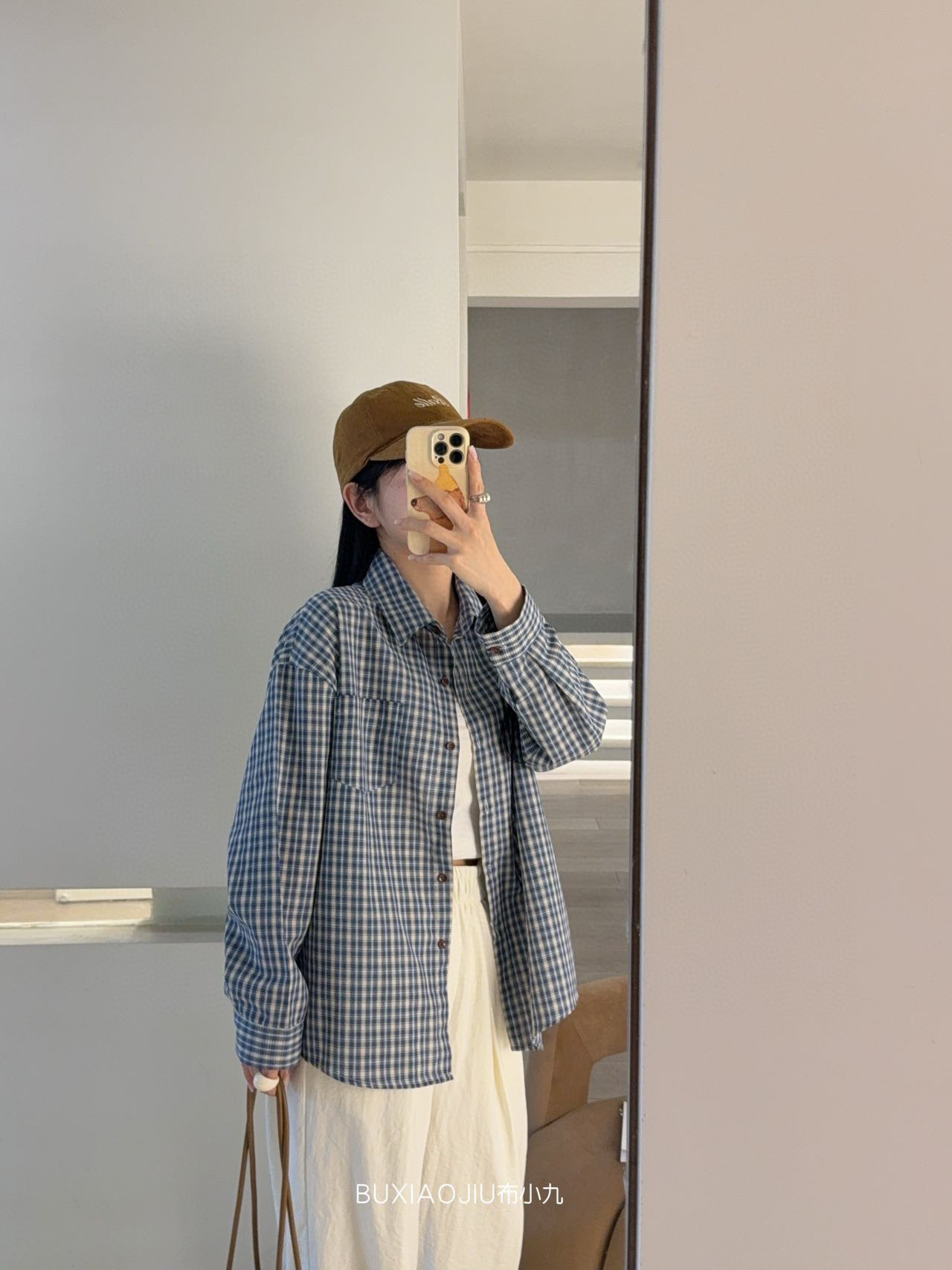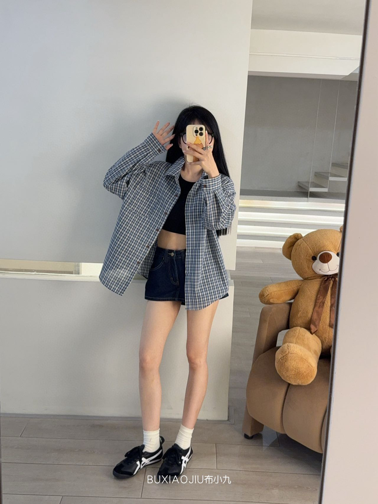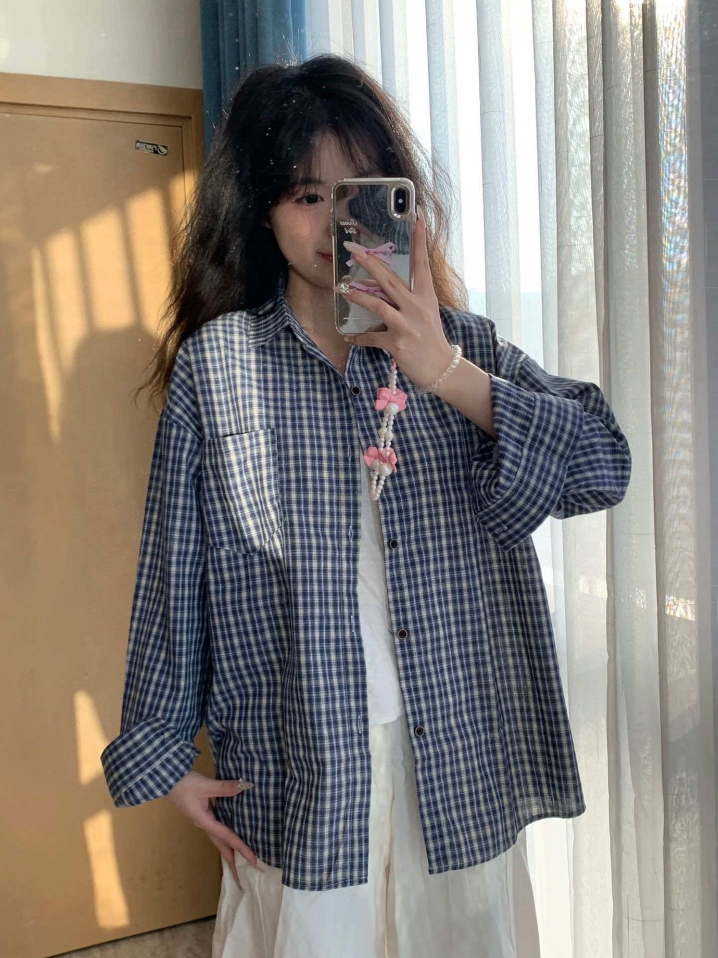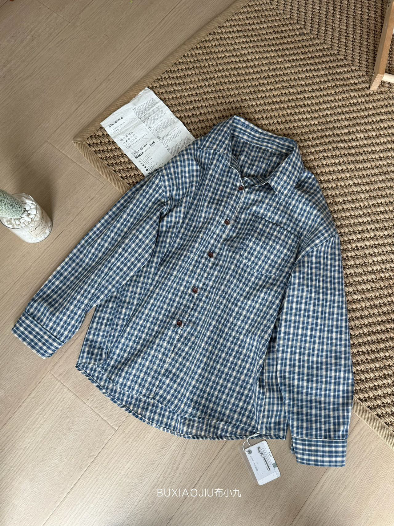 Бу Сяодзюй/сине-белая клетчатая рубашка