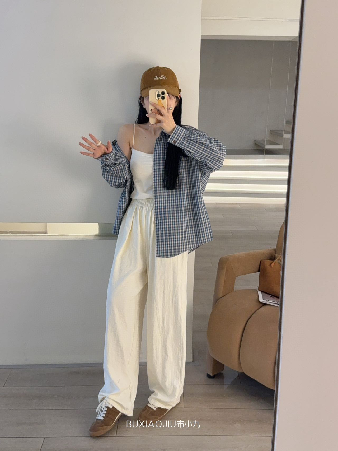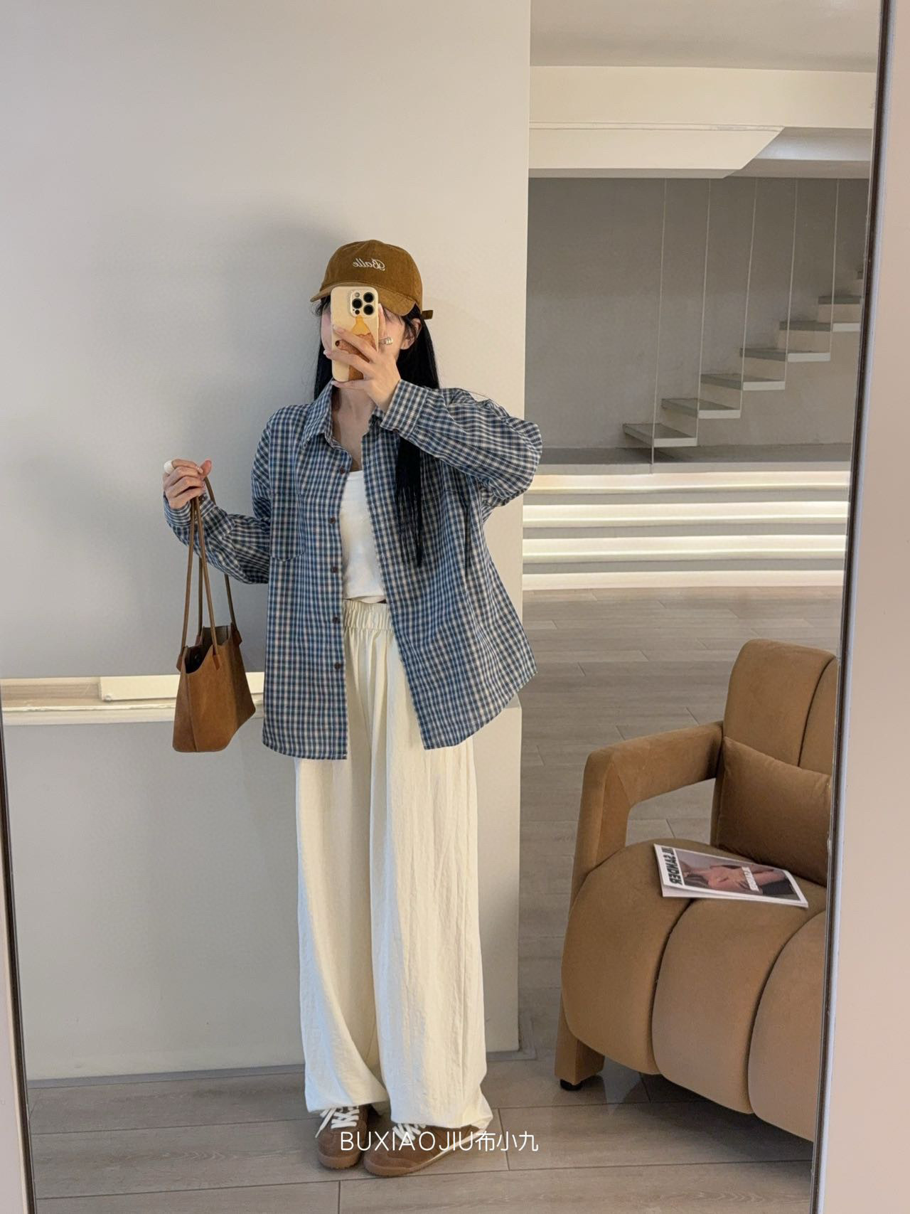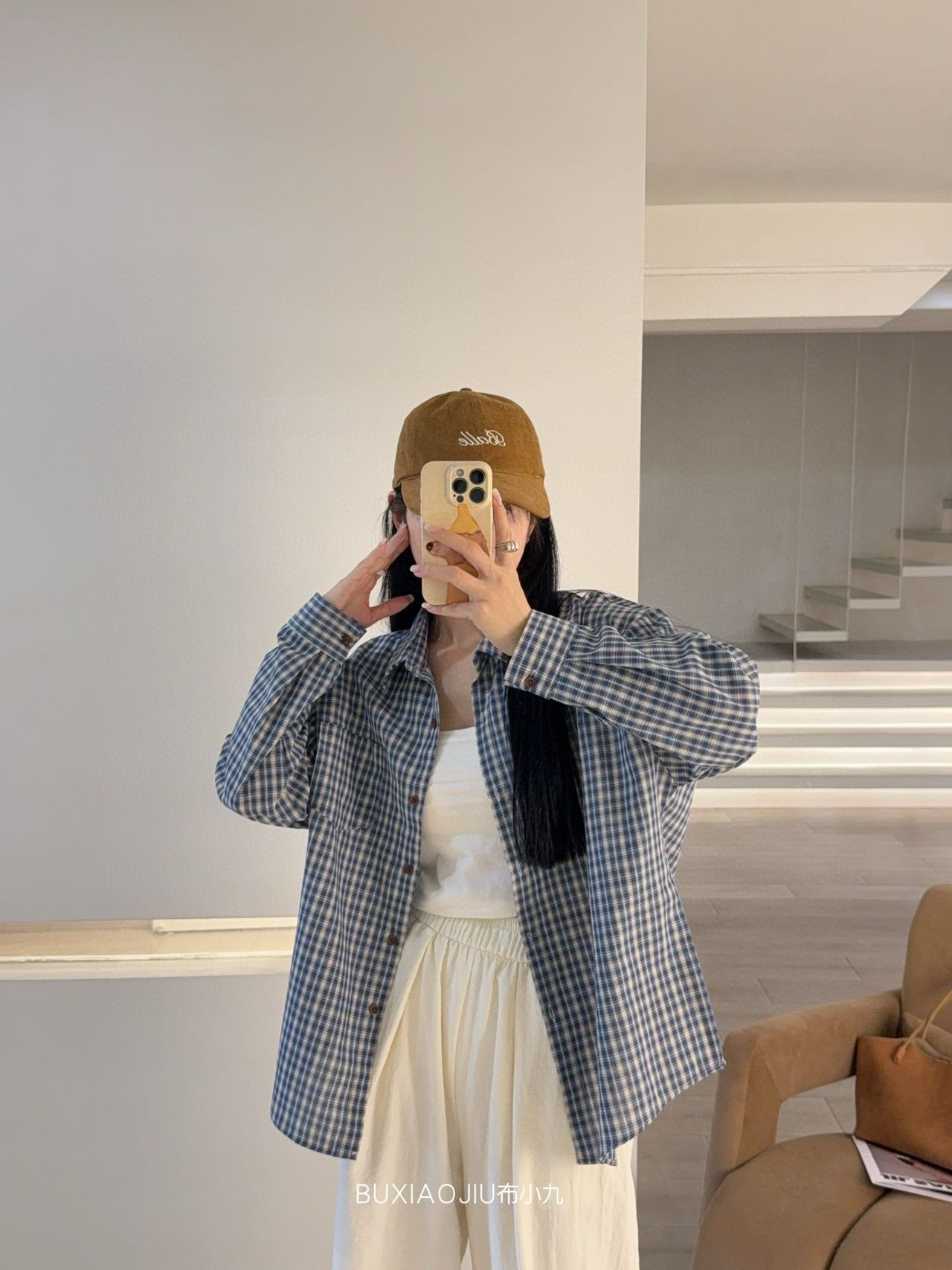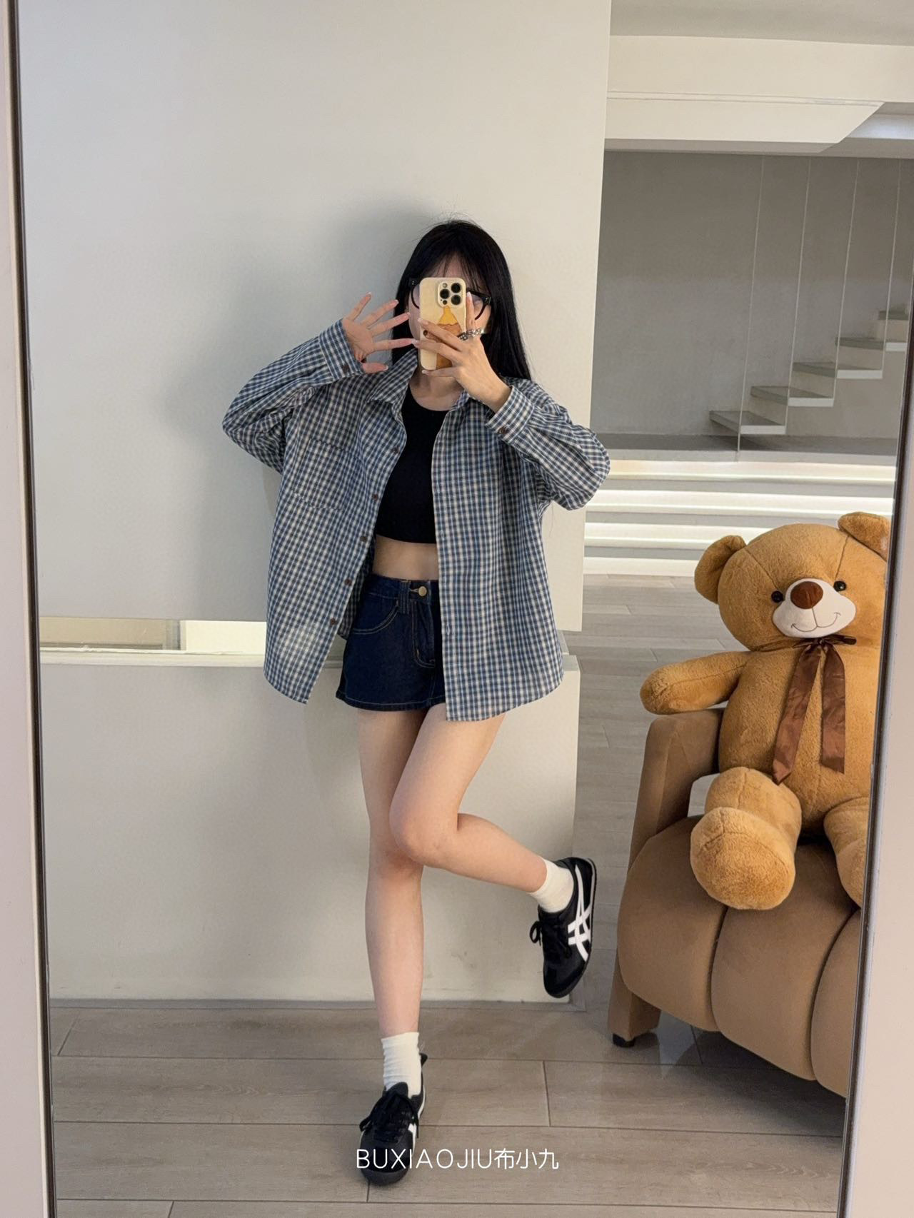 Бу Сяодзюй/сине-белая клетчатая рубашка