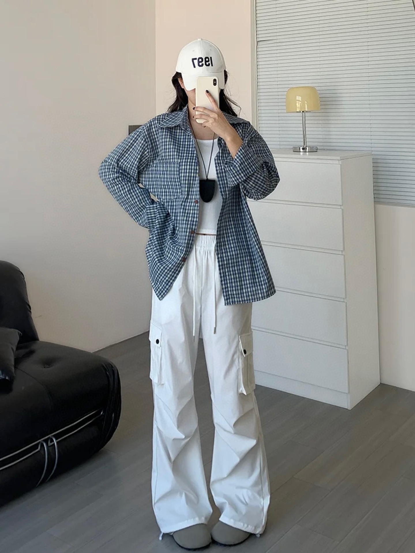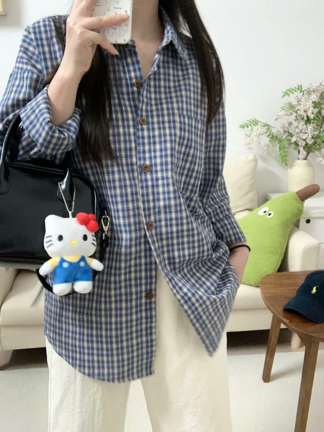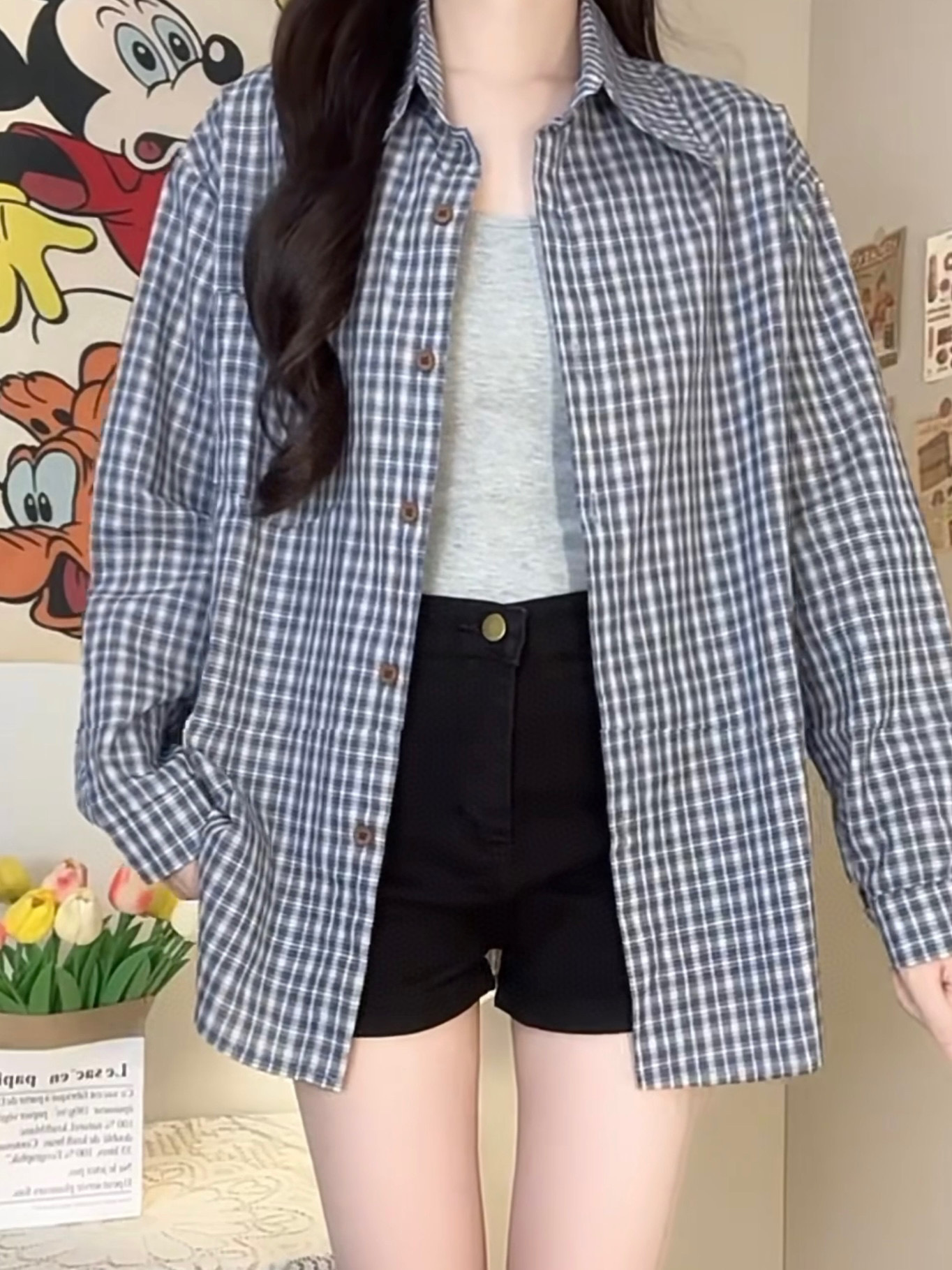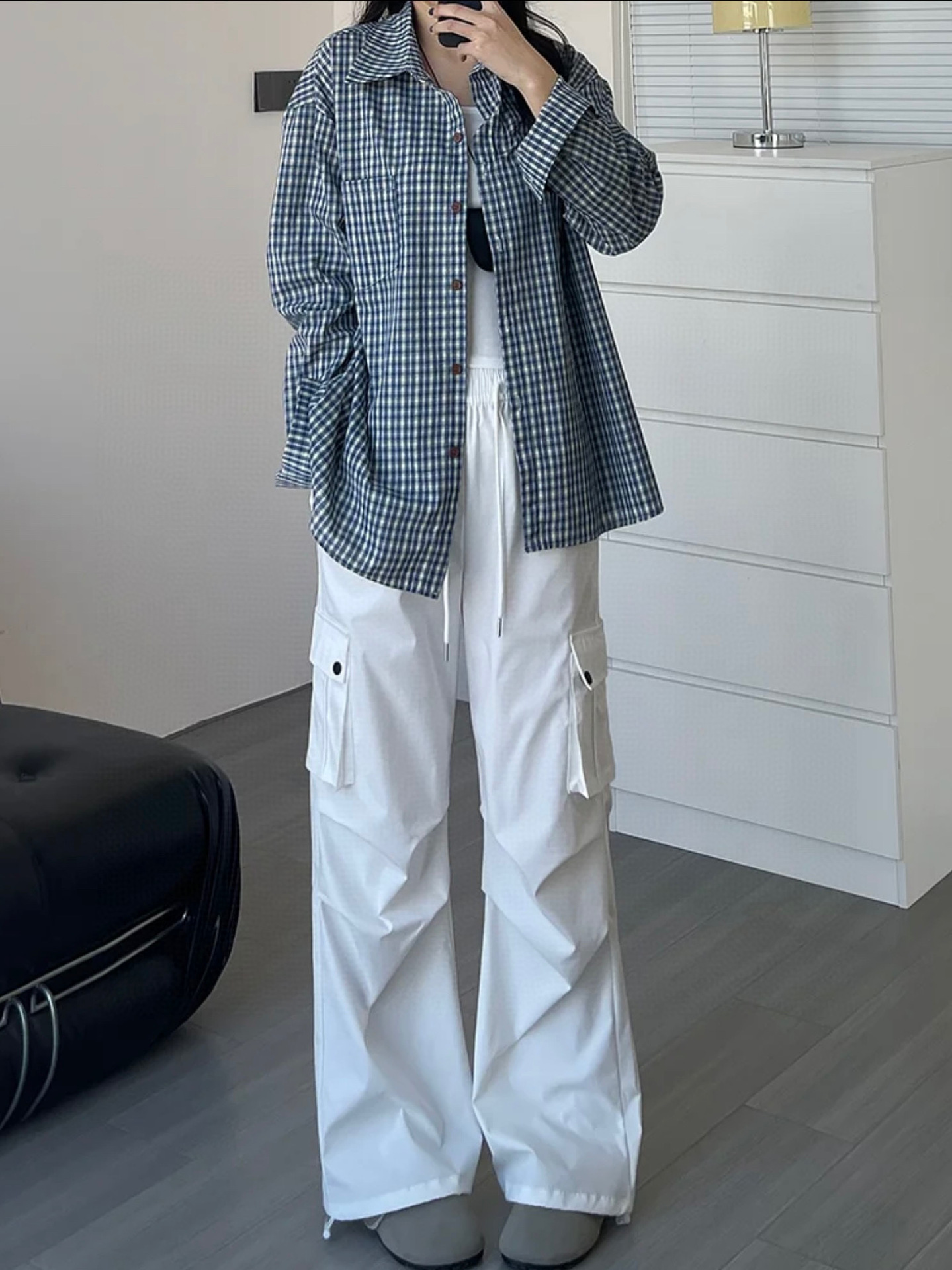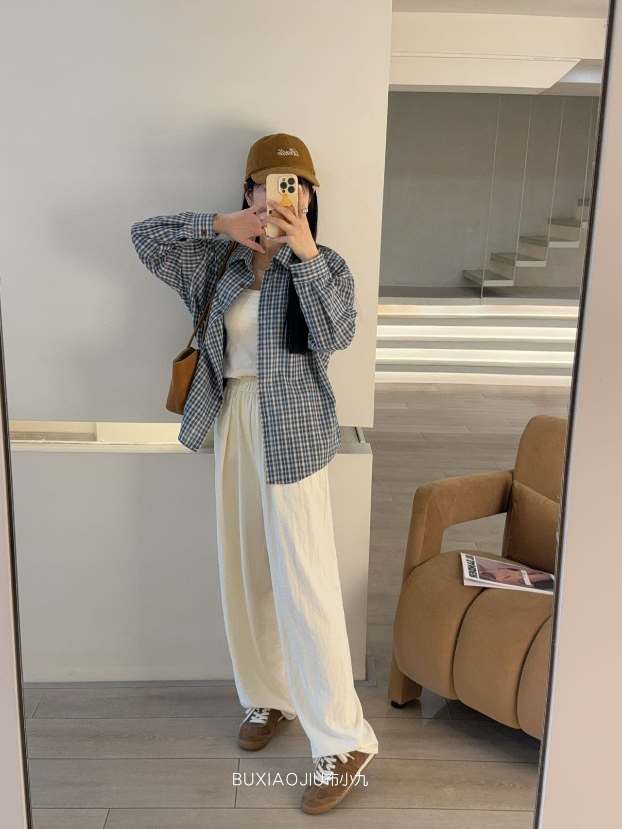 Бу Сяодзюй/сине-белая клетчатая рубашка