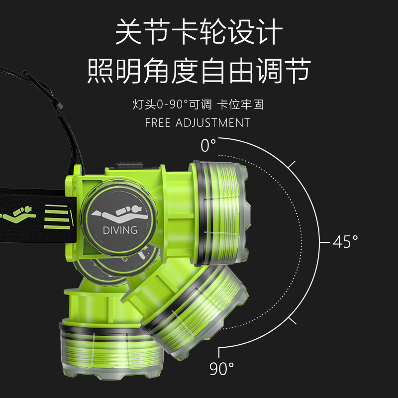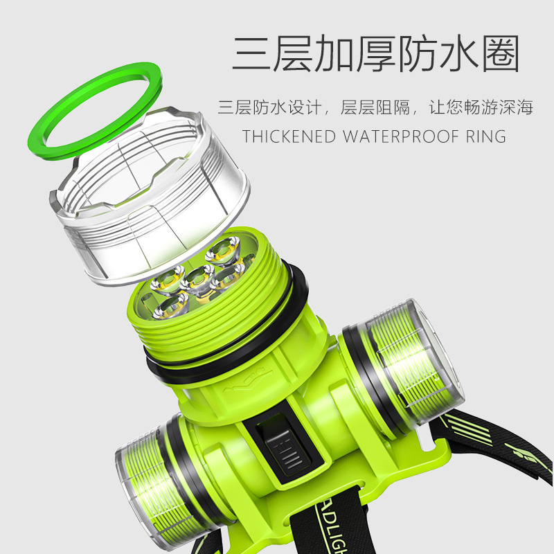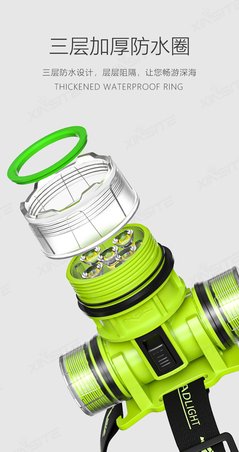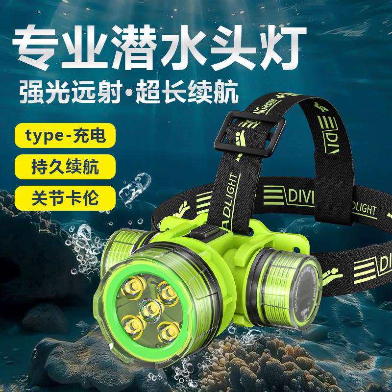 Трансграничная фара для глубокого погружения, сильный свет, дальний свет, крепление на голову, спасательное подводное освещение, рыбалка, IPX8, водонепроницаемая, перезаряжаемая