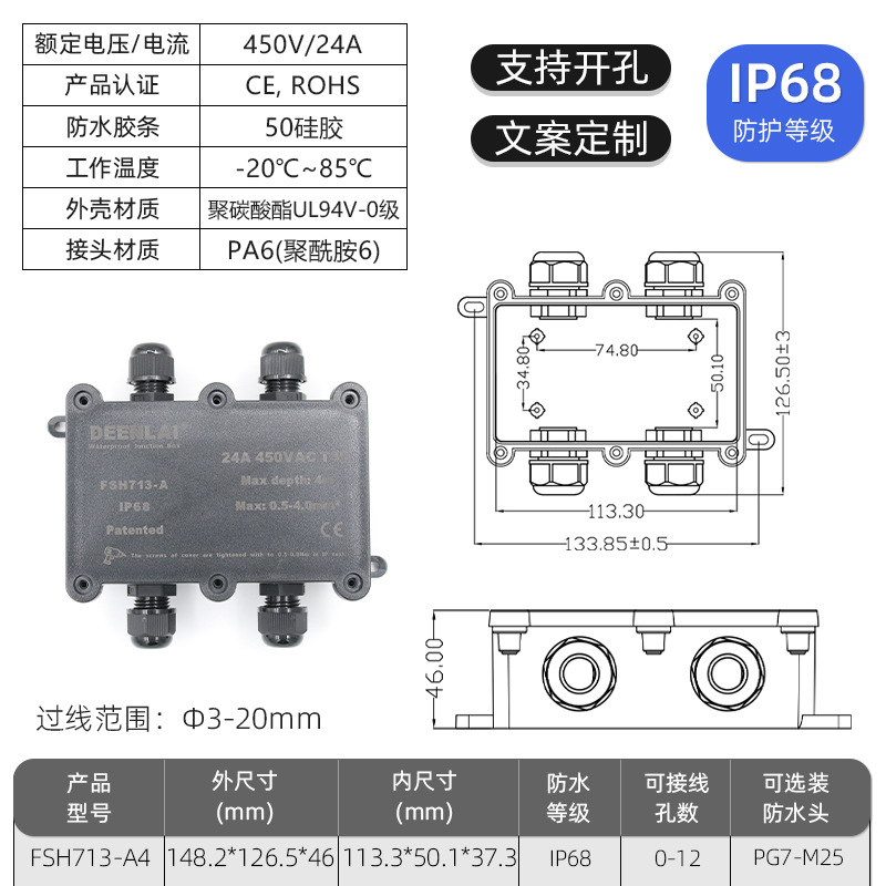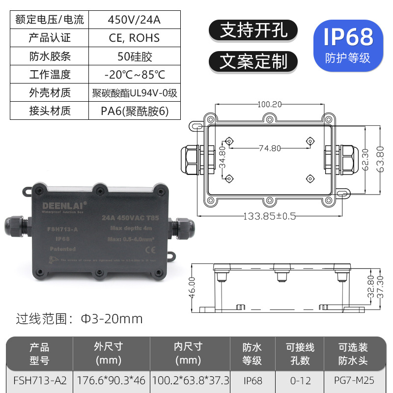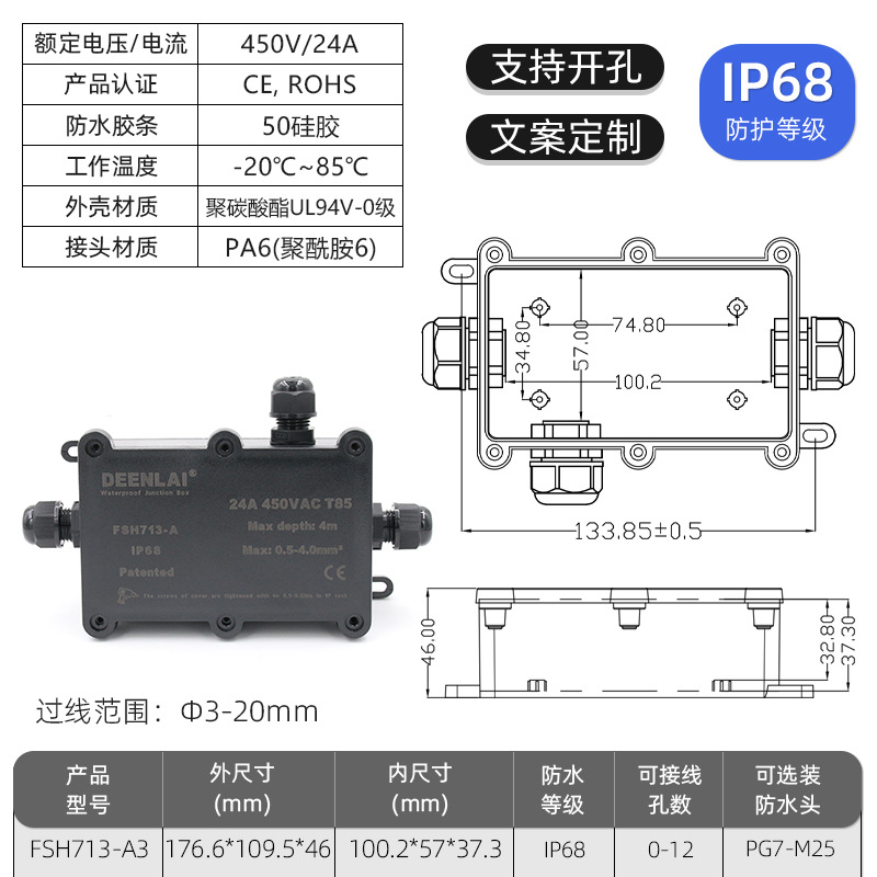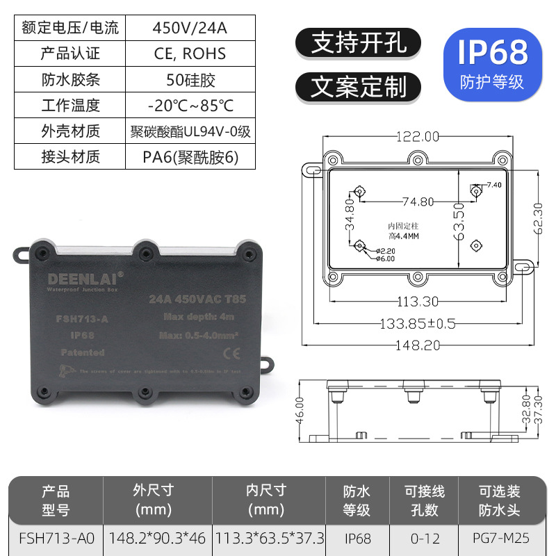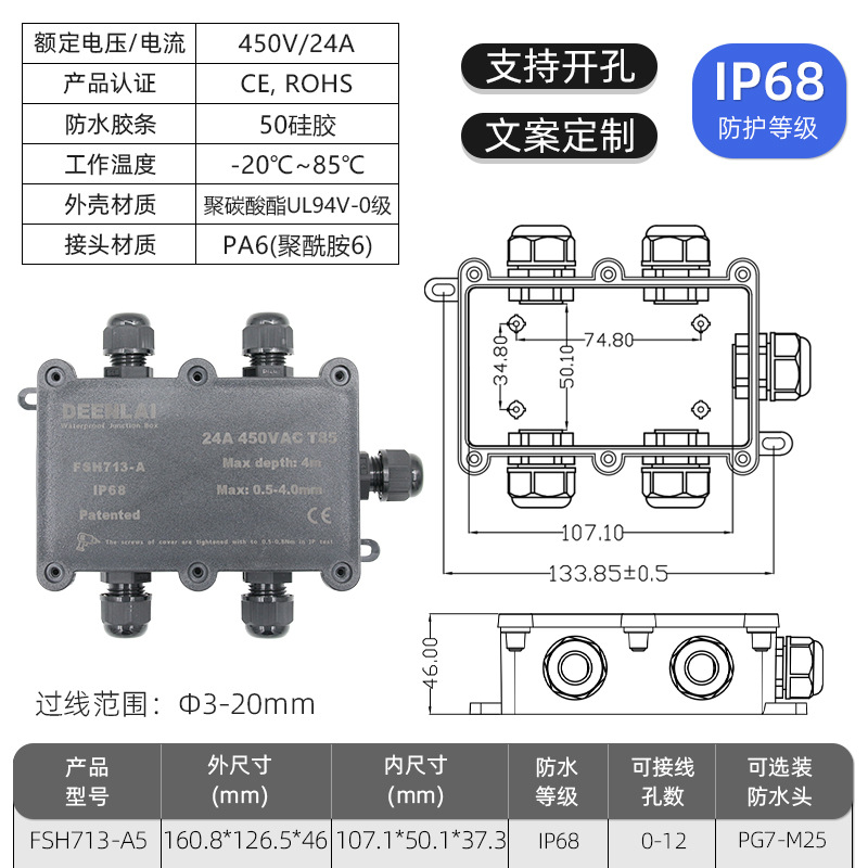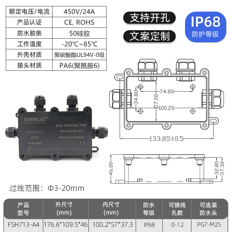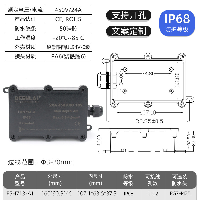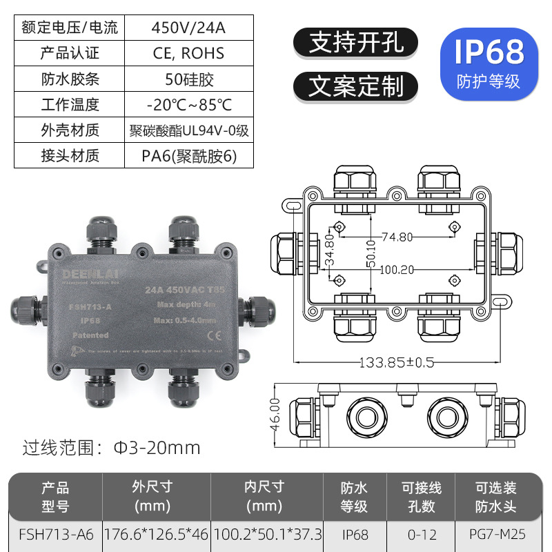 Deenlai уличная водонепроницаемая распределительная коробка с клеммой IP68, огнестойкая, непромокаемая, противотуманная, пылезащитная, двухсторонняя, трехсторонняя, шестисторонняя