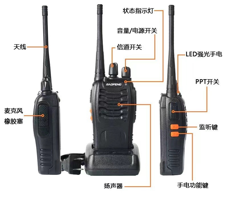 Рация Baofeng BF-888S, портативная беспроводная рация для улицы, 5 Вт, высокая мощность, гражданское и коммерческое применение, многофункциональная