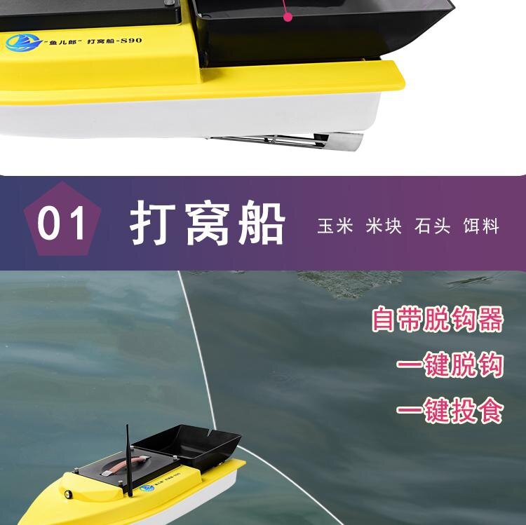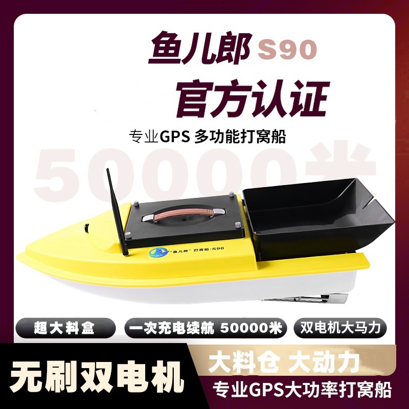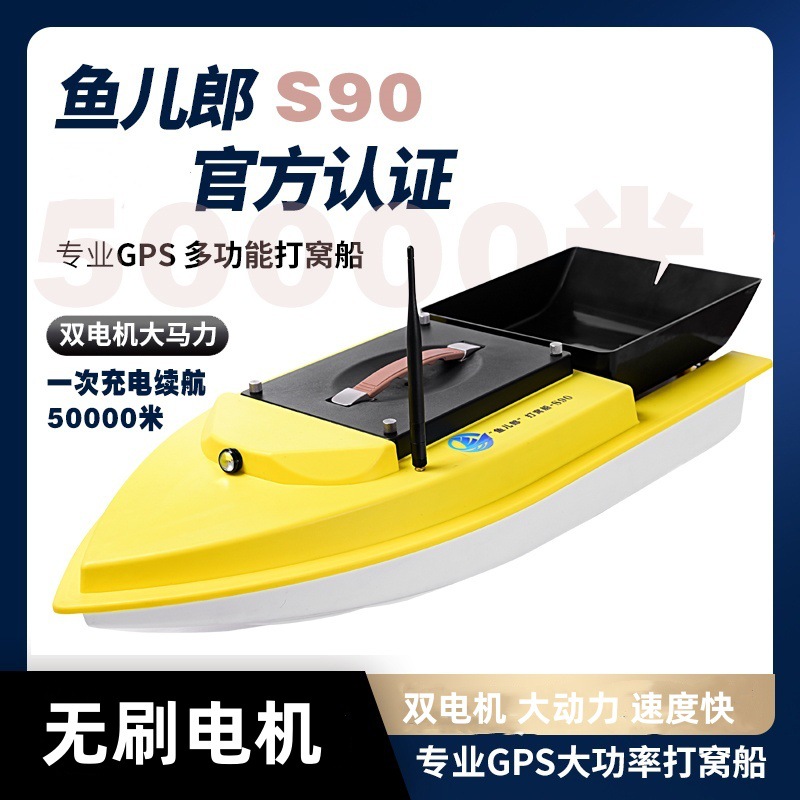 Рыболовная лодка Yuerlang S90 с бесщеточным двигателем, высокоскоростная, с функцией подачи наживки, вытягивания сети и многофункциональным дистанционным управлением.
