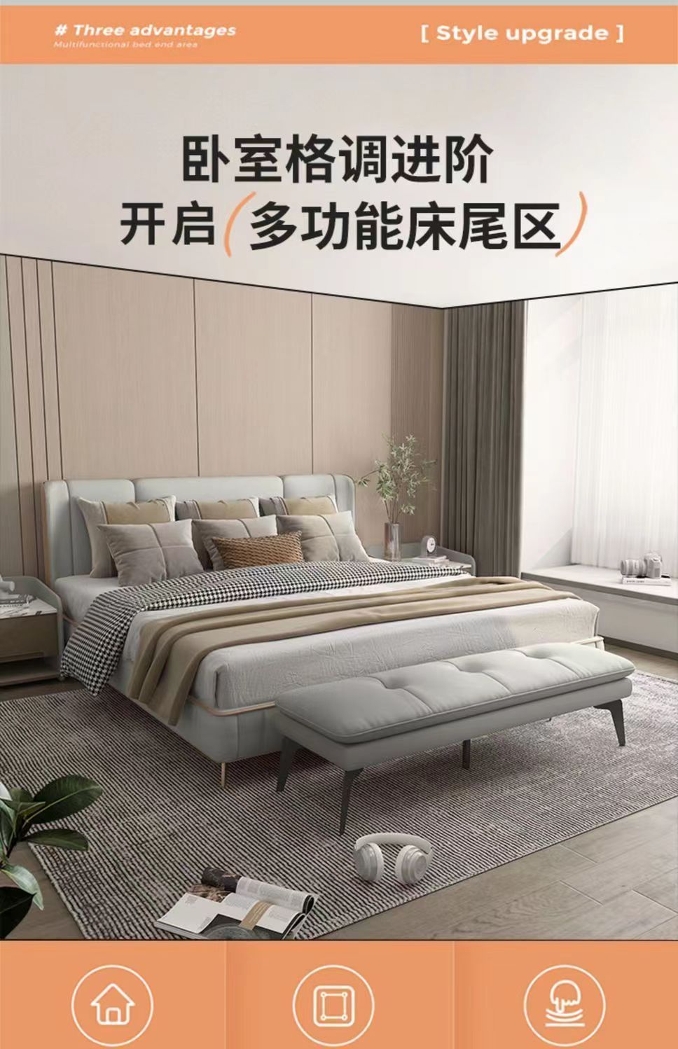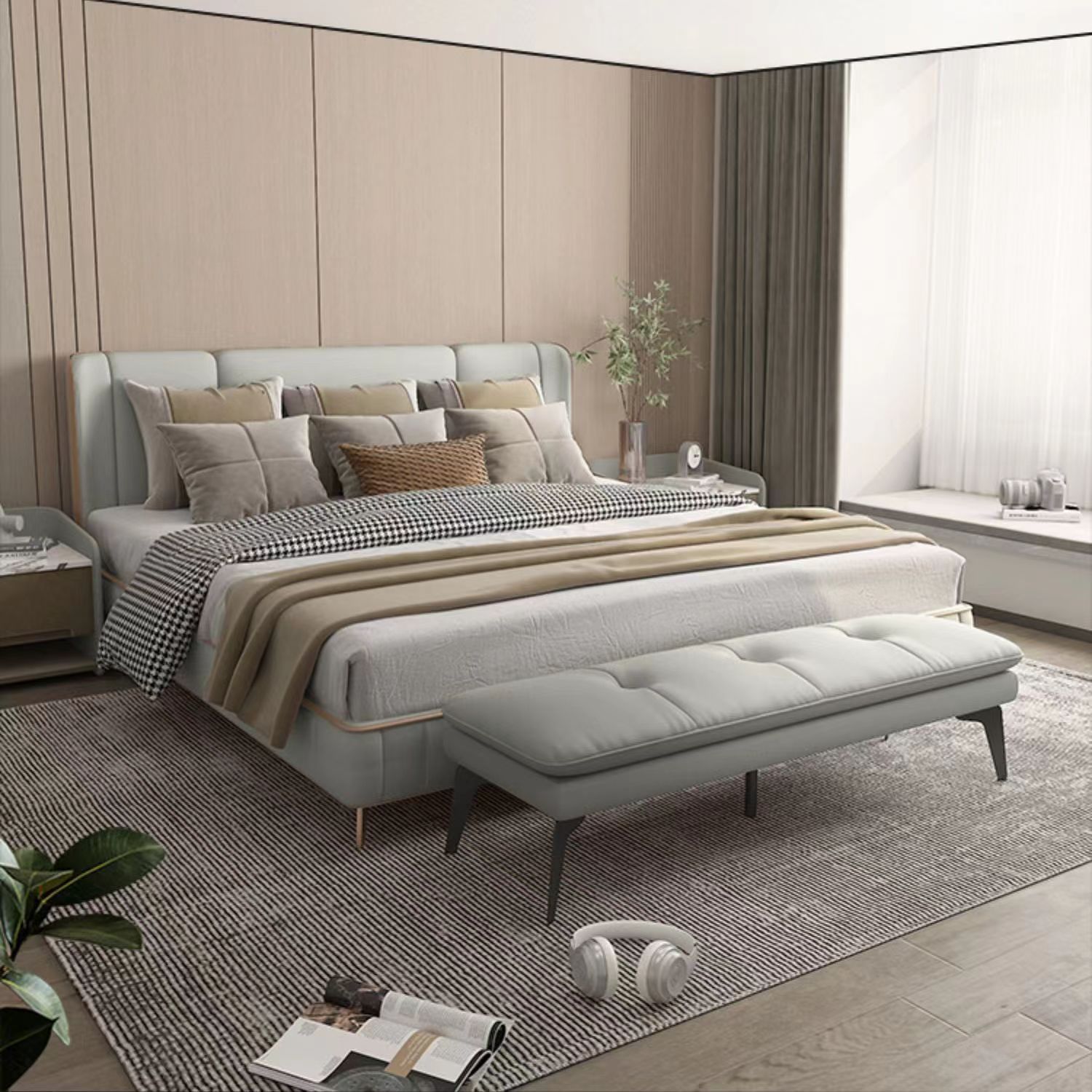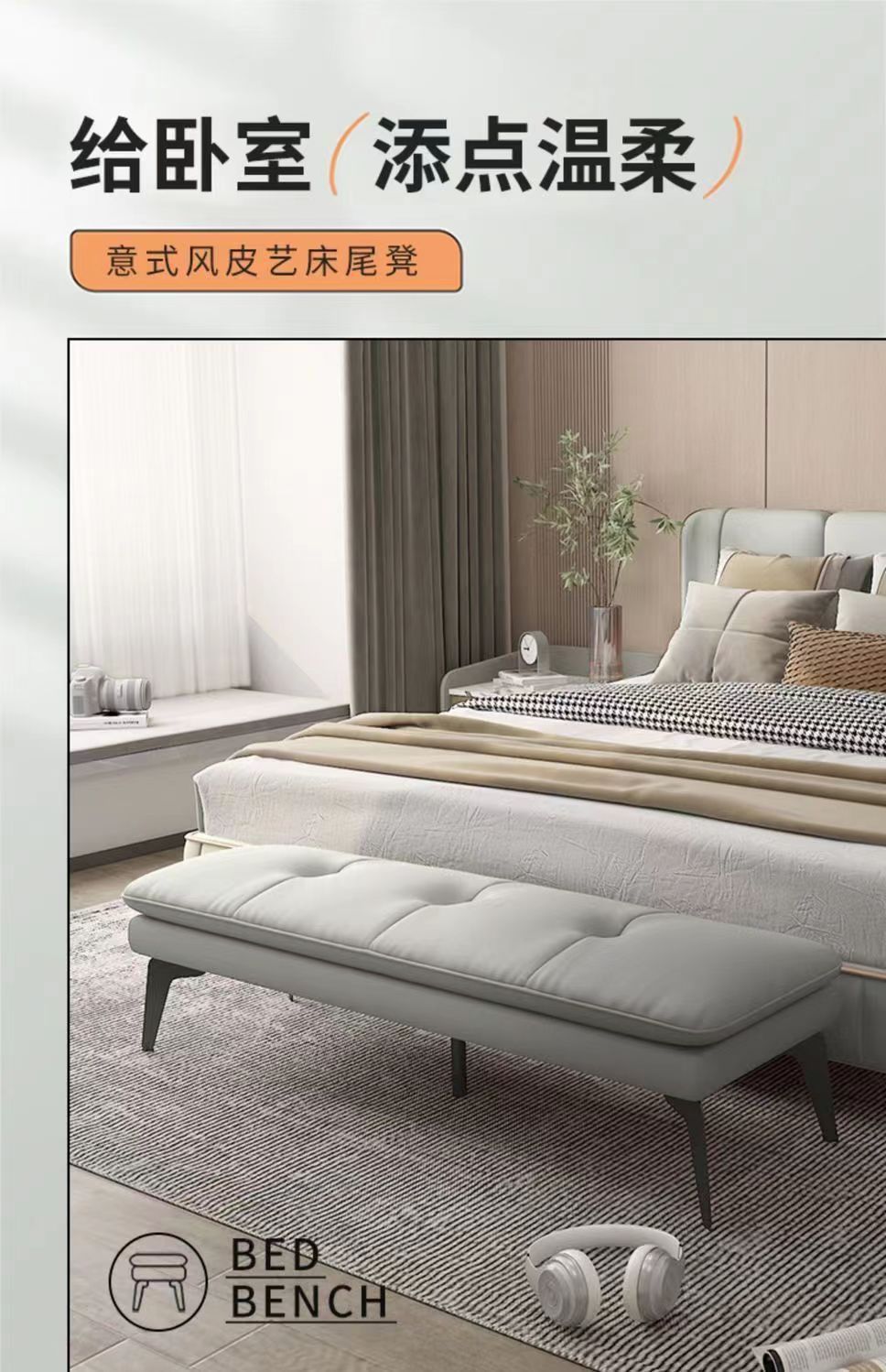 Легкая роскошная спальня в итальянском стиле, современный минималистичный диван для гостиной, гардеробная, магазин одежды, длинная скамейка для переобувания, подставка для ног.