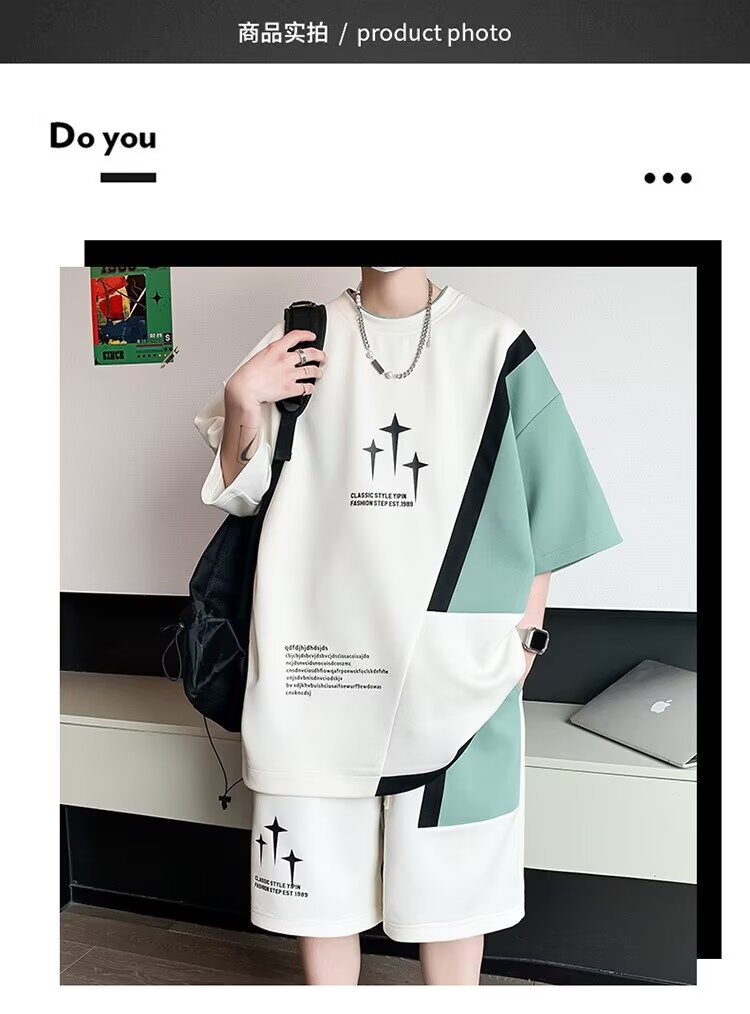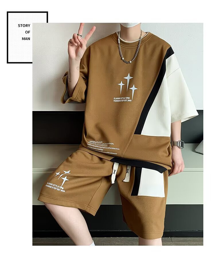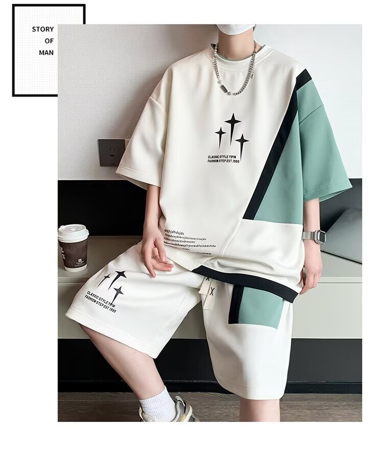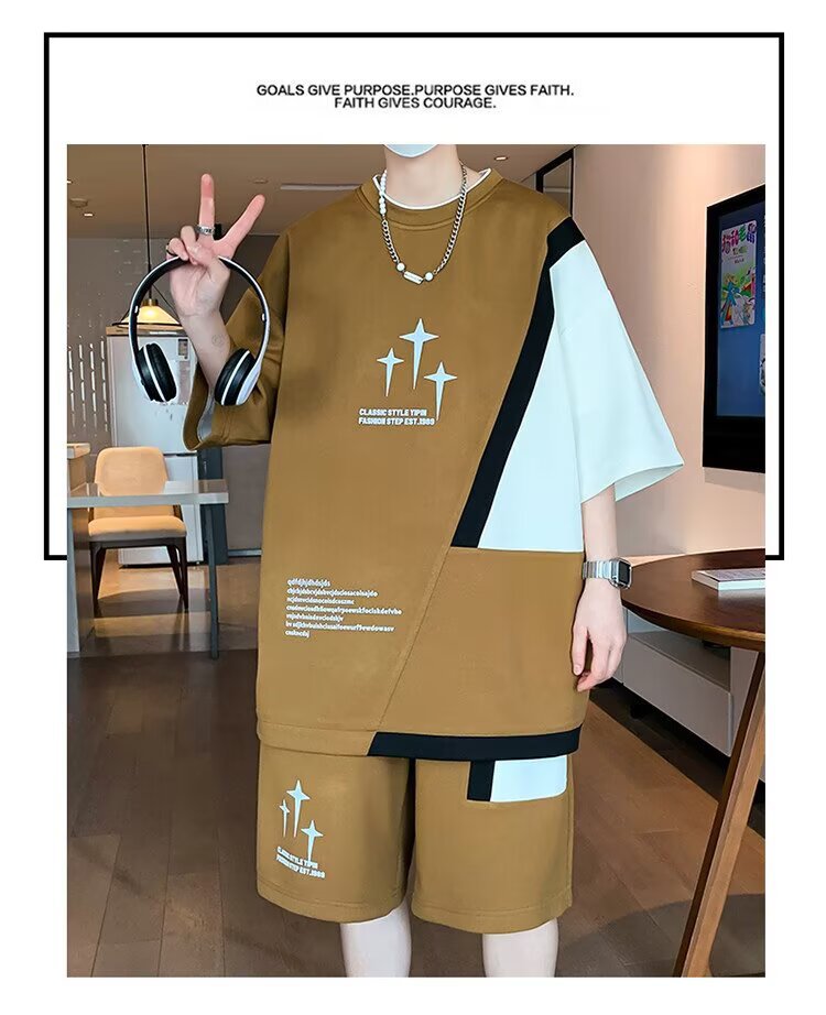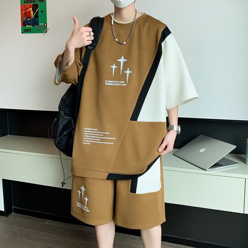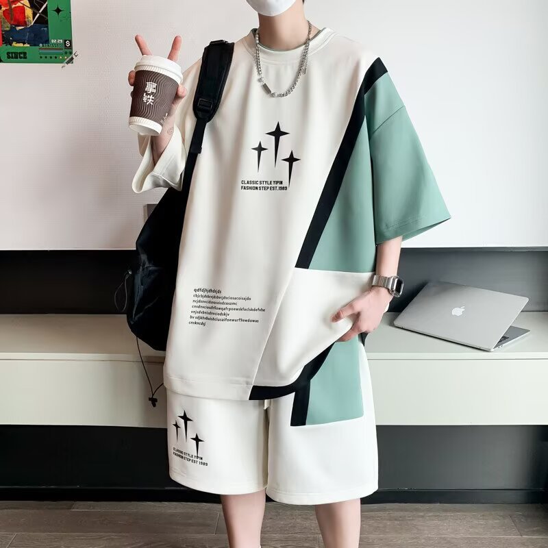 Спортивный костюм мужской, большой размер, летний, тонкий, короткий рукав, шорты, двухкомпонентный, для бега, оптовая торговля