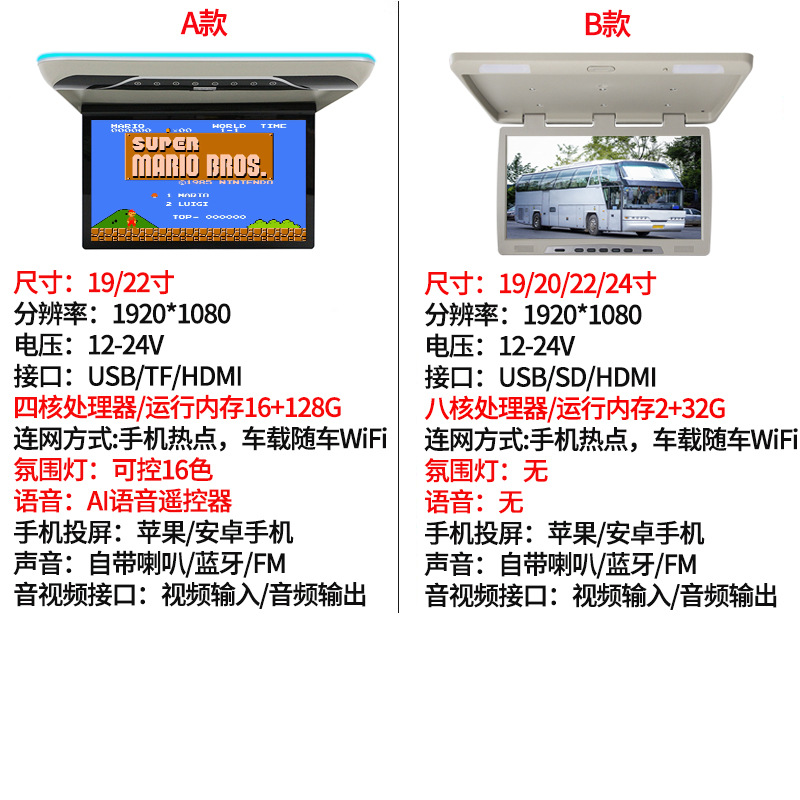 20/22/ 24inch Автомобильный ТВ HD с большим экраном Android Потолочный монитор Пассажирский автомобиль RV Модернизация USB Ruipie