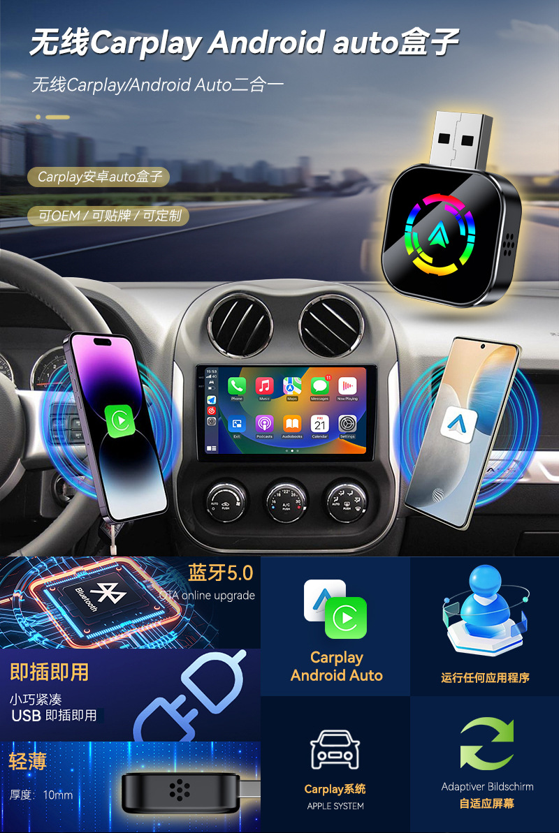Беспроводной адаптер CarPlay и Android Auto: умное подключение автомобиля к устройству, 2-в-1.