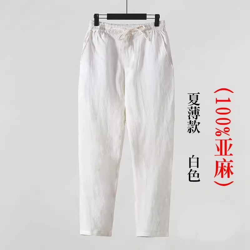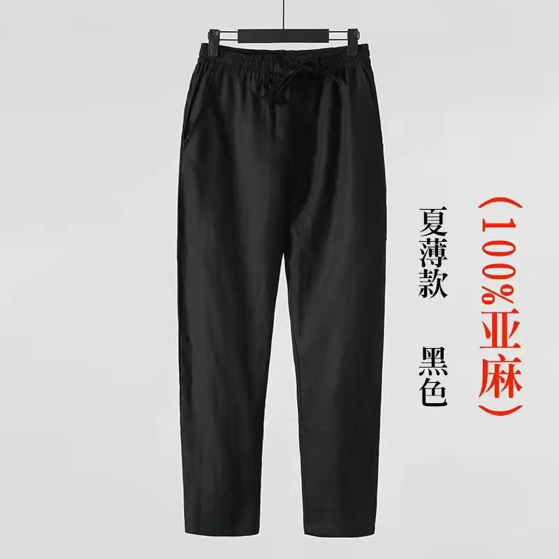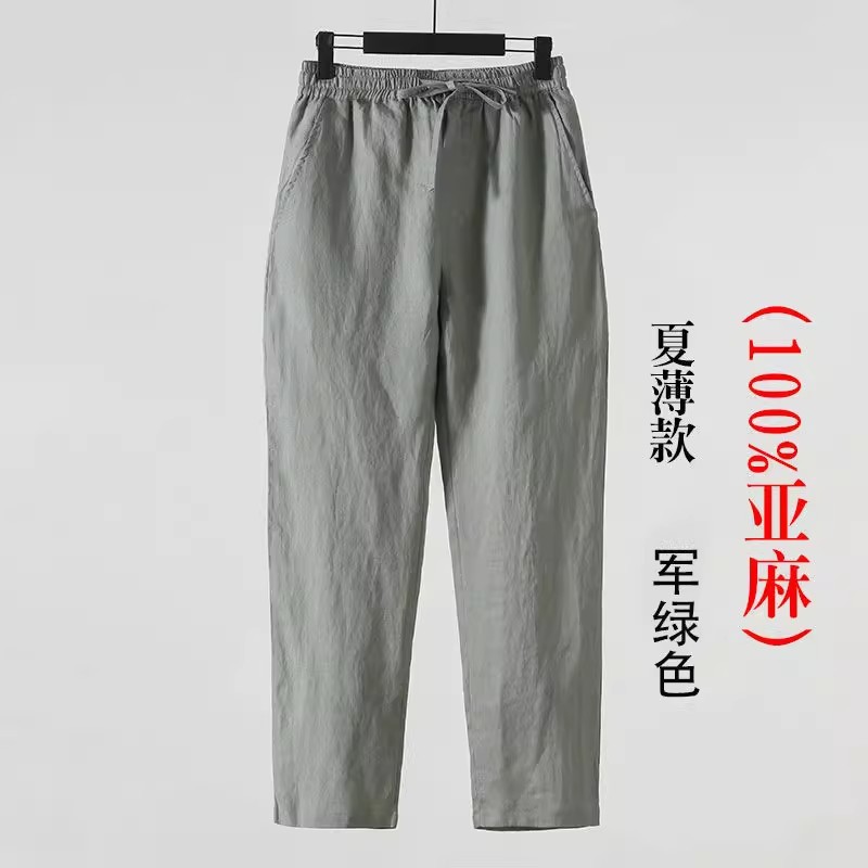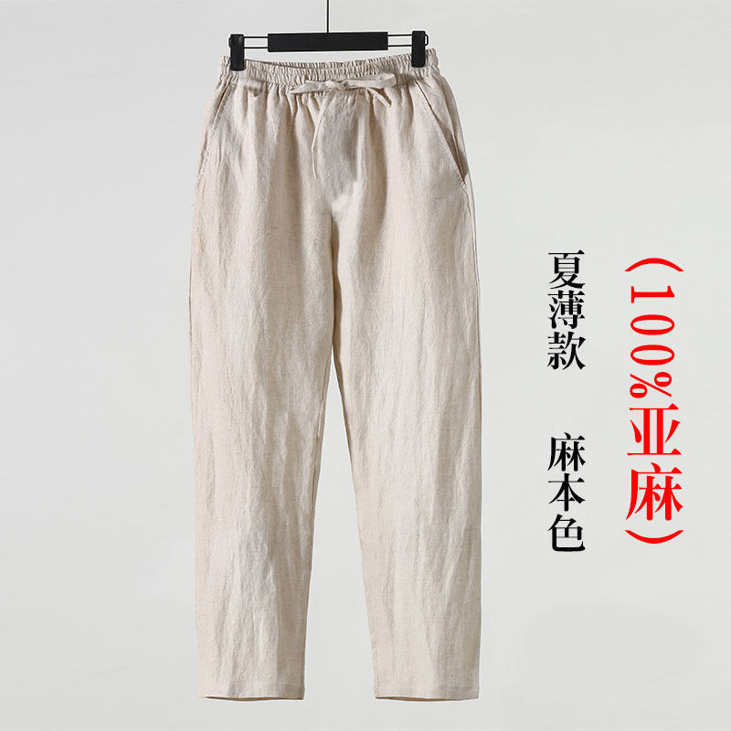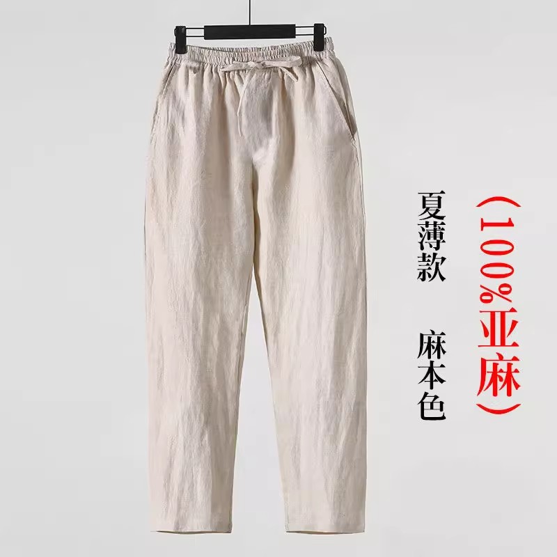 Летние льняные брюки мужской тонкий свободный хлопок большого размера