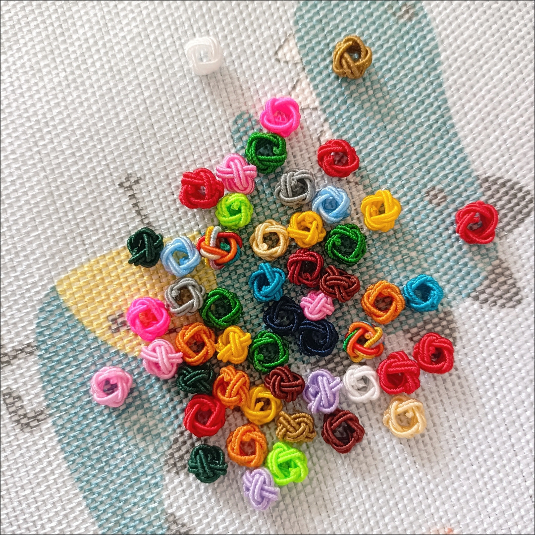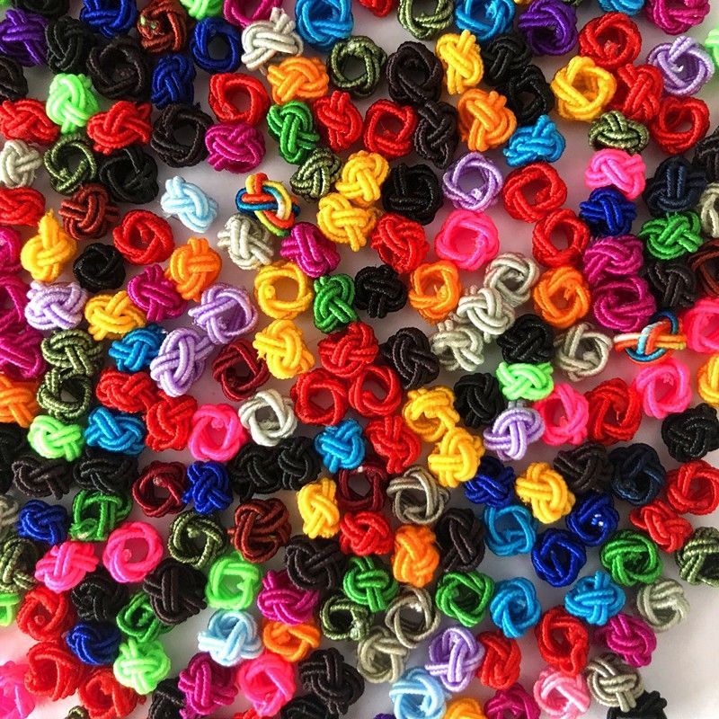 Узел ананас ярко-красный; Ананасовый узел семь цветов; красная катушка