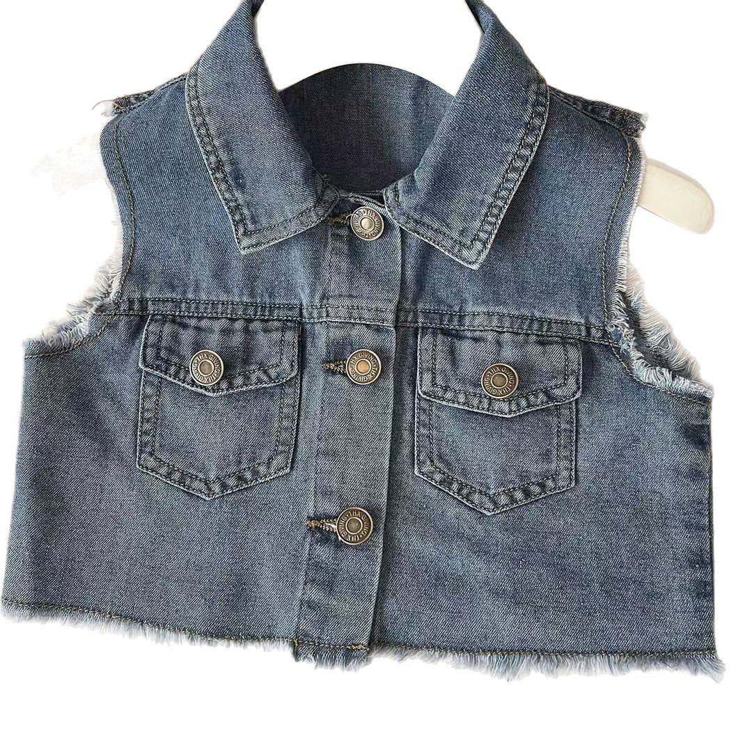 2025 новый летний корейский стиль модный повседневный джинсовый костюм без рукавов для девочек