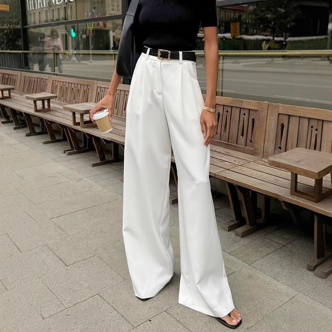 Белые женские брюки в европейском и американском стиле, модные универсальные повседневные брюки с высокой талией, свободные простые брюки длиной до пола, трансграничные.