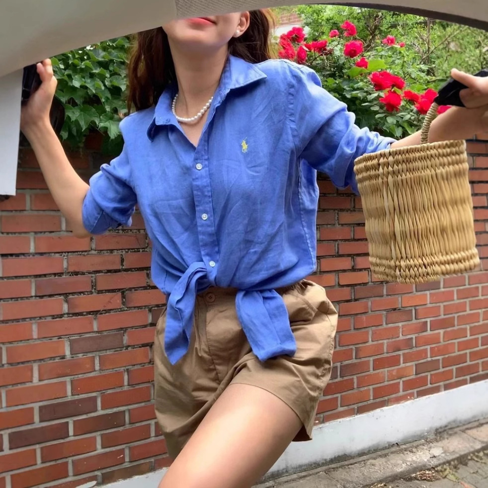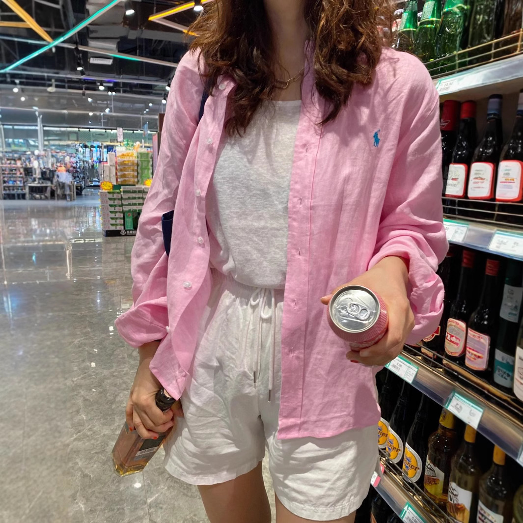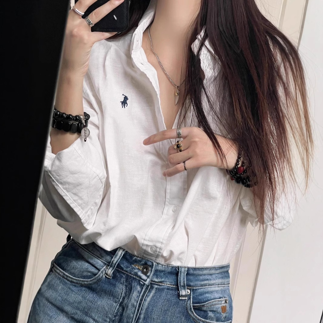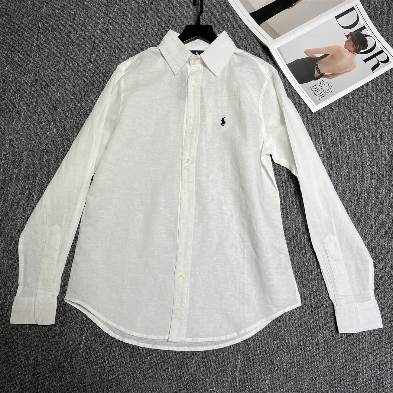 Мужские и женские льняные рубашки с трансграничным сканируемым логотипом RL, вышивкой логотипа пони, хлопчатобумажные и льняные рубашки в стиле «старые деньги».