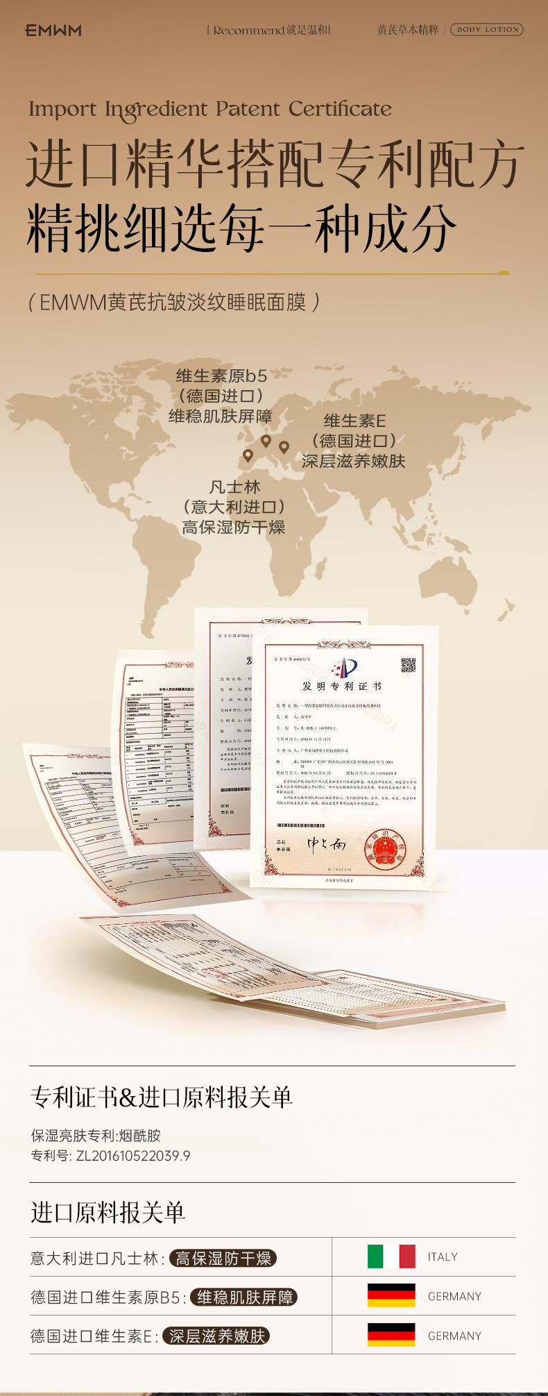 Маска для сна EMWM Astragalus против морщин и для осветления кожи, 300 мл, улучшает состояние тусклой и уставшей кожи, увлажняющая маска