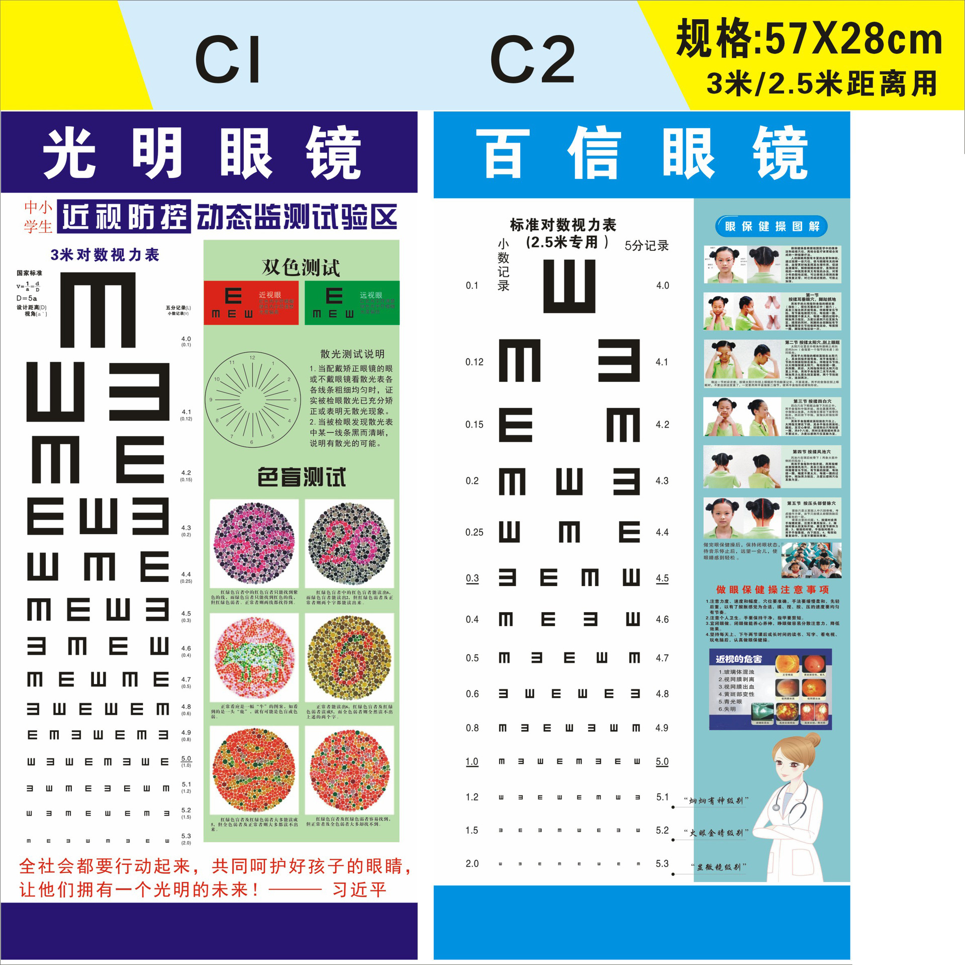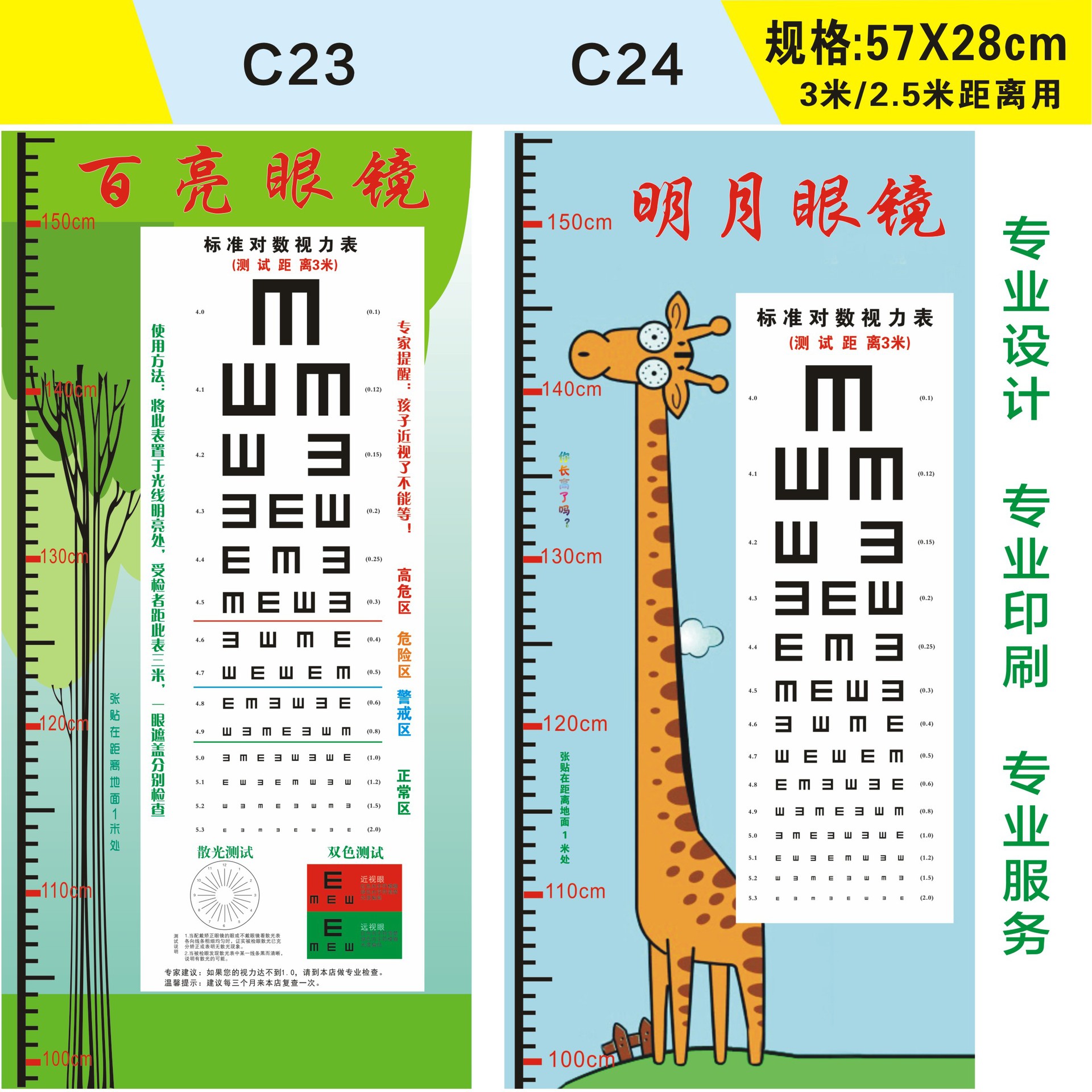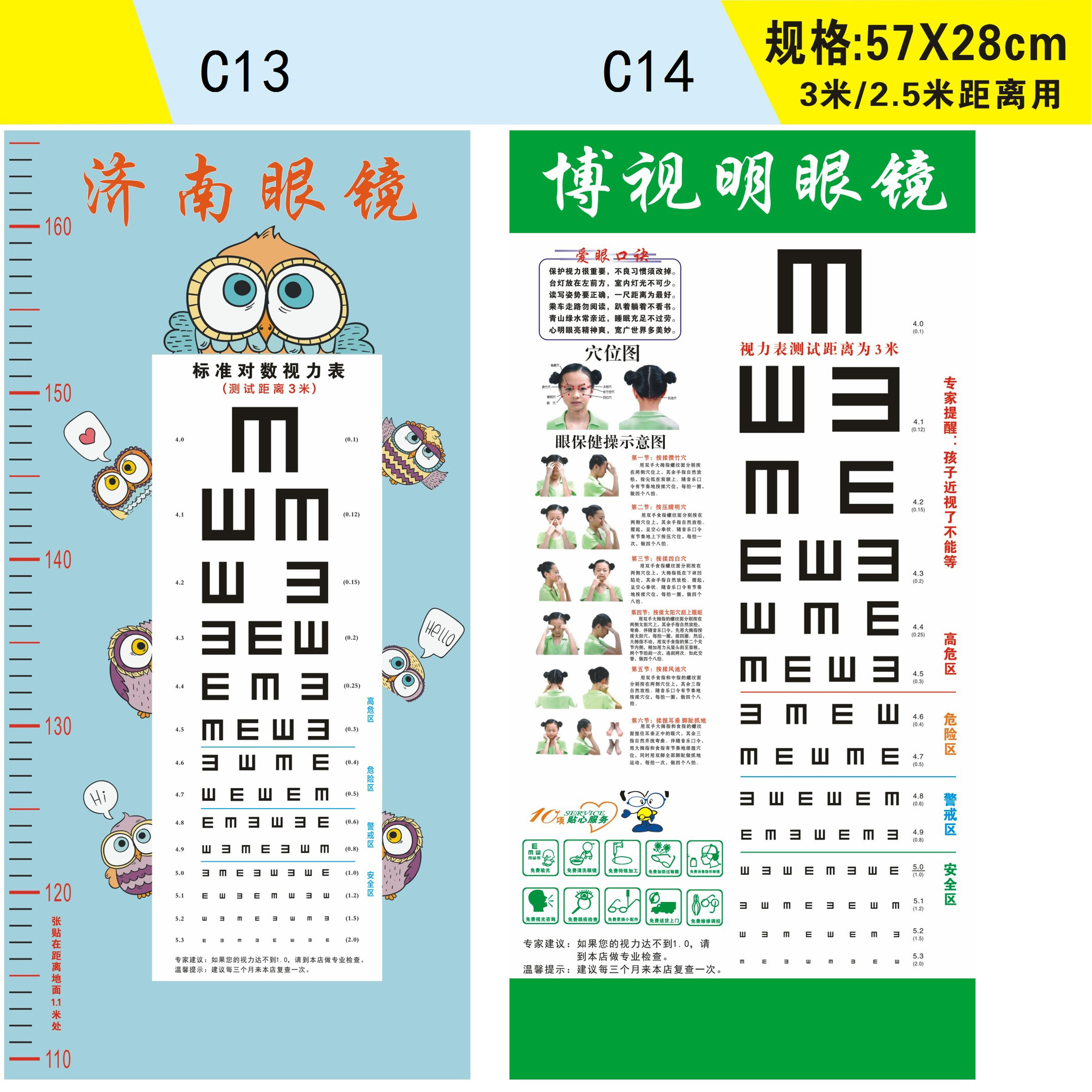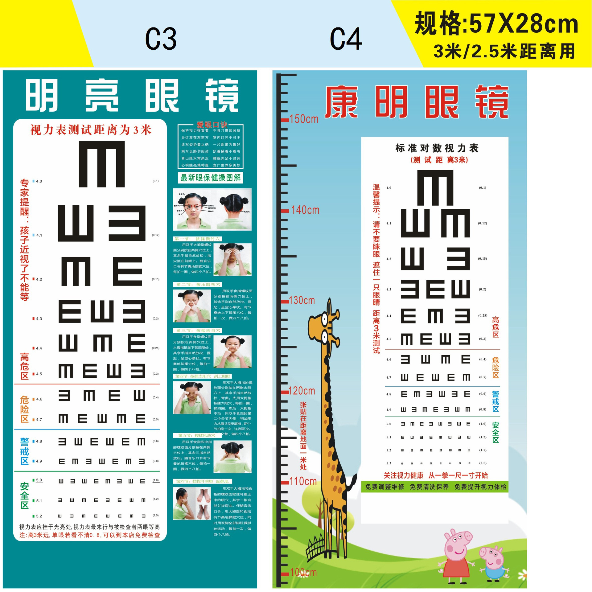 Стандартная логарифмическая таблица для проверки зрения 57X21 с возможностью печати логотипа + названия магазина для домашнего и школьного использования, оптовая продажа товаров для улучшения зрения.