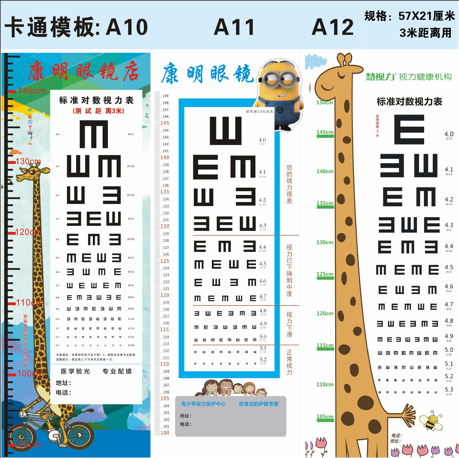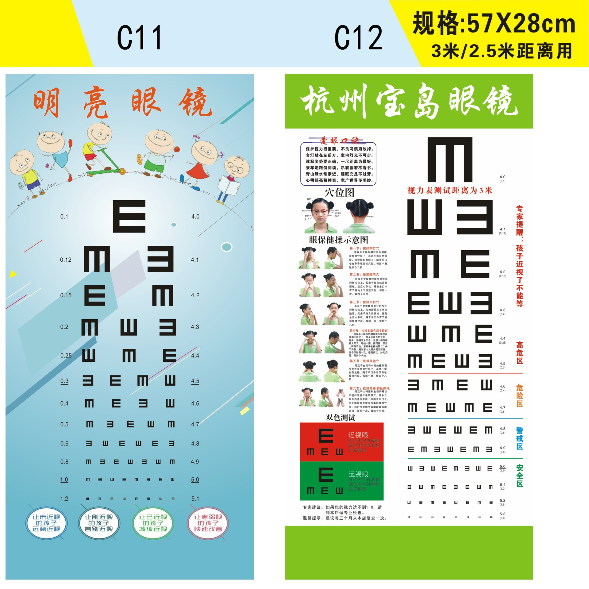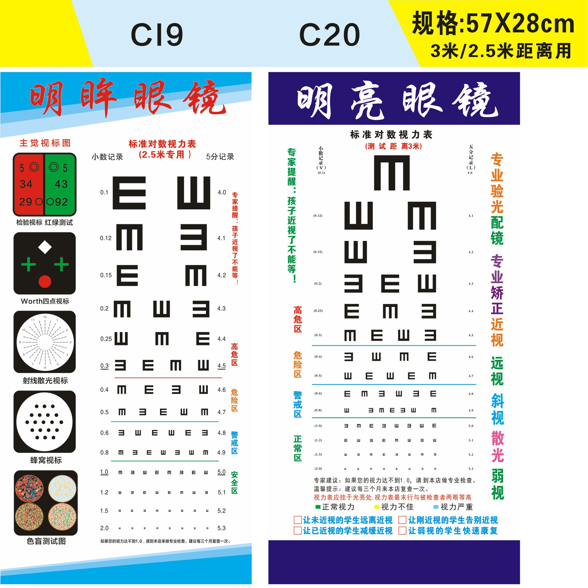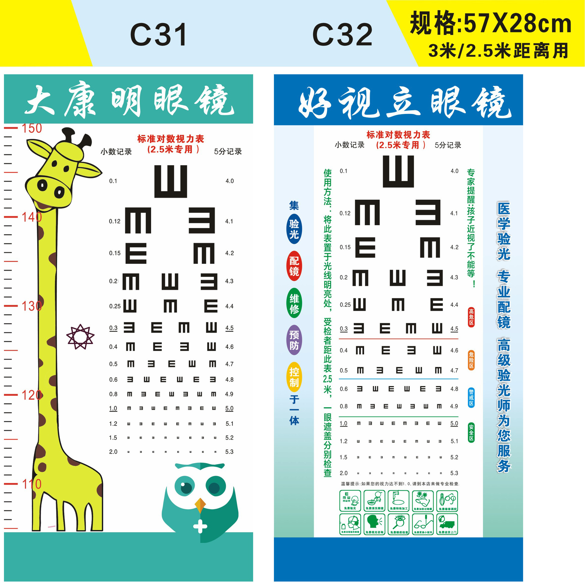 Стандартная логарифмическая таблица для проверки зрения 57X21 с возможностью печати логотипа + названия магазина для домашнего и школьного использования, оптовая продажа товаров для улучшения зрения.