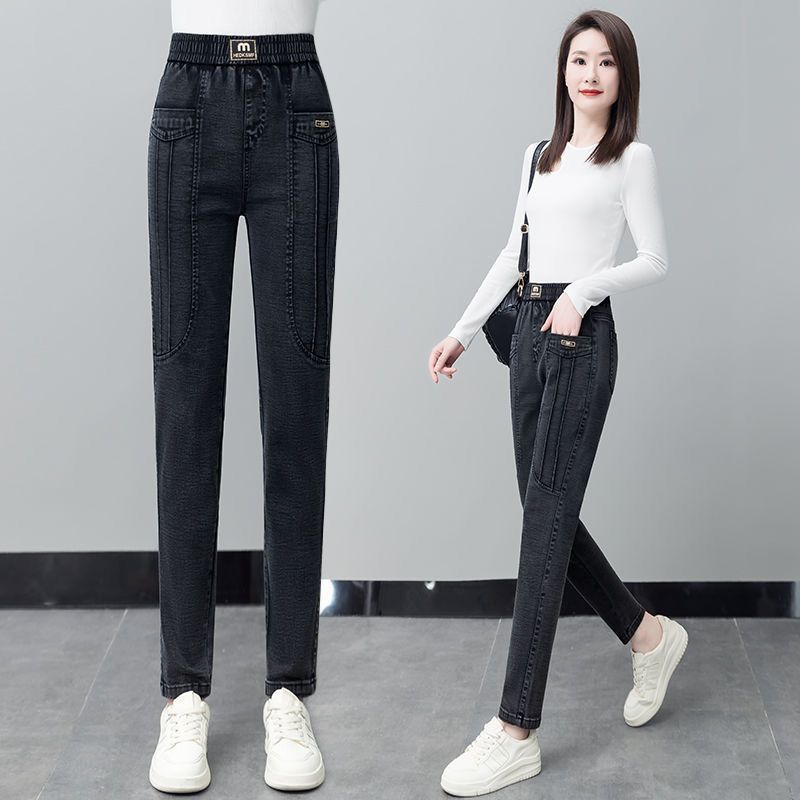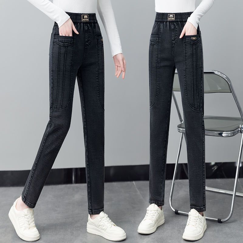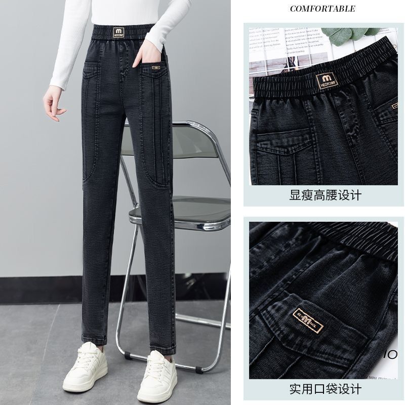 Мягкие джинсовые брюки-шаровары для женщин, на флисовой подкладке, 2025, эластичные, с высокой талией, облегающие, с высокой степенью растяжимости и эффектом похудения.