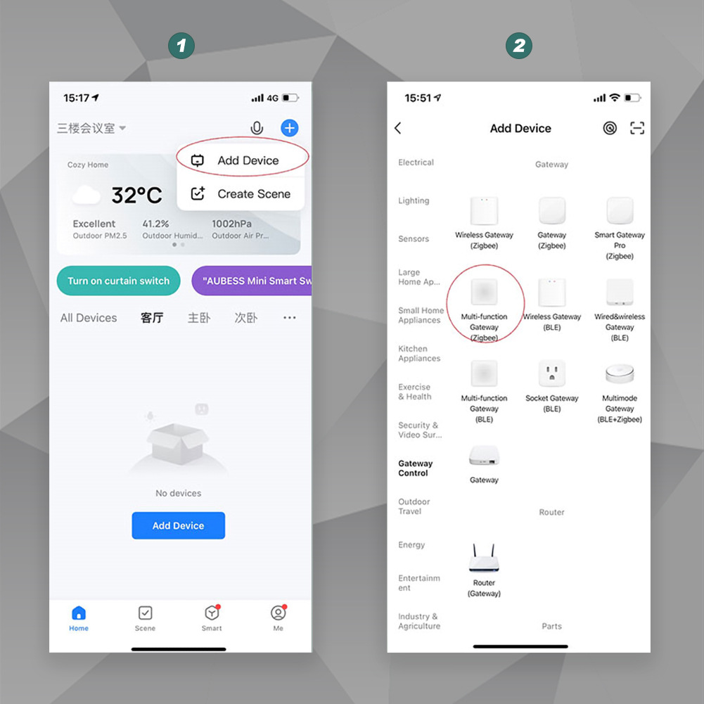 4.智能多功能,操作简单:首选本地执行场景和自动化,可以在无网络情况下执行智能场景和自动化;添加无网络子设备和多个子设备接入网络同时。