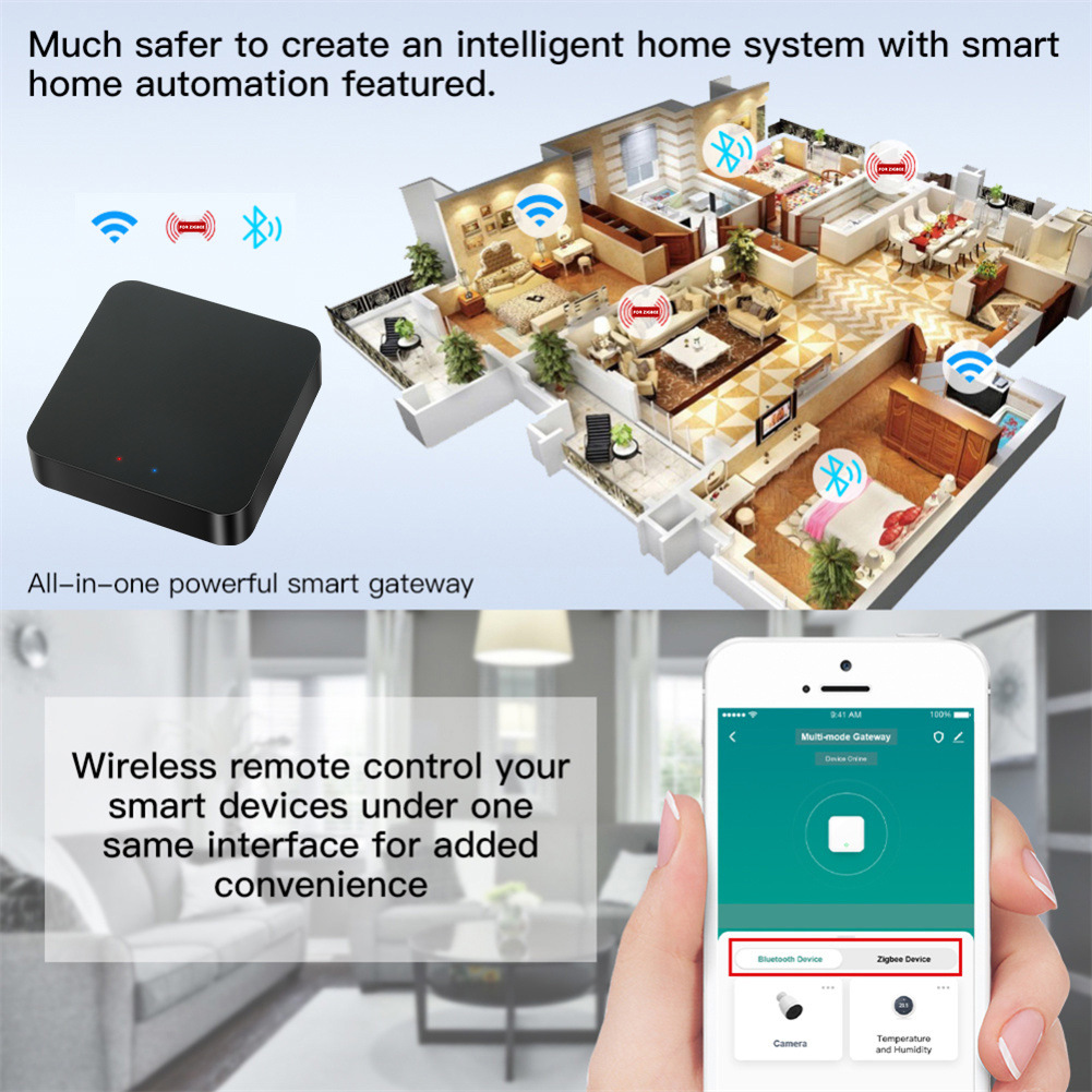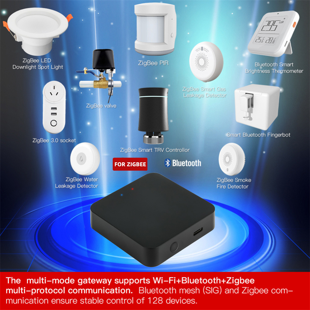 1.子设备控制多模式兼容:控制网关的子设备,支持Smart Life App中连接的蓝牙和ZigBee智能设备的远程控制和群控,作为ZigBee3.0标准协议和蓝牙的多协议通信基于SIG标准协议,性能强劲,确保稳定控制128台设备。
