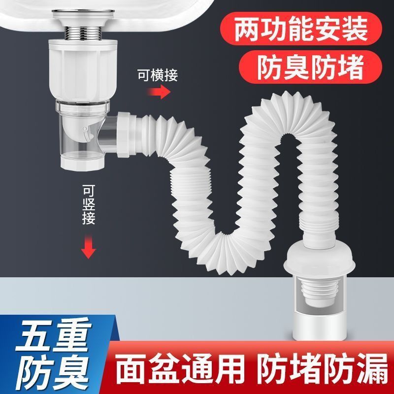 Универсальный комплект горизонтальной настенной сливной трубы для раковины в ванной комнате, защищенный от запаха.