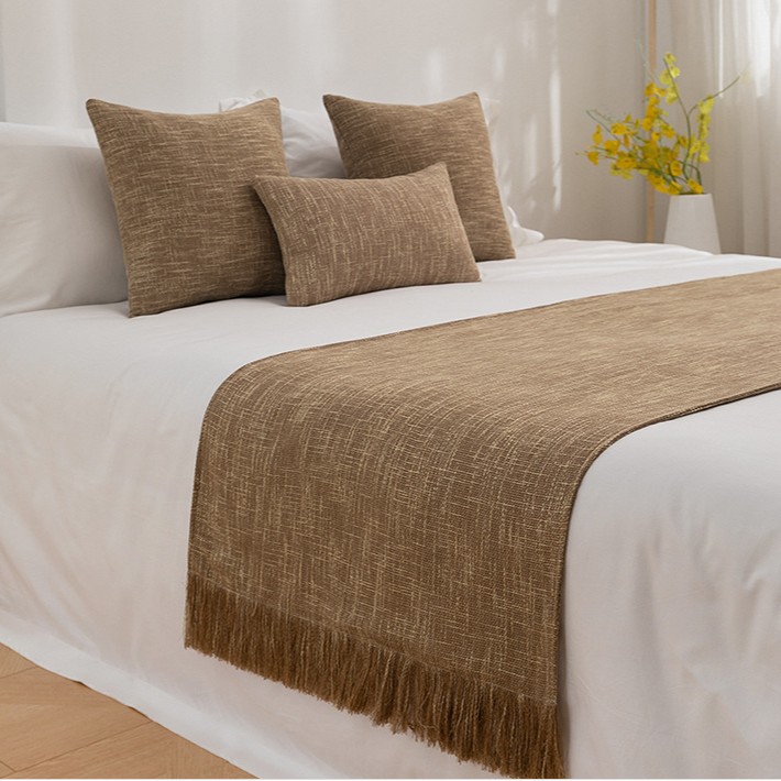 Простая хлопчатобумажная и льняная гостиничная дорожка для кровати в американском стиле кантри, покрывало для кровати, полоска для конца кровати, ткань для матраса в гостинице