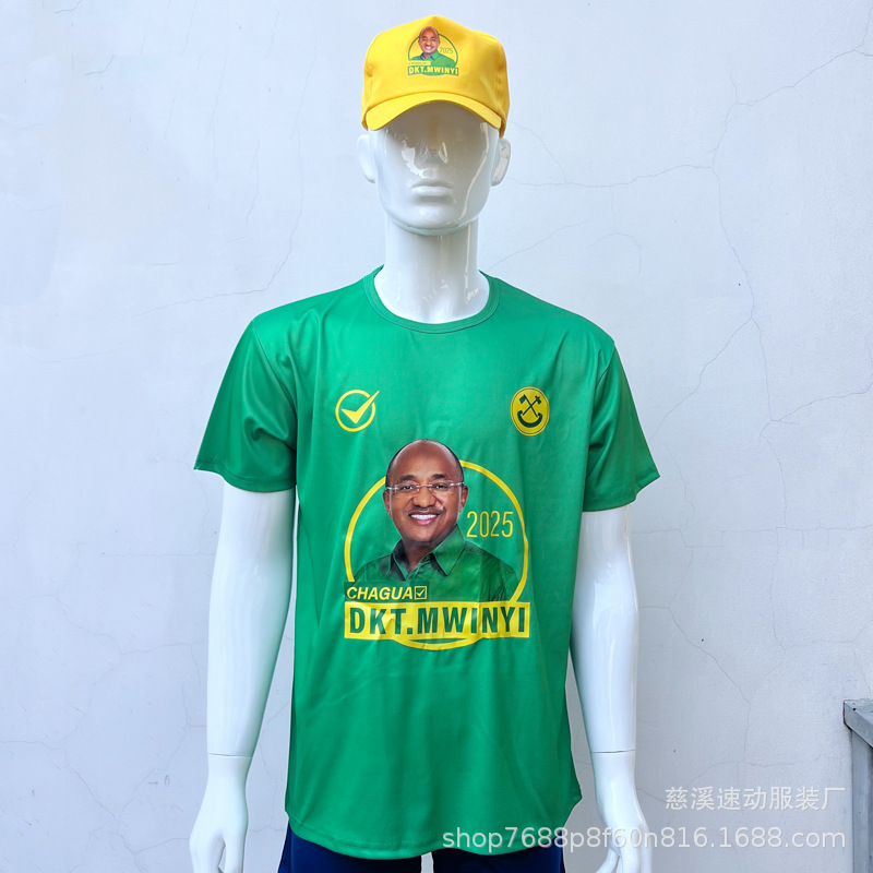 Мощная фабрика Циси поставляет недорогие африканские рубашки для выборов с портретами на голове и термотрансферной печатью для избирательных рубашек Замбии круглый год.