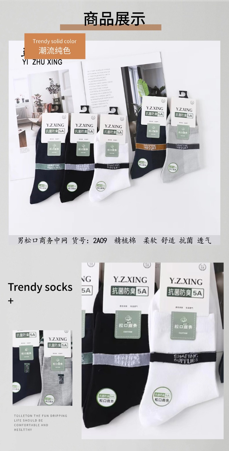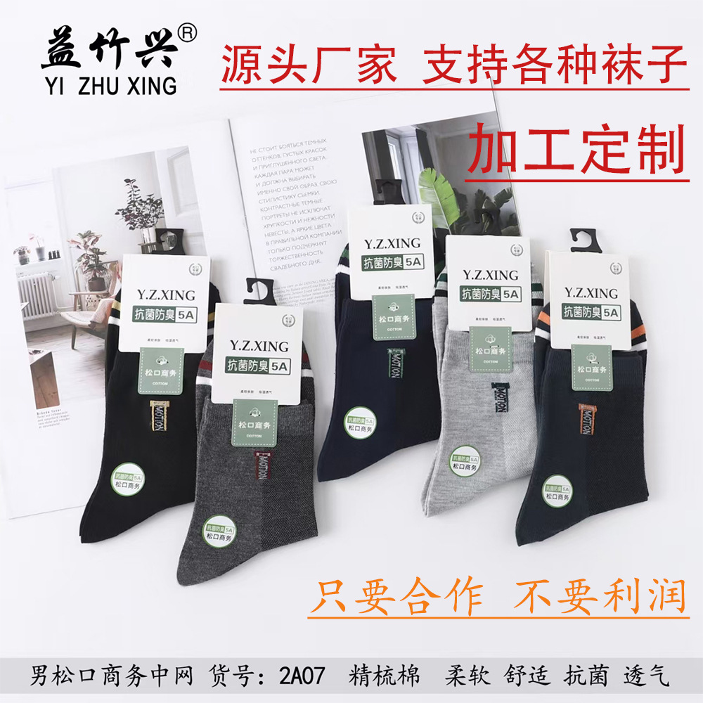 Мужские носки на заказ, деловые носки, антибактериальные и дезодорирующие, хлопковые для весны и лета, модные, мягкие, влагопоглощающие, дышащие, повседневные мужские носки средней длины.